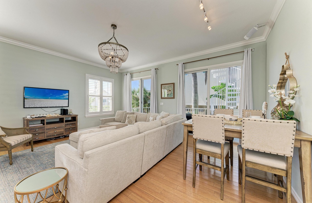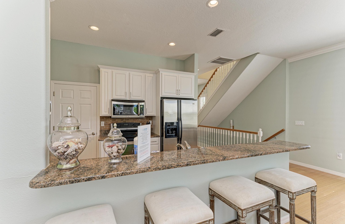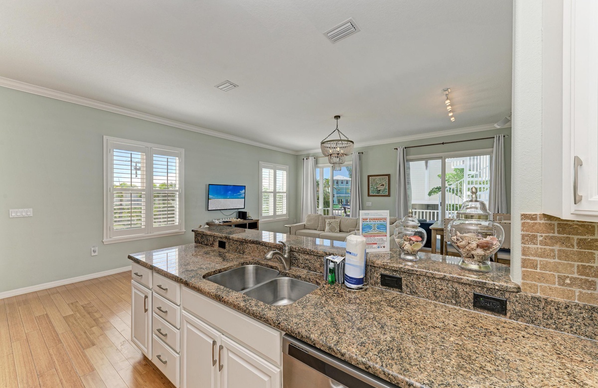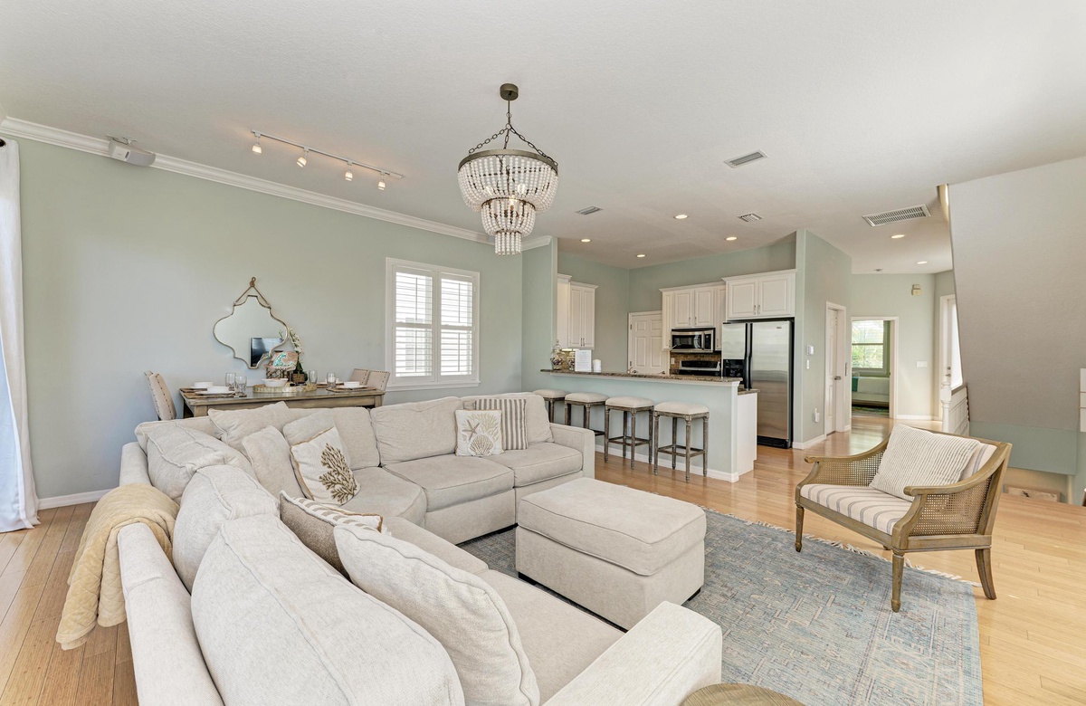 In der Küche finden Sie exklusive Arbeitsplatten sowie Edelstahlgeräte, einem Geschirrspüler und eine Frühstücksbar mit Sitzgelegenheit für vier. Im Esszimmer finden 6 Personen Platz. Das Wohnzimmer bietet bequeme Sitzgelegenheiten und einen Smart-Flachbild-TV. Das Haus ist zusätzlich mit Alexa ausgestattet, d.h. alle Antworten auf eventuelle Fragen sind schnell und einfach verfügbar! Alle drei Schlafzimmer haben ebenfalls Smart-Flachbild-TVs mit dem Streamingdienst HULU.