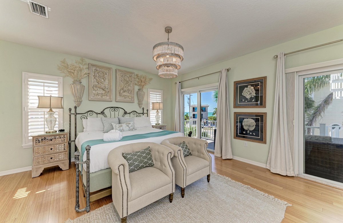 This beautiful home is just across the street from beach access and close to everything you may need on Pine Street. It provided plenty of space for our family of 4 (with room to spare). We enjoyed both the pool and ocean view from the patios.