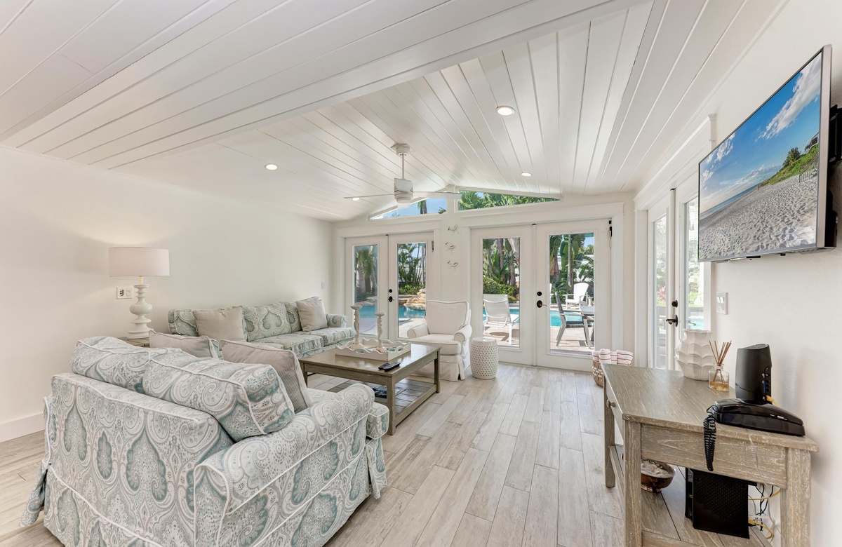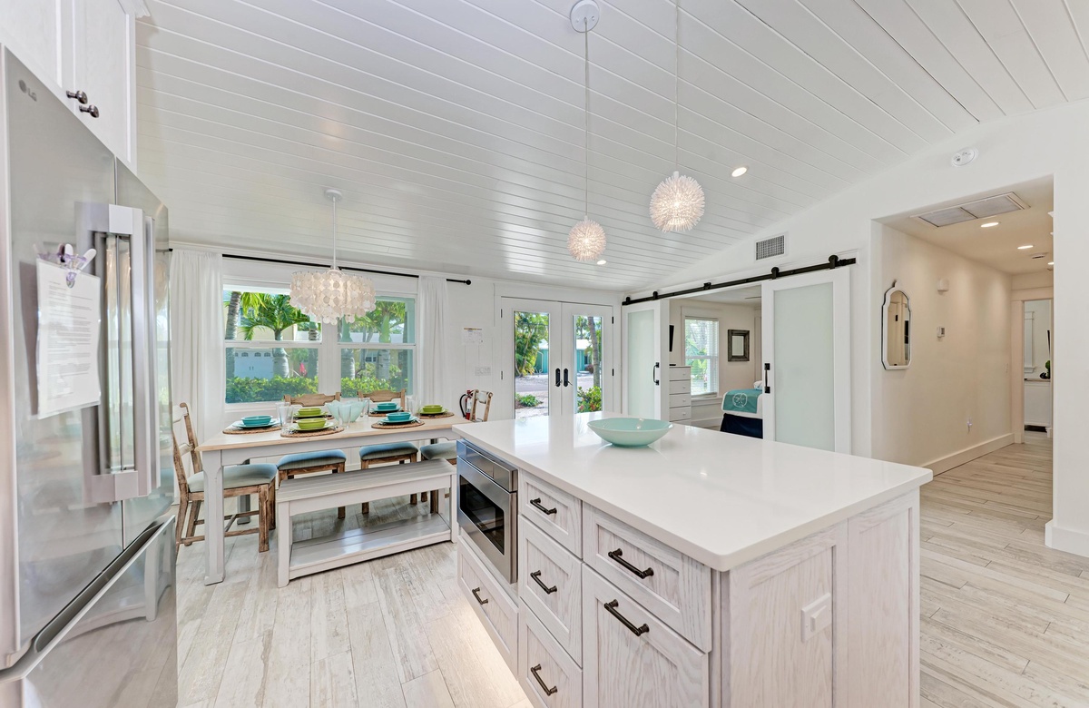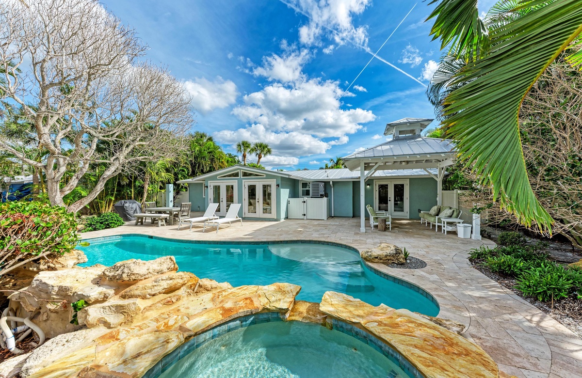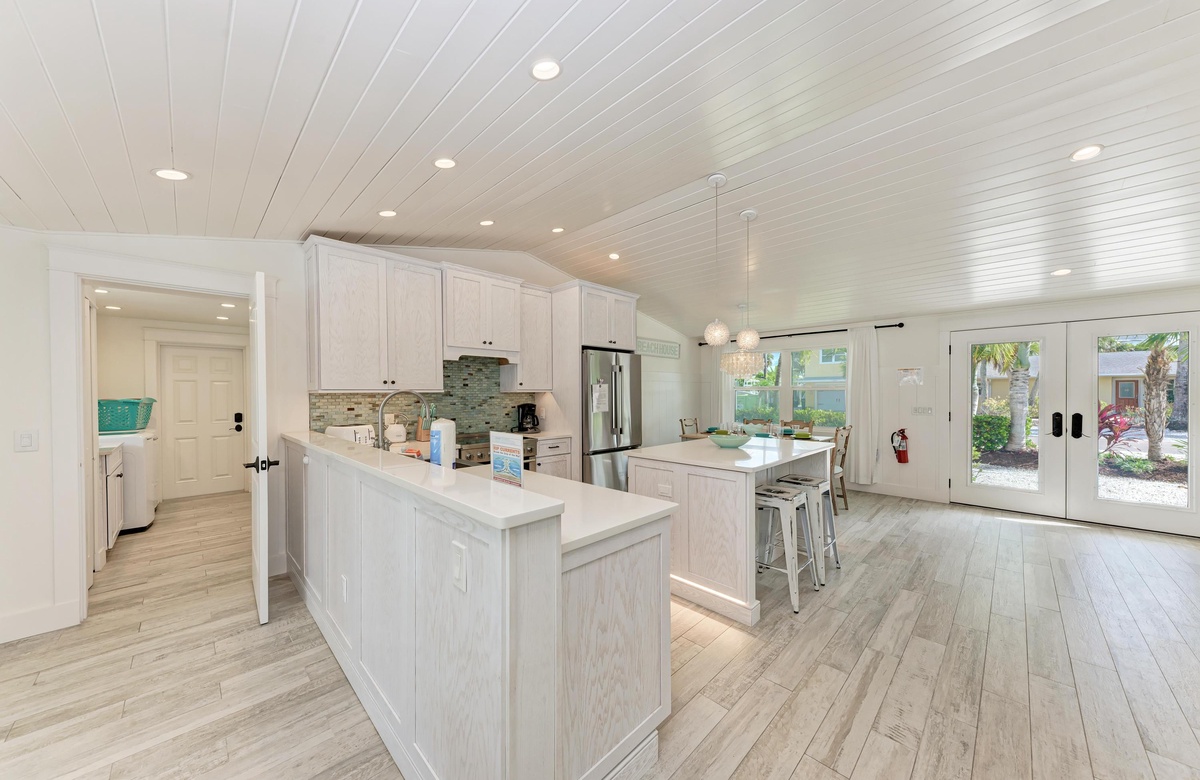 Willkommen im Beach Pearl, einer Villa mit einem Salzwasserpool und Spa im Stil einer Lagune, gebaut mit den höchsten Ansprüchen in der Stadt Anna Maria. Sie haben es gefunden! Ihr eines Stück vom Anna Maria Island Paradies in einer ruhigen Sackgasse. Ziehen Sie sich durch die Eingangstür in das offene und helle Wohnzimmer zurück. Ihre Sinne werden schnell überwältigt sein vom Anblick des maßgefertigten Pools mit Spa sowie dem Geräusch des Pool-Wasserfalls durch die offenen Terrassentüren entlang der Rückseite des Wohnbereichs. Lüster, aktuelle sog. Barn Doors (Scheunentor), angehobene, schräge Decken, Marmor- und Quarz-Arbeitsplatten, qualitative Einrichtung und Geräte ergänzen das stylische und luxuriöse Erlebnis.