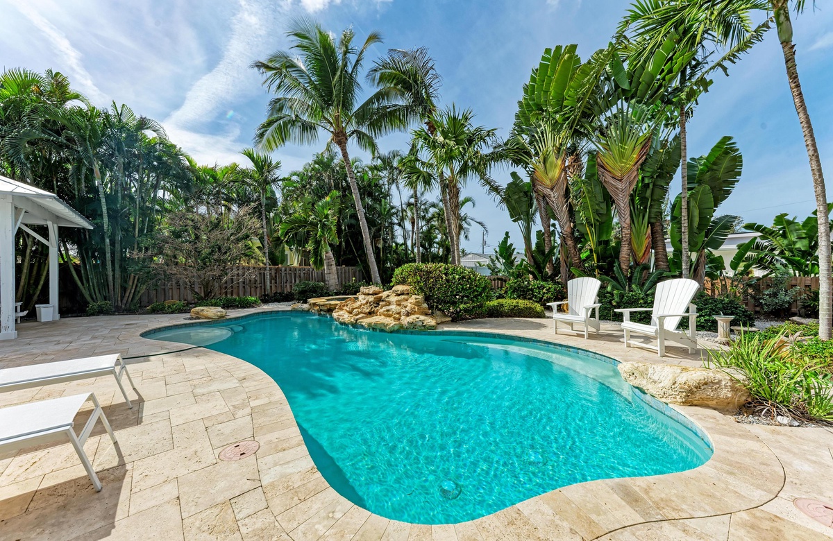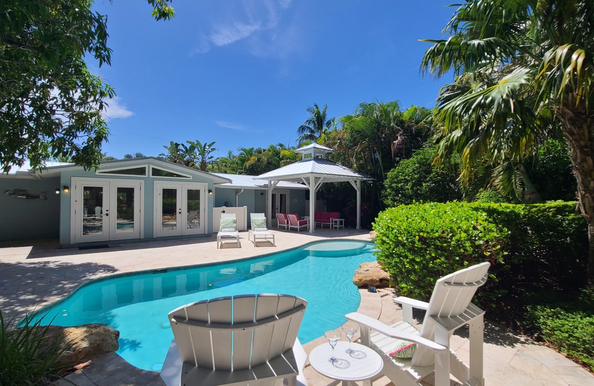 The house was absolutely wonderful. Clean, very new seeming, and very comfortable. The backyard oasis was dreamy— landscaping was beautiful and the pool/hot tub were just perfect. Lots of sun exposure during prime hours! The location was also great, a block from a beautiful beach and a 5-10 min walk to the main drag. Would absolutely stay again!
