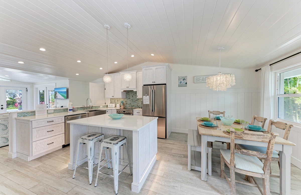 We loved this house, it looks great, high quality throughout and well equipped. Great location 2 blocks to beach and short drive to shops. Short walk to Ginny and Jane’s or spa and yoga next door to it. Walk to Pine ave was doable too even in summer heat.