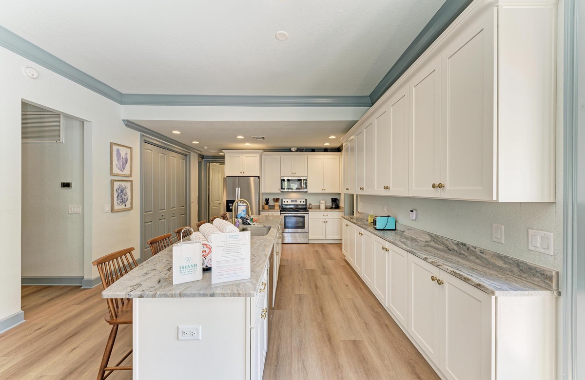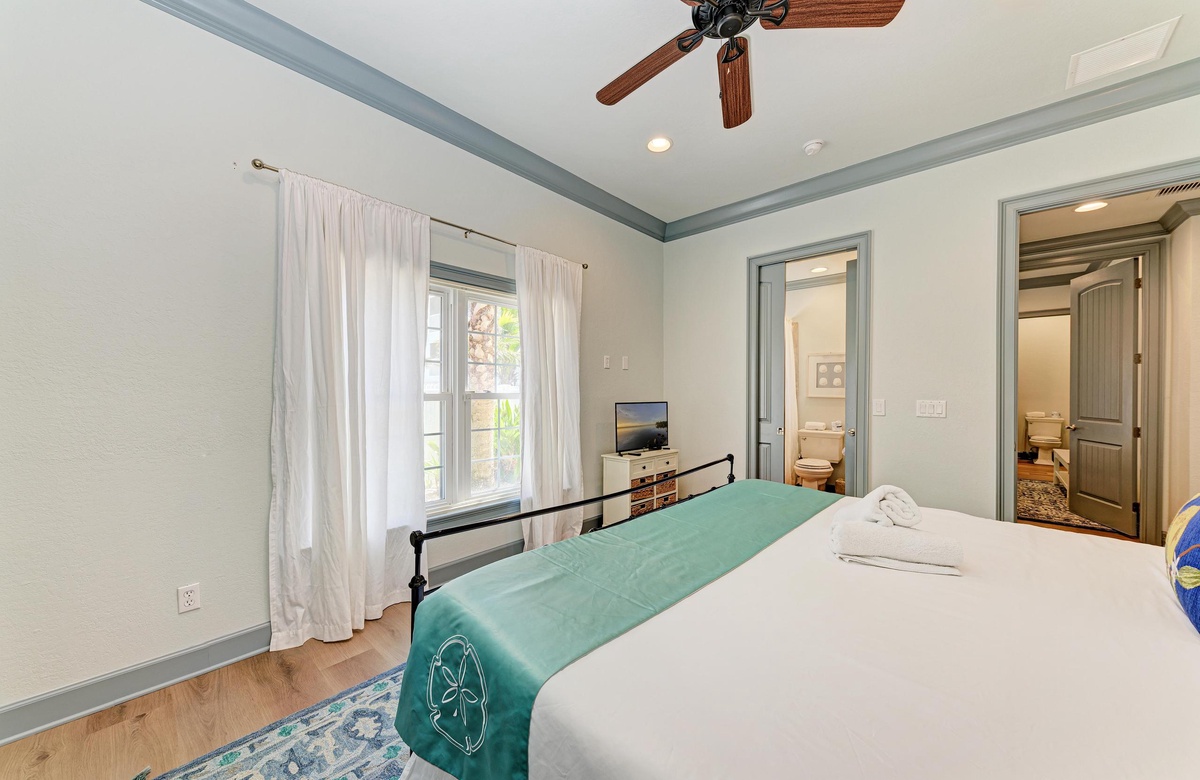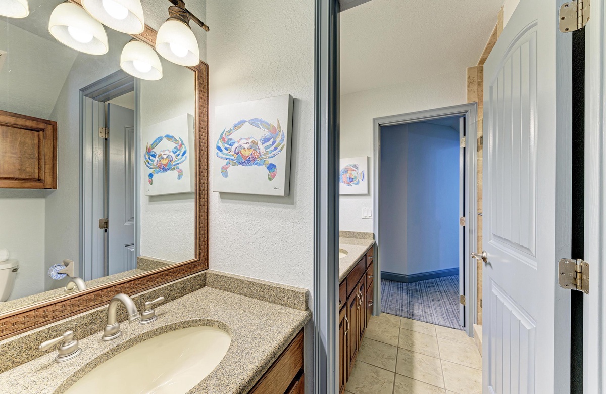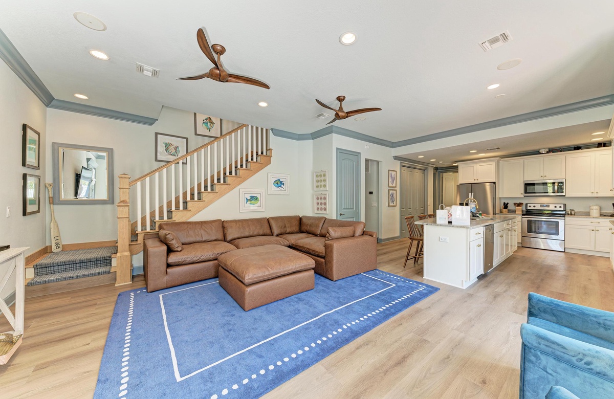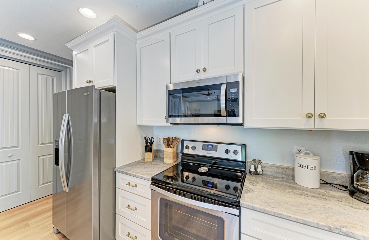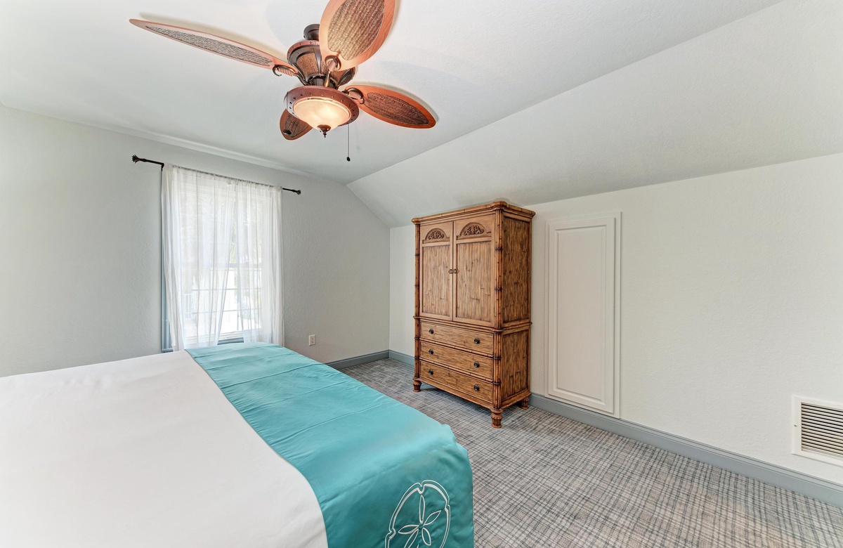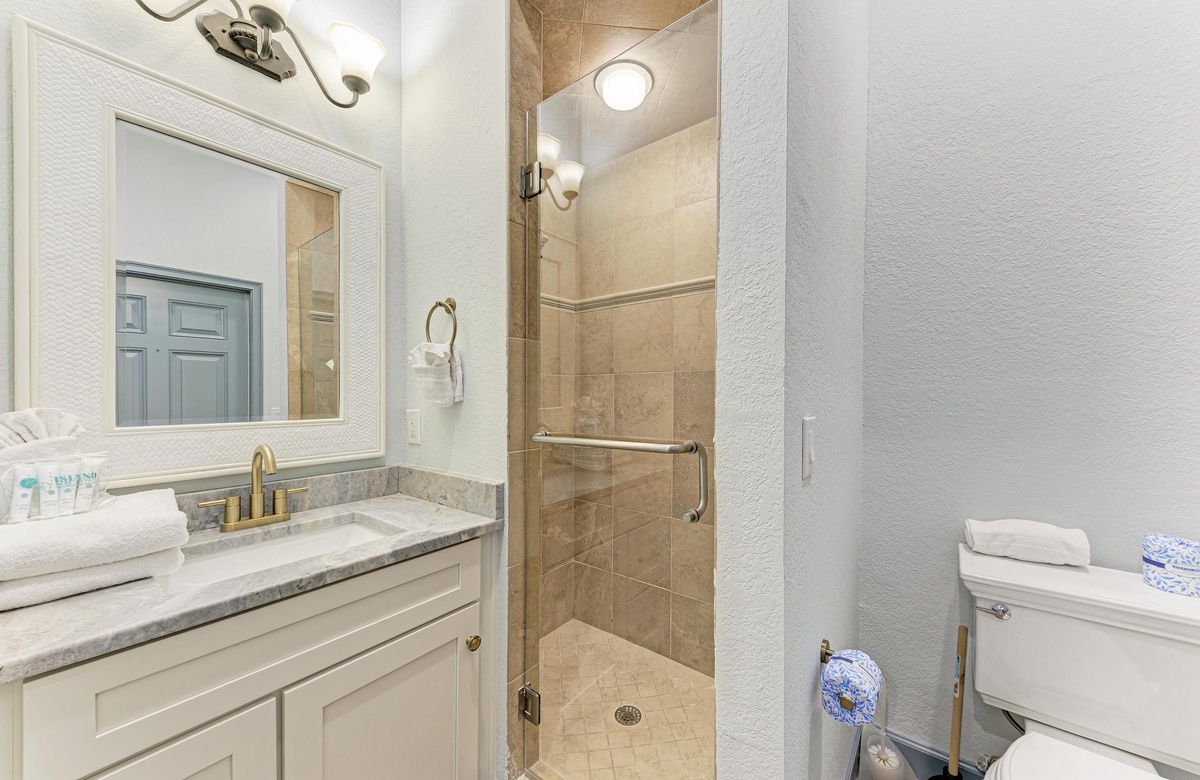 Im unteren Bereich dieses Hauses befindet sich das übergroße Hauptschlafzimmer und Bad mit einem großen begehbaren Kleiderschrank, sowie zwei weitere Schlafzimmer mit jeweils eigenem Kingsize-Bett und 2 Bäder. Aus dem Hauptschlafzimmer geht es durch französische Türen zur Veranda. Die Waschmaschine und der Trockner befinden sich ebenfalls im Erdgeschoss neben der Küche, so dass das Wäschewaschen ein Kinderspiel ist! Die Küche bietet den Gästen alle Annehmlichkeiten, die sie brauchen, um sich zu Hause zu führen, einschließlich Edelstahlgeräten und Granit-Arbeitsplatte.