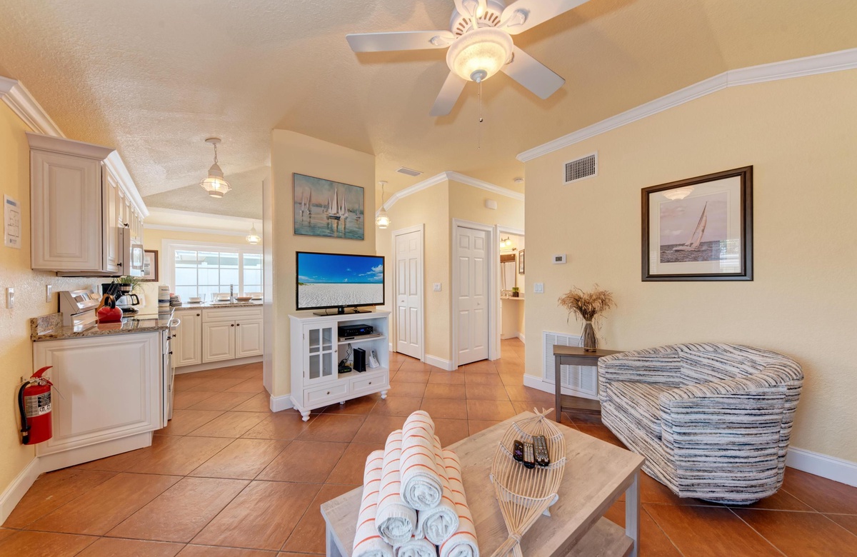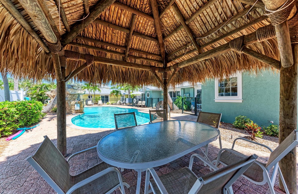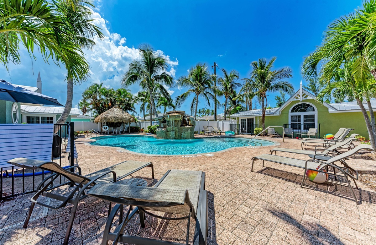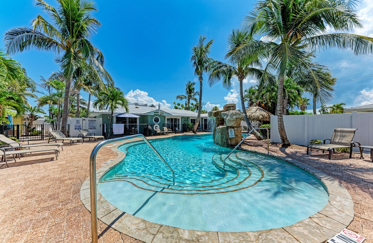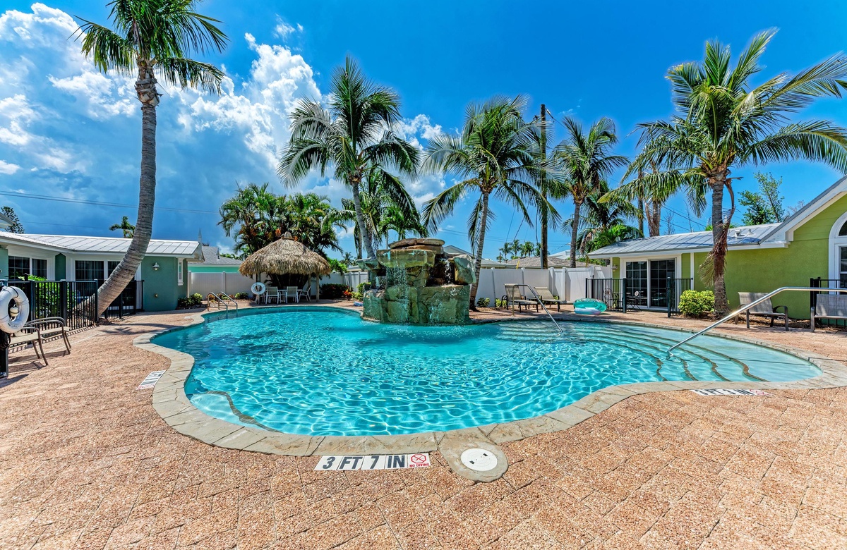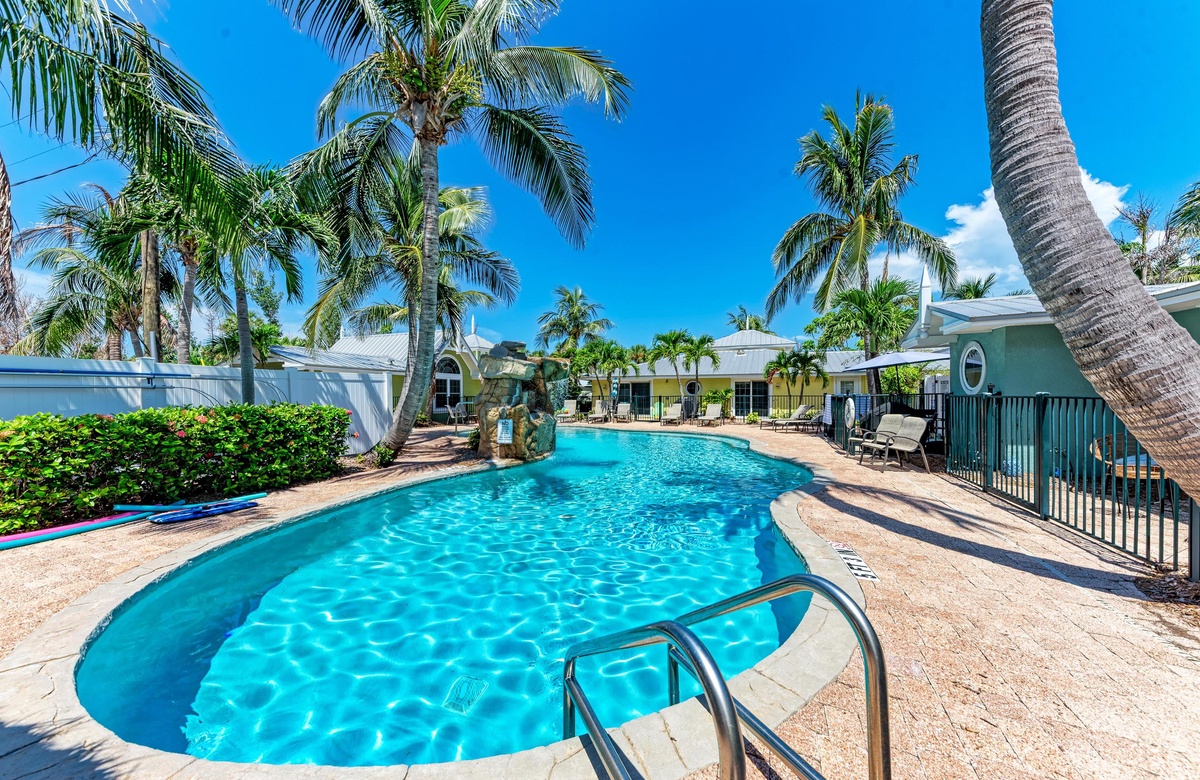 BLUE LAGOON - Zwei Schlafzimmer, zwei Bäder mit einem riesigen tropischen Pool und Wasserfall direkt bei Ihrem Hintereingang im Garten. Die hübsche modernisierte Küche bietet Granit-Arbeitsplatte, Edelstahl-Geräte und reichlich Platz für die Zubereitung von Mahlzeiten oder einfach nur um gemeinsam einen Drink zu genießen. Es gibt WLAN, einen Gemeinschafts-Grill und so viel mehr, dass Sie in Ihrem Urlaub so richtig genießen können.
