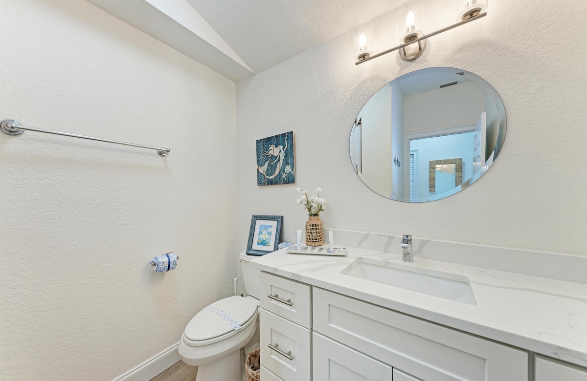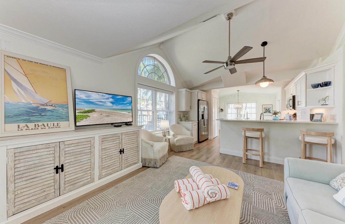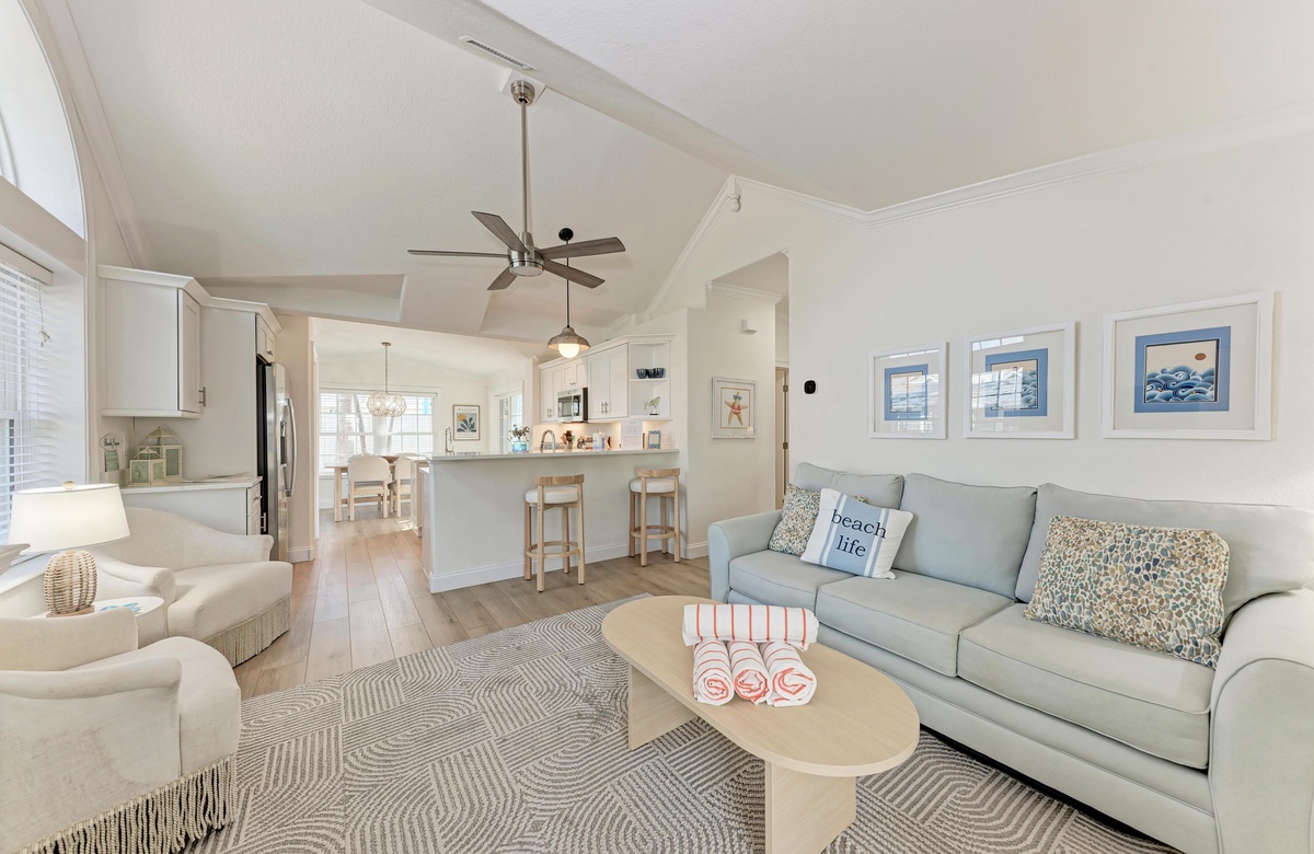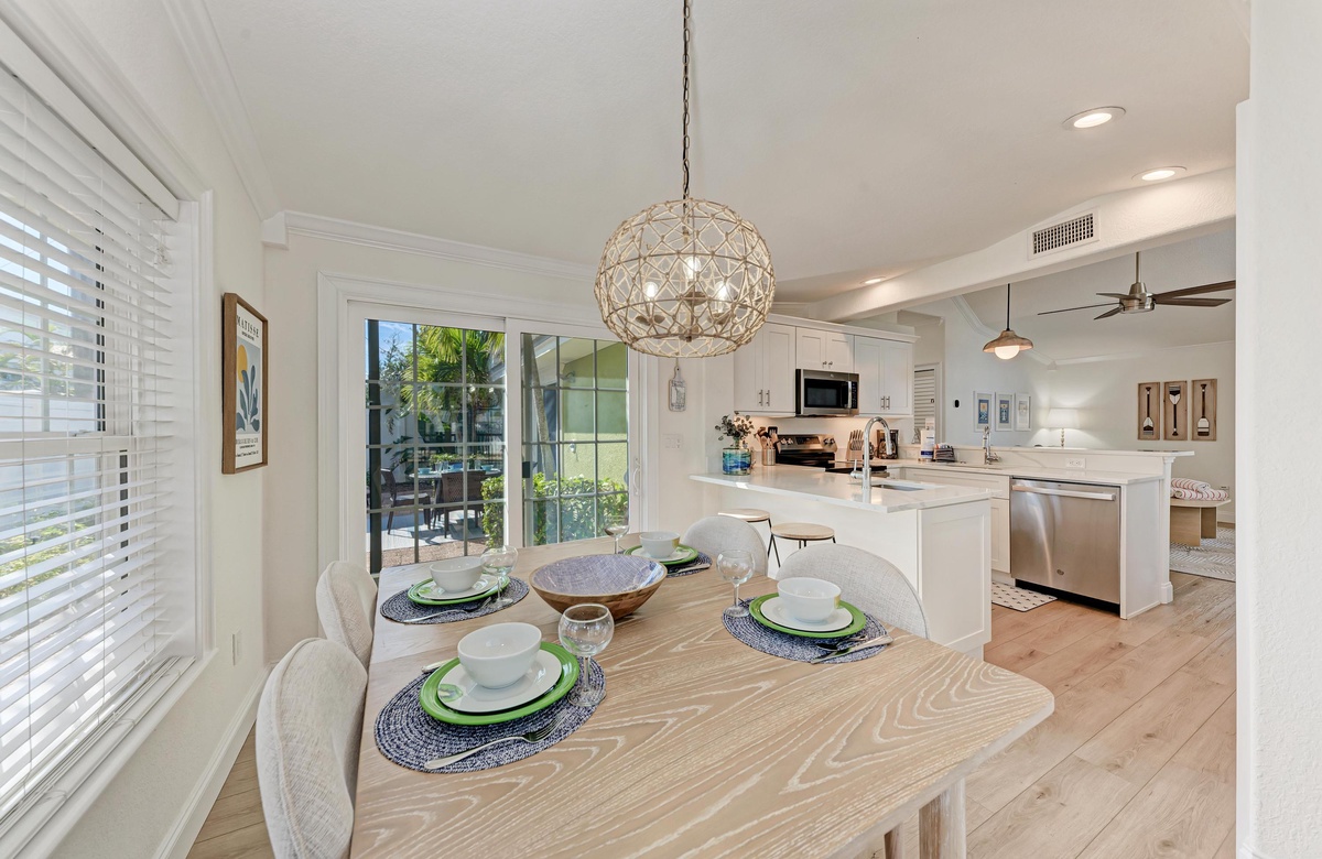 Die relativ modernisierte Küche bietet Granit-Arbeitsplatte, weiße Geräte und reichlich Platz für die Zubereitung von Mahlzeiten oder einfach nur um gemeinsam einen Drink zu genießen. Es gibt ausreichende Sitzgelegenheiten für Ihre gesamte Familie.