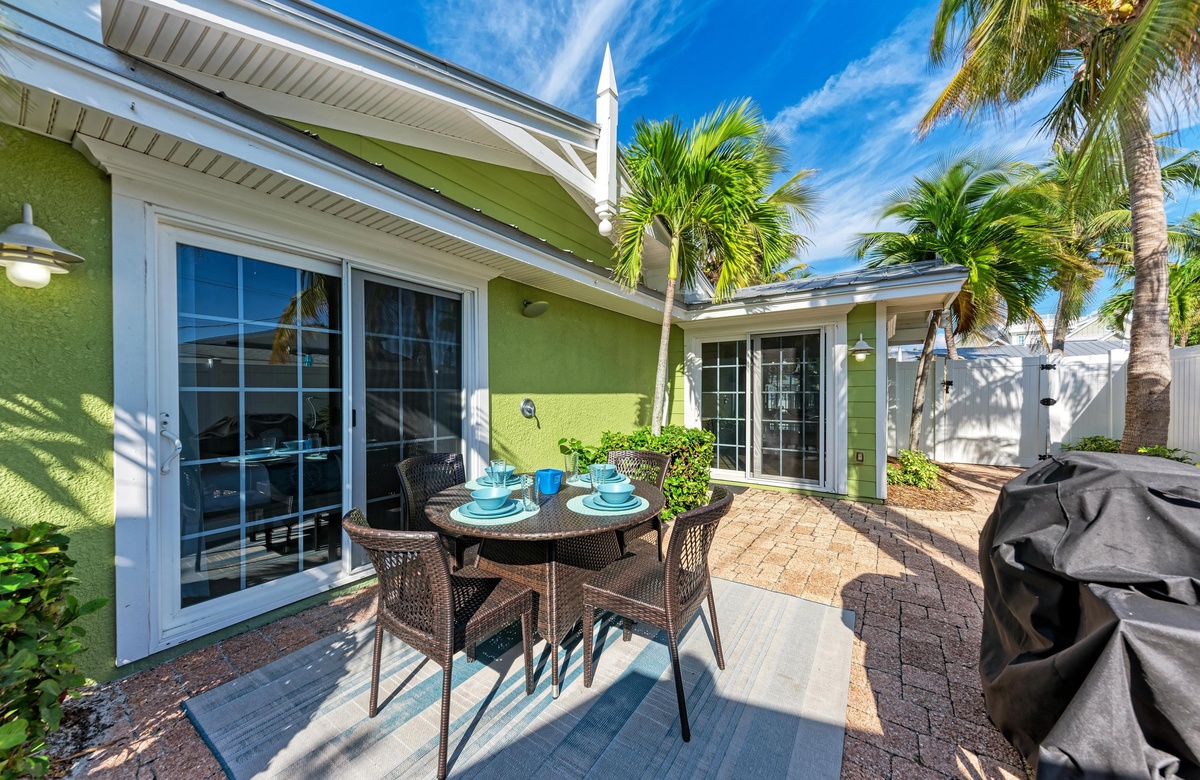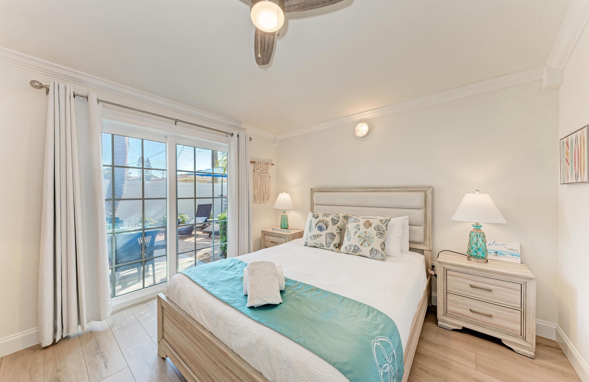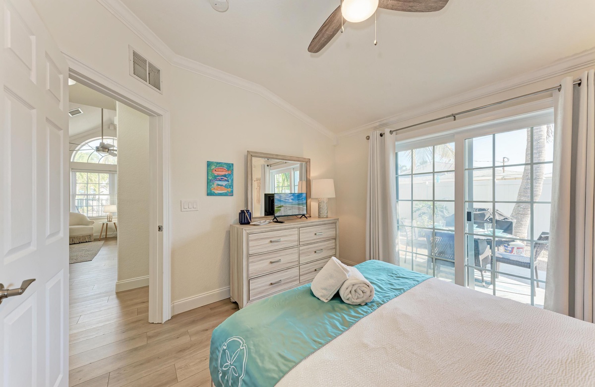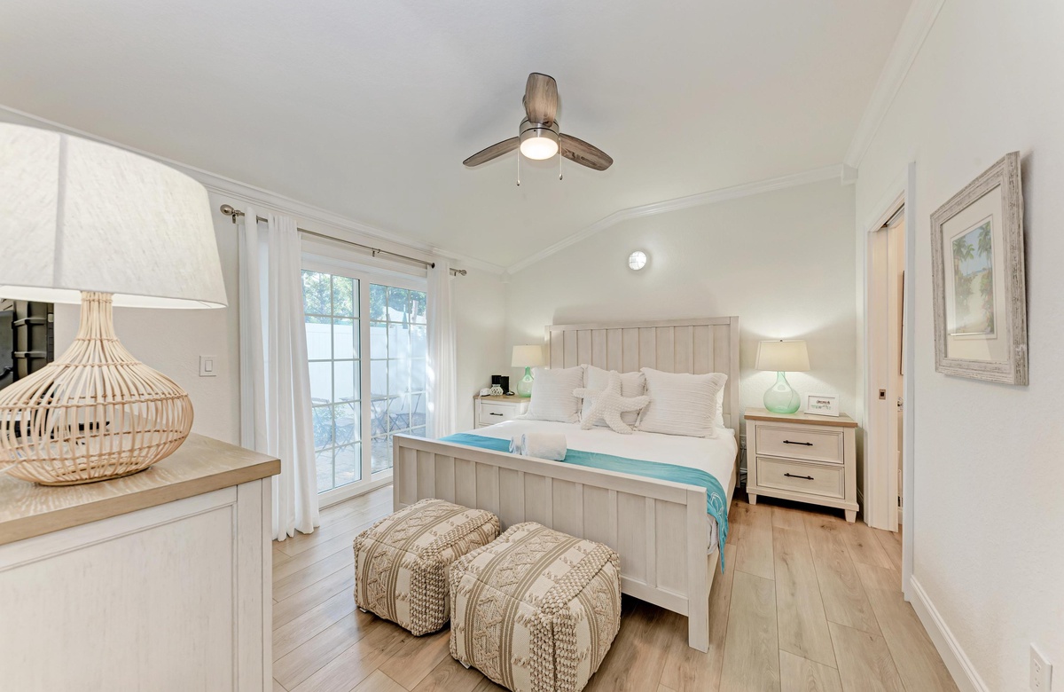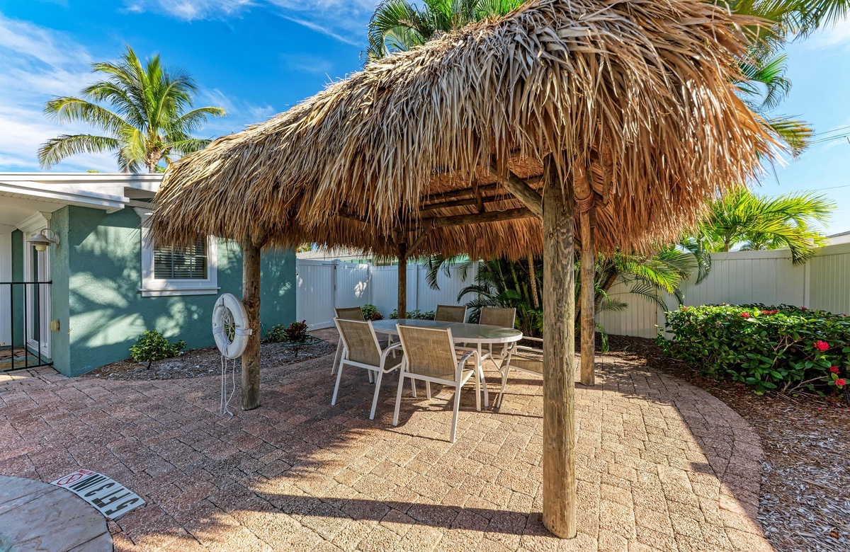 Zwei Schlafzimmer, zwei Bäder mit einem riesigen tropischen Pool und Wasserfall direkt bei Ihrem Hintereingang im Garten. NUR das Blue Lagoon Cottage hat ein separates Esszimmer sowie eine private, nach hinten gelegene Terrasse mit Esszimmergarnitur.