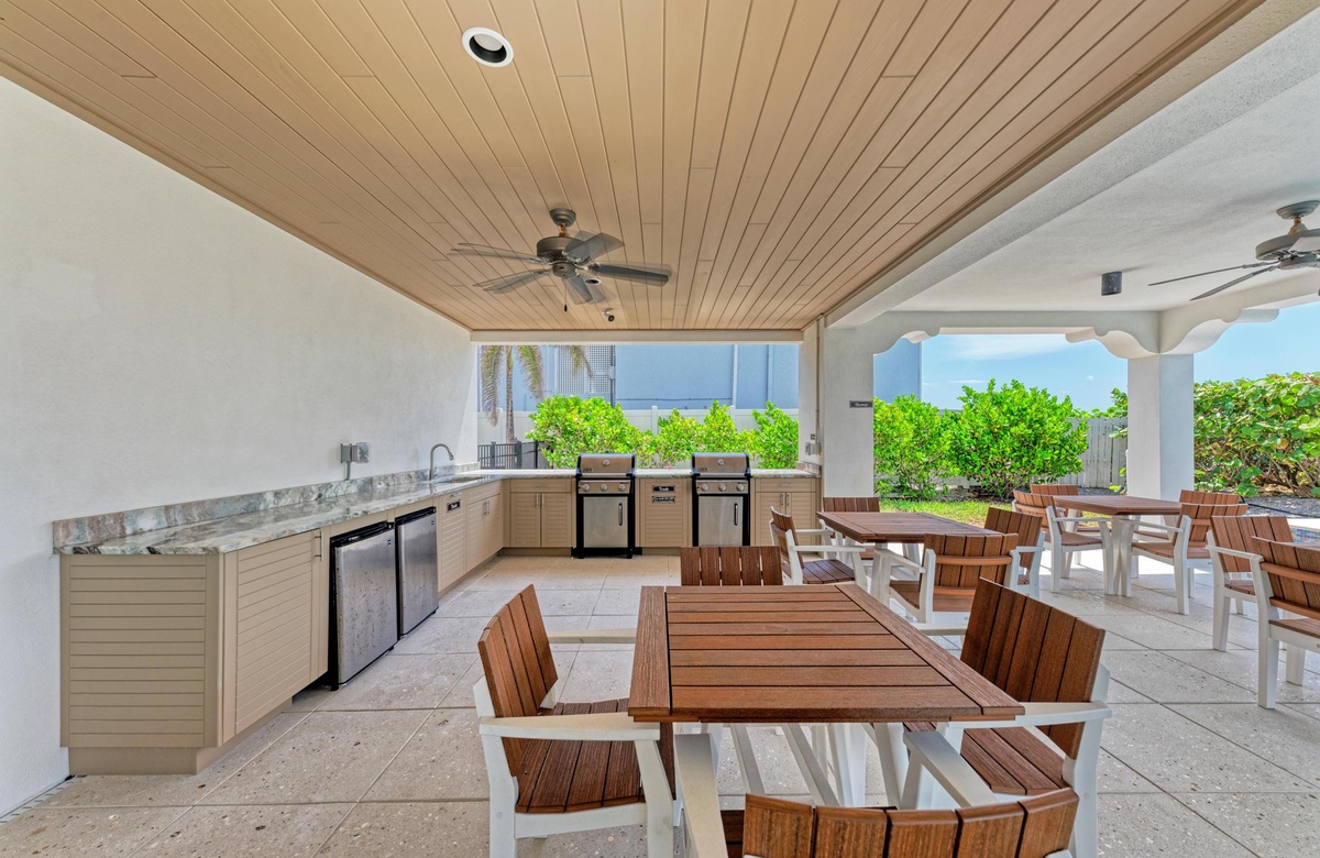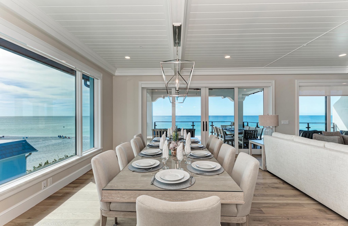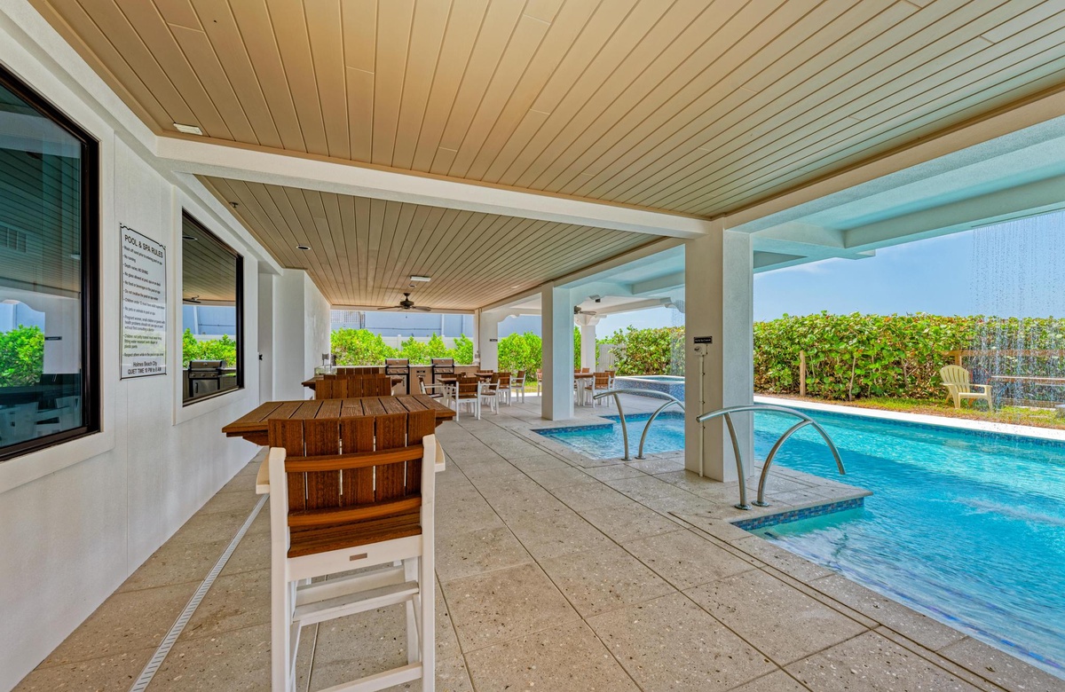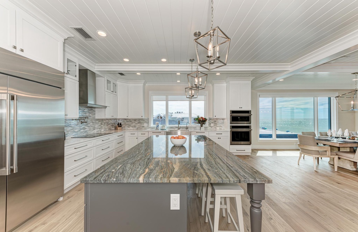 Die Küche bietet Edelstahlgeräte, inklusive Geschirrspülmaschine, Induktionsherd, Weinkühlschrank und einen gigantischen Esstisch für 10 Personen. Zusätzlich gibt es eine Frühstücksbar für Vier, um nur mal schnell eine Kleinigkeit zu sich zu nehmen. Der voll möblierte Außenbereich am Balkon lädt ebenso für ein Essen unter freiem Himmel ein. Vom Balkon aus sehen Sie den beheizbaren Gemeinschaftspool und Spa. Hier gibt es auch viele Aufenthaltsmöglichkeiten, um sich zu erholen. Große Fenster lassen das natürliche Licht herein, damit sich schnell das Florida-Gefühl einstellt.