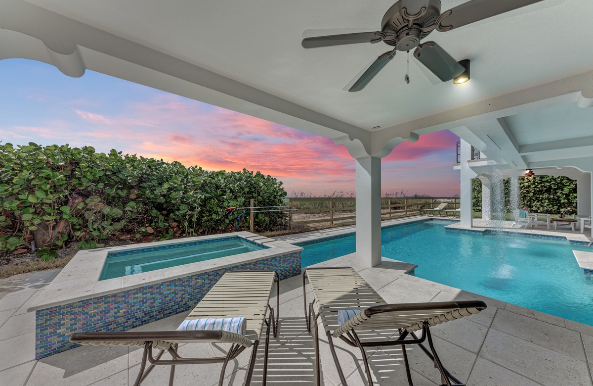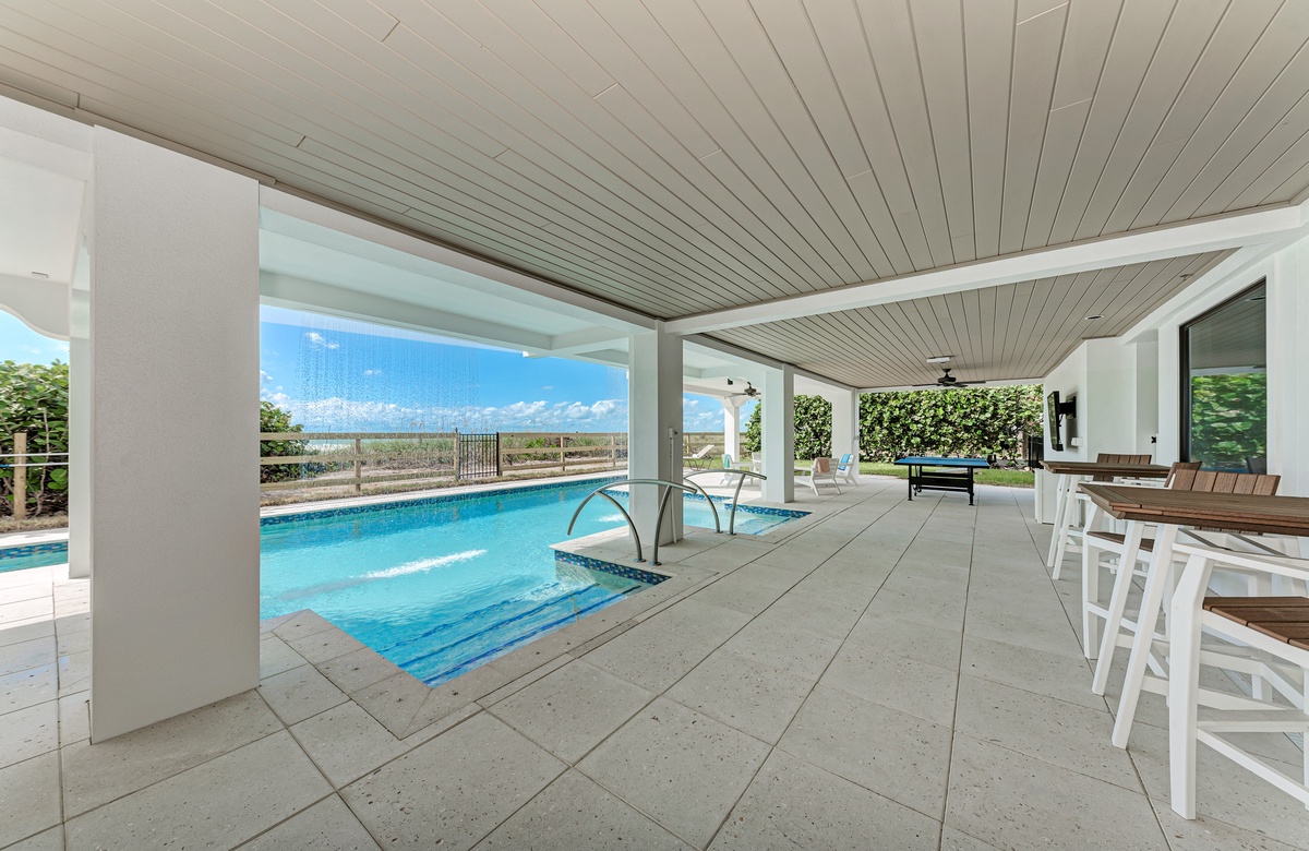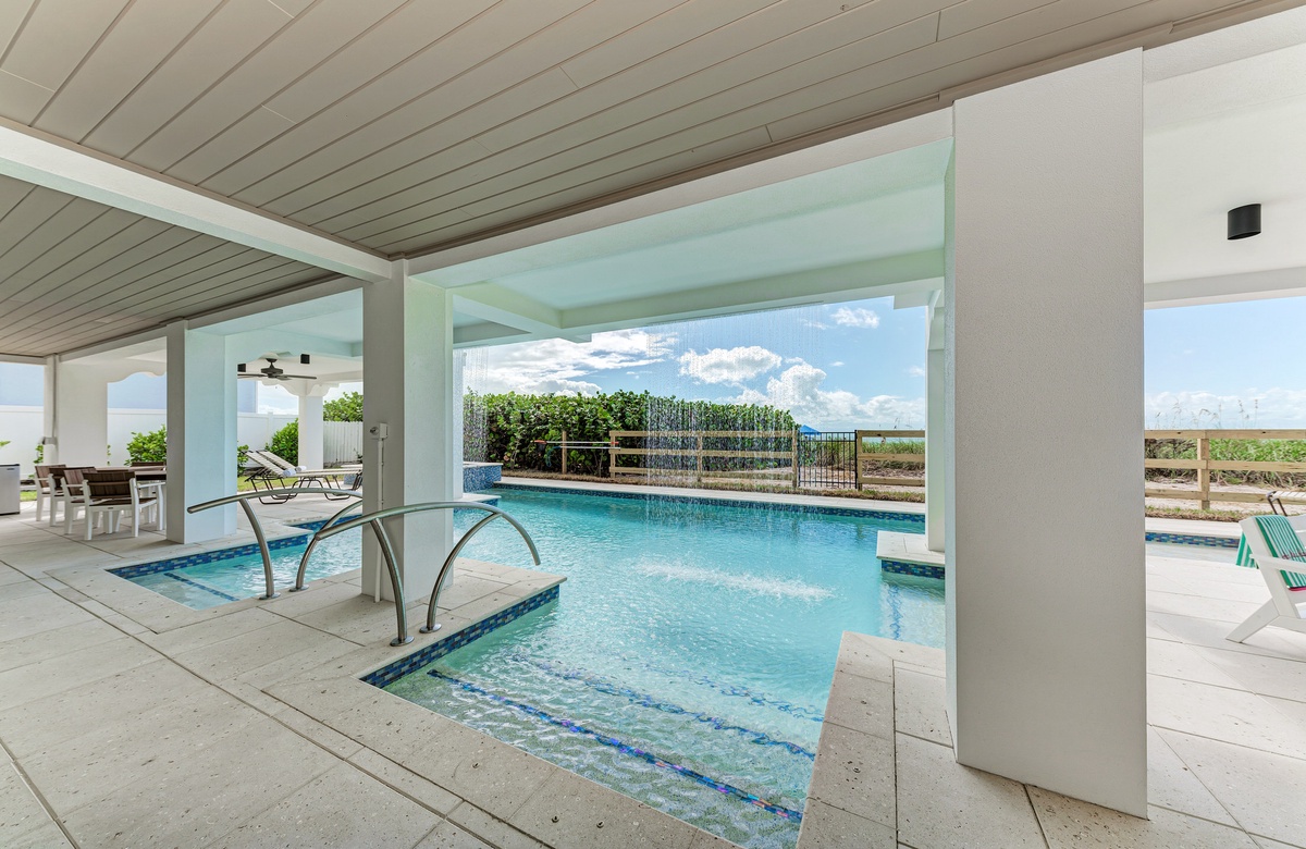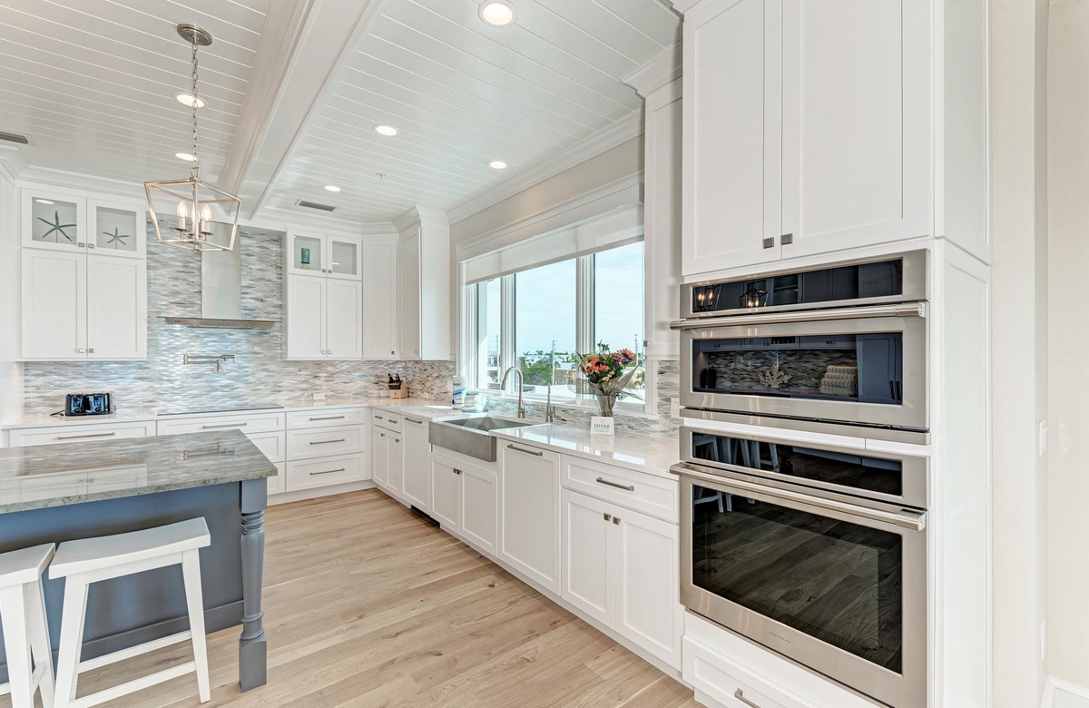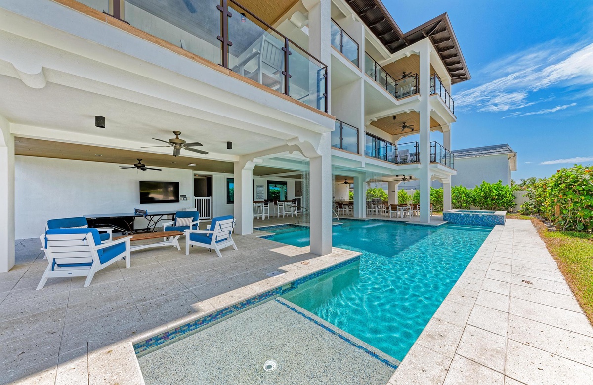 Die Küche bietet Edelstahlgeräte, inklusive Geschirrspülmaschine, Induktionsherd, Weinkühlschrank und einen gigantischen Esstisch für 10 Personen. Zusätzlich gibt es eine Frühstücksbar für Vier, um nur mal schnell eine Kleinigkeit zu sich zu nehmen. Der voll möblierte Außenbereich am Balkon lädt ebenso für ein Essen unter freiem Himmel ein. Vom Balkon aus sehen Sie den beheizbaren Gemeinschaftspool und Spa. Hier gibt es auch viele Aufenthaltsmöglichkeiten, um sich zu erholen. Große Fenster lassen das natürliche Licht herein, damit sich schnell das Florida-Gefühl einstellt.