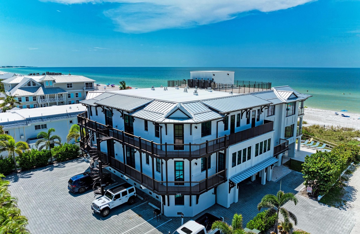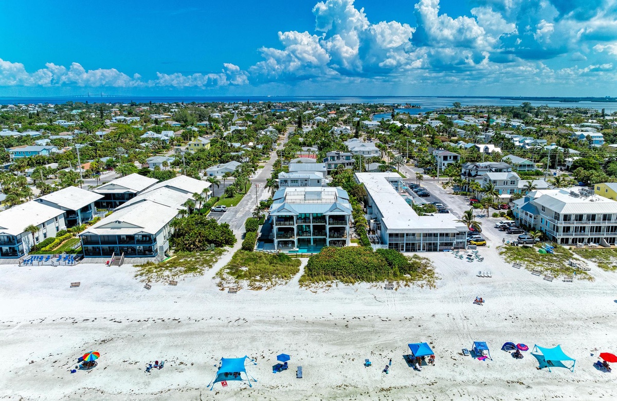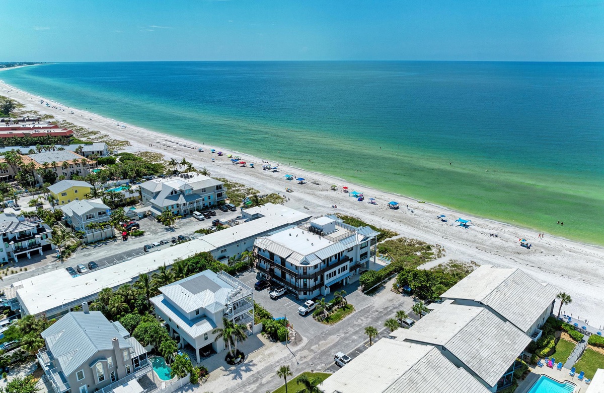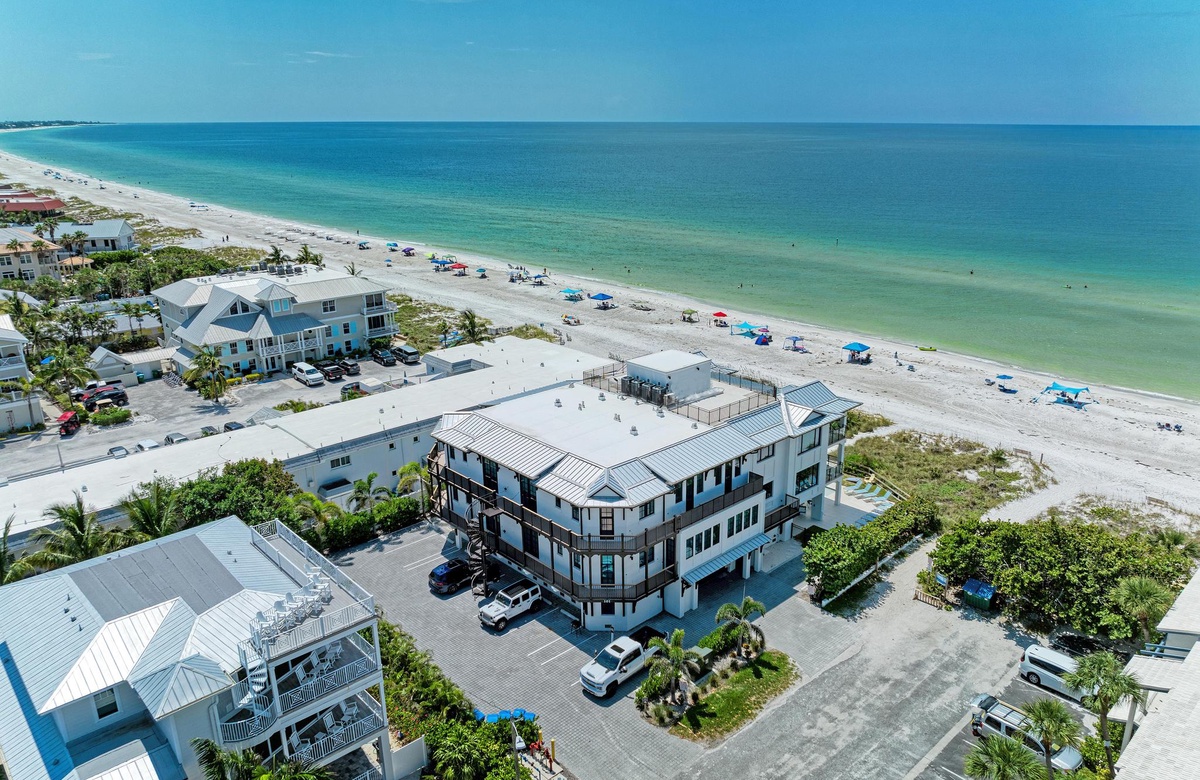 Das Luxusapartment Buena Vista Unit 4 befindet sich direkt am Strand auf 101 67th Street in Holmes Beach. 8 Gäste mit 4 Schlafzimmern, dreieinhalb Bäder: 3 Kingsize-Betten, 2 Einzelbetten und eine Doppelausziehcouch. Beheizter Gemeinschaftspool mit Spa. Gemeinschaftsgrill, TV, Tischtennis und Cornhole. WLAN, Geschirrspüler, Waschmaschine und Trockner, Aufzug, 3 Parkplätze teils mit Überdachung und in der Garage; zwei davon sind zugewiesen und einer für Gäste. Offener überdachter Balkon mit Blick auf den Pool und den Golf von Mexiko. Abschließbare Lagermöglichkeit am Pool und eine große Garage, um weitere Fahrzeuge oder große Gegenstände zu verstauen.