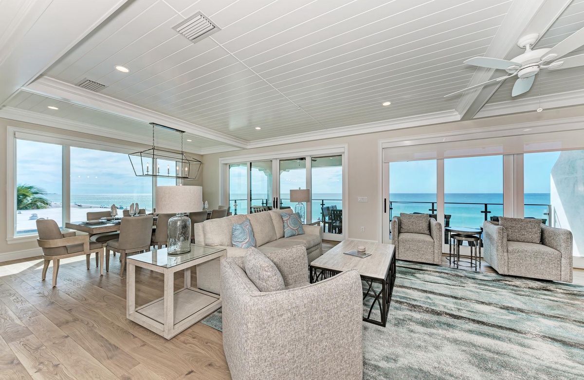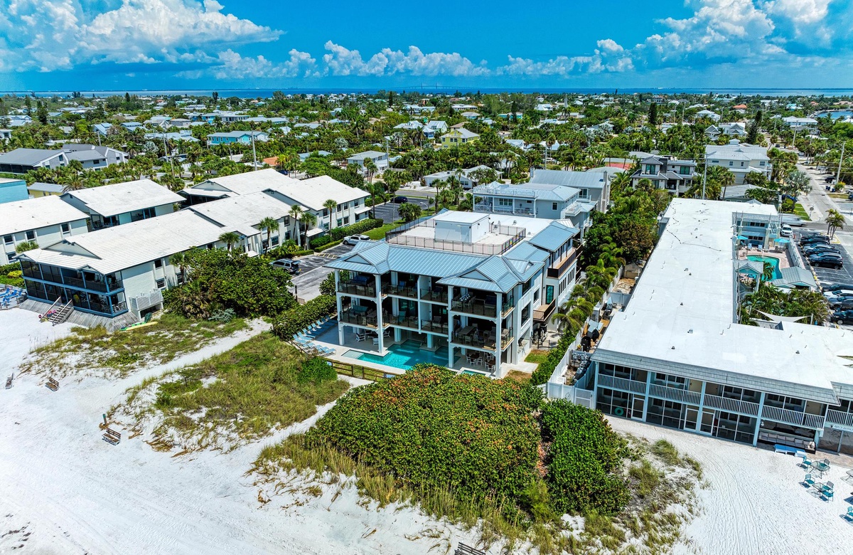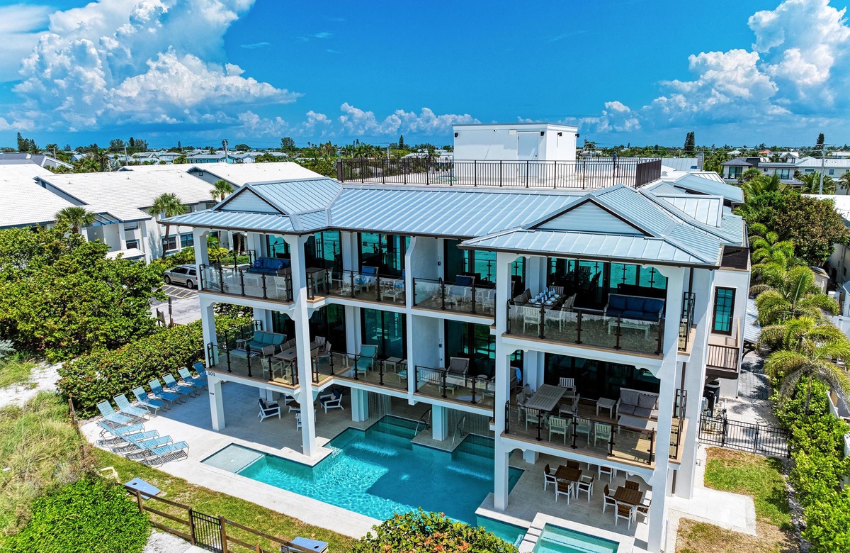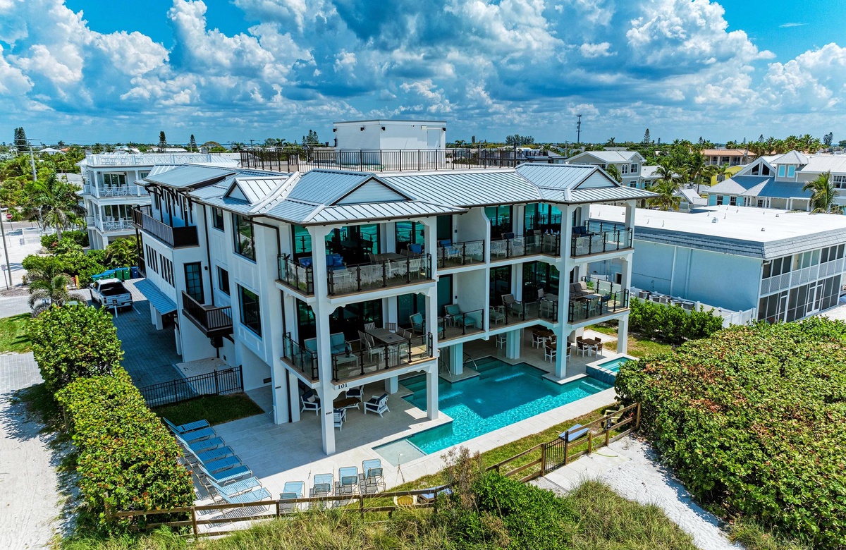 Das Luxusapartment Buena Vista Unit 4 befindet sich direkt am Strand auf 101 67th Street in Holmes Beach. 8 Gäste mit 4 Schlafzimmern, dreieinhalb Bäder: 3 Kingsize-Betten, 2 Einzelbetten und eine Doppelausziehcouch. Beheizter Gemeinschaftspool mit Spa. Gemeinschaftsgrill, TV, Tischtennis und Cornhole. WLAN, Geschirrspüler, Waschmaschine und Trockner, Aufzug, 3 Parkplätze teils mit Überdachung und in der Garage; zwei davon sind zugewiesen und einer für Gäste. Offener überdachter Balkon mit Blick auf den Pool und den Golf von Mexiko. Abschließbare Lagermöglichkeit am Pool und eine große Garage, um weitere Fahrzeuge oder große Gegenstände zu verstauen.