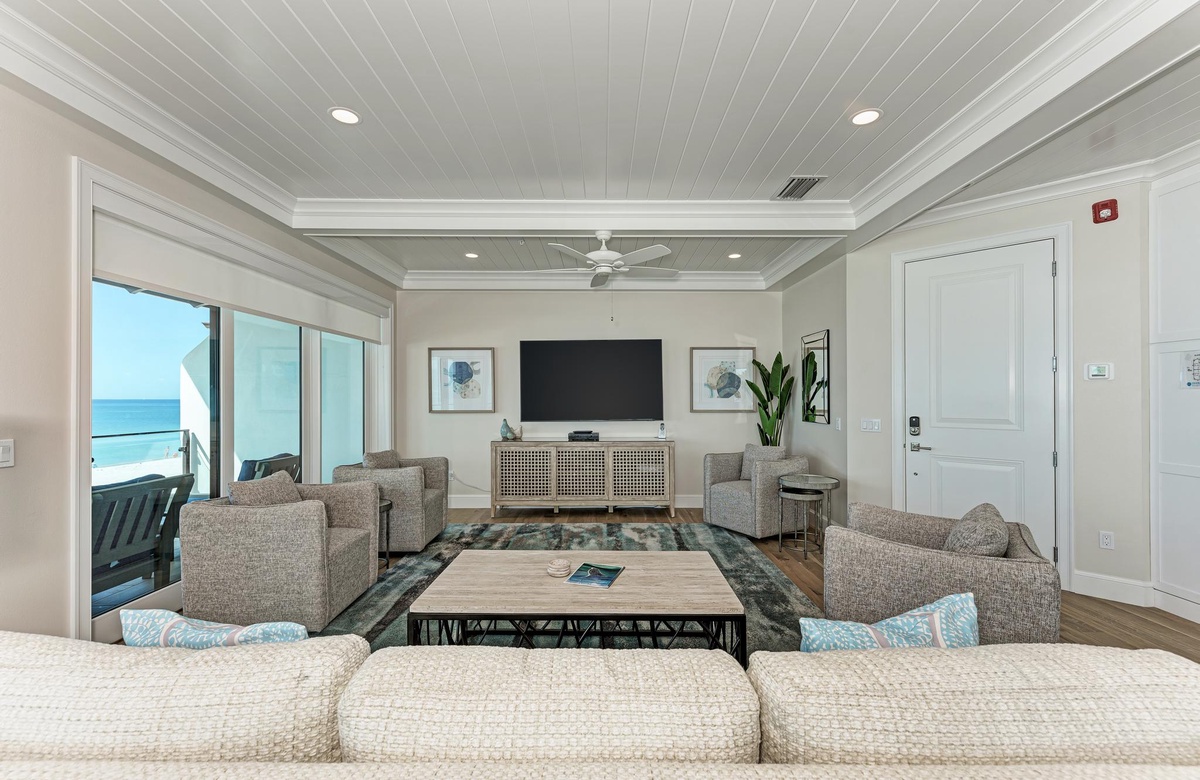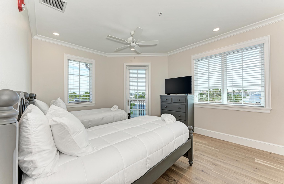 Im Buena Vista Unit 4 finden Sie elegante Akzente und legeres Dekor für hohe Ansprüche. Sie werden sich sofort im beschaulichen Inselleben wiederfinden, entspannen und Ihr luxuriöses Apartment genießen. Zwei der vier Schlafzimmer verfügen über Kingsize-Betten und haben ihre eigenen Badezimmer mit begehbaren Duschen. Die beiden zusätzlichen Schlafzimmer sind perfekt für weitere Familienmitglieder oder die kleinen und großen Kinder und verfügen über ein Kingsize-Bett und zwei Einzelbetten. Um eine Gruppe von 10 Personen zu beherbergen steht Ihnen auch eine Doppelausziehcouch im Wohnzimmer zur Verfügung. Alle Schlafzimmer haben Smart-TVs mit HBO und Showtime.