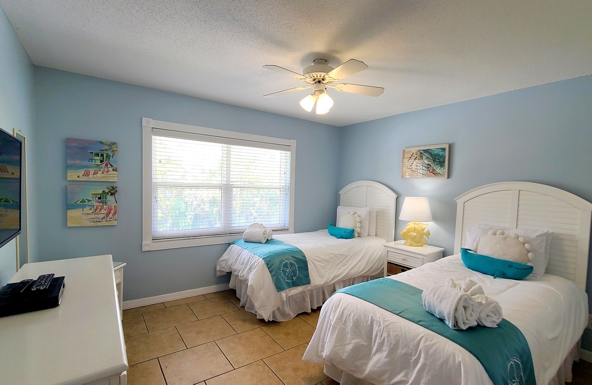 Die Schlafzimmer des Casa Sierra 205 B verfügen über 1 Kingsize-Bett und 2 Einzelbetten, plus einer Doppel-Ausziehcouch. Sie werden die Flachbildschirme in jedem Schlafzimmer und die Premiumqualität der Wäsche und Handtücher lieben. Das Hauptschlafzimmer hat ein angrenzendes Badezimmer mit begehbarer Dusche. Das andere Bad, vom Gang aus erreichbar, verfügt über eine Wannen-/Duschkombination.
