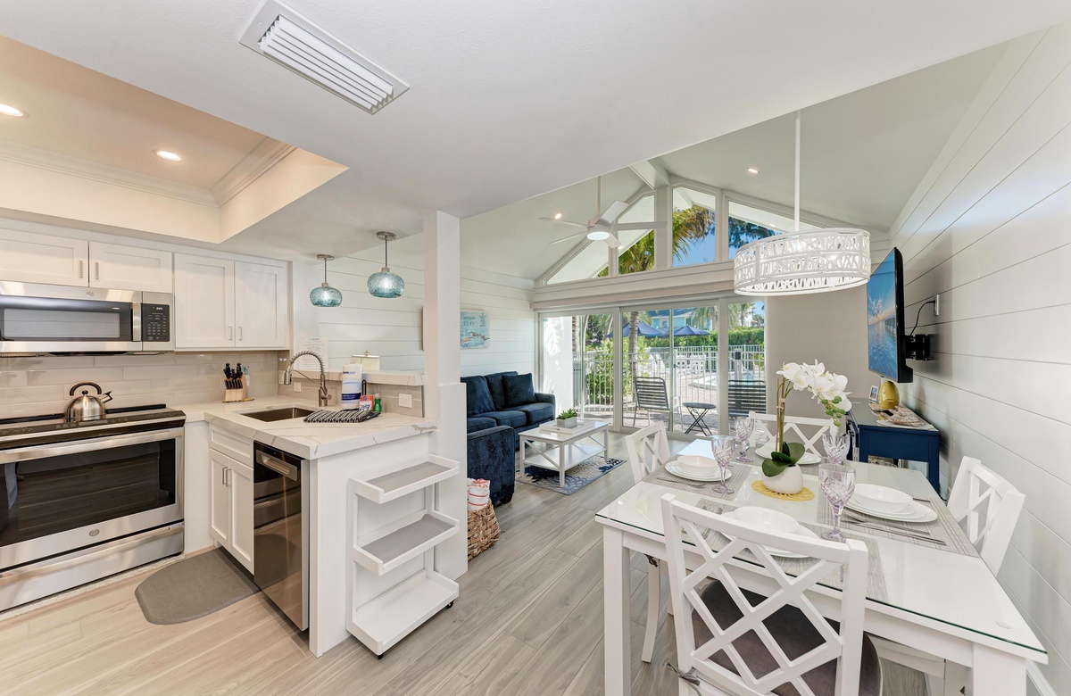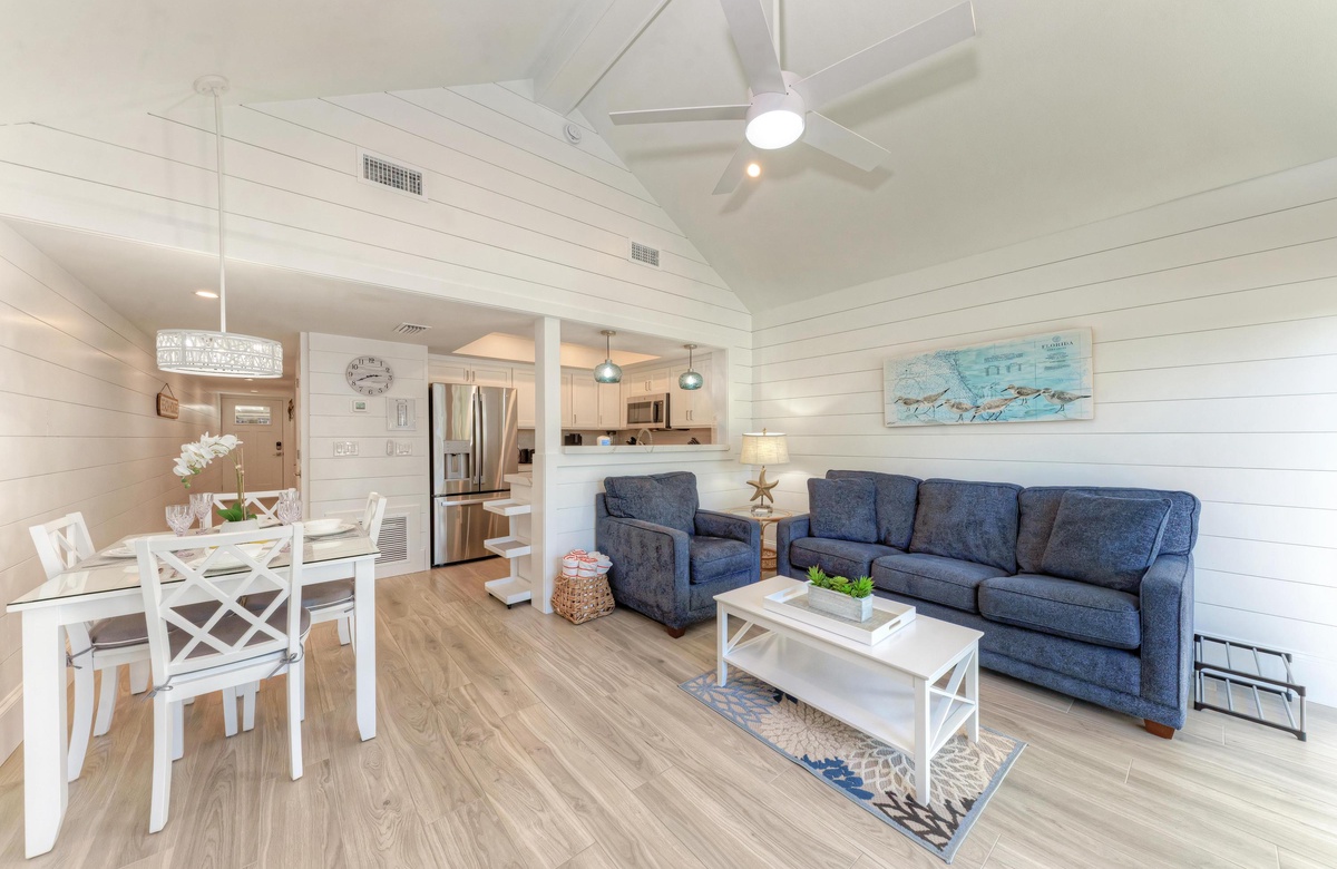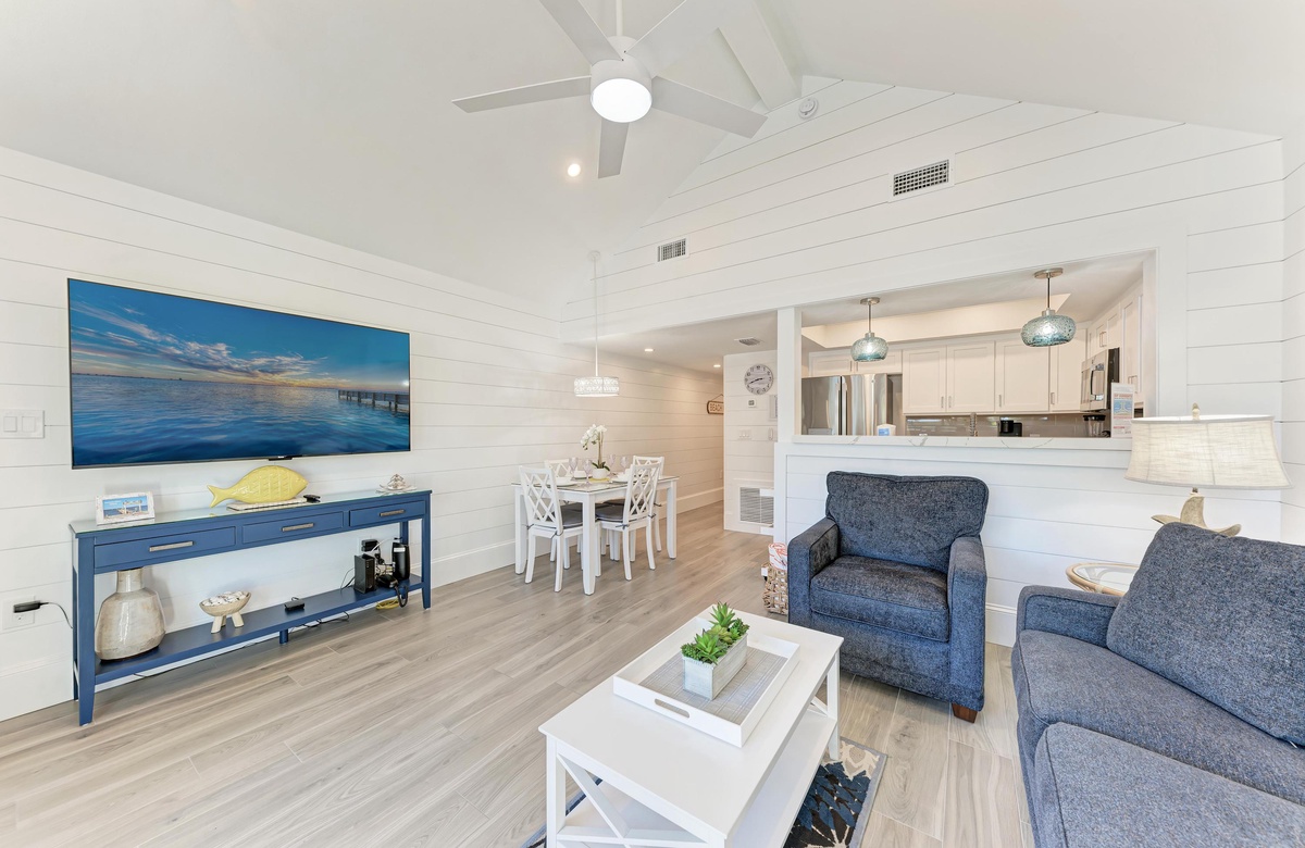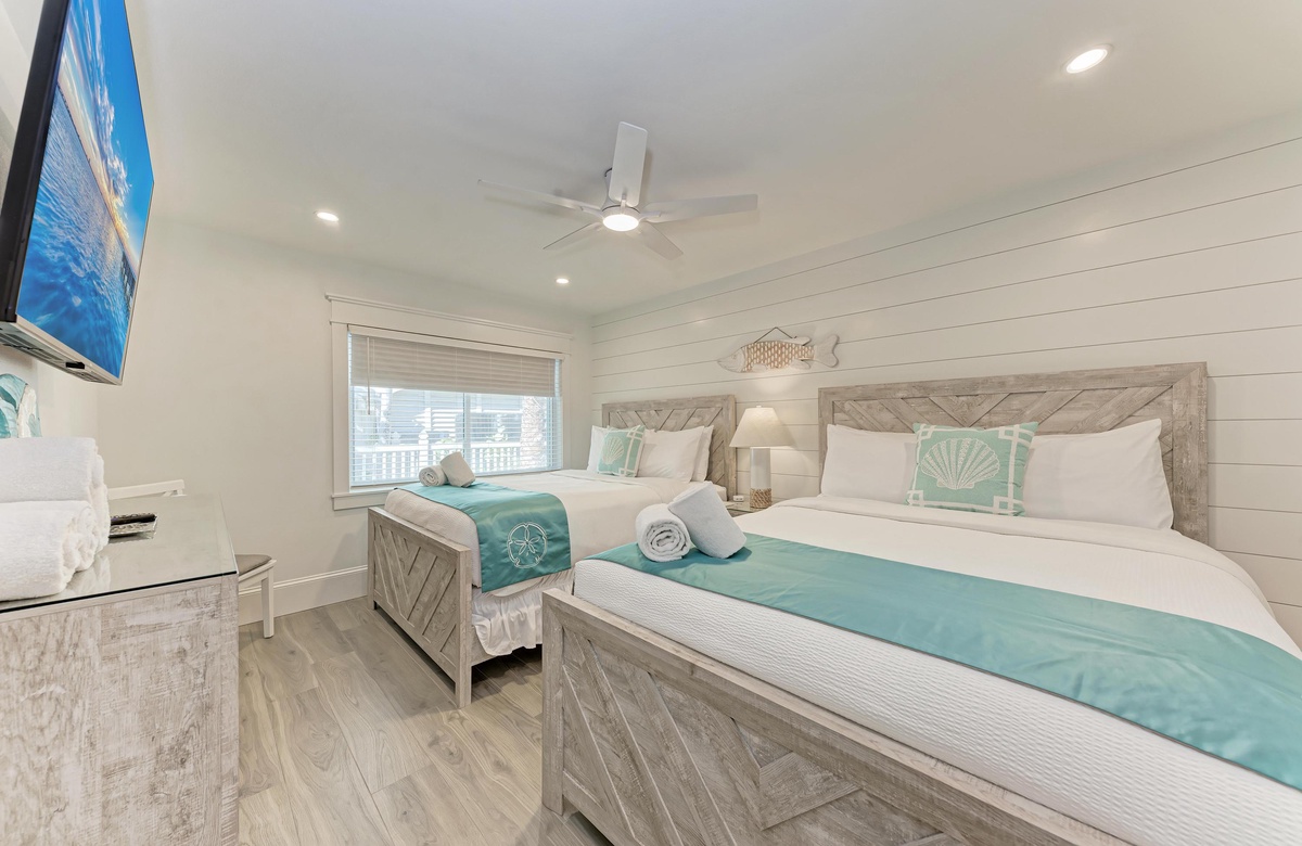 Das Holmes Beach Ferienapartment "Coconuts Beach Resort 101" ist perfekt, charmant und gemütlich für 4 Personen und perfekt auch zu zweit. Sie werden sich in das geschmackvolle Dekor in diesem Apartment verlieben. Der offene Grundriss von Küche, Wohn- und Essbereich bietet sich zum gemeinsamen Essen und Relaxen an. Im Schlafzimmer finden Sie zwei Doppelbetten (Queensize) mit Hotel-Premiumqualität-Wäsche und einem Badezimmer mit begehbarer Dusche.