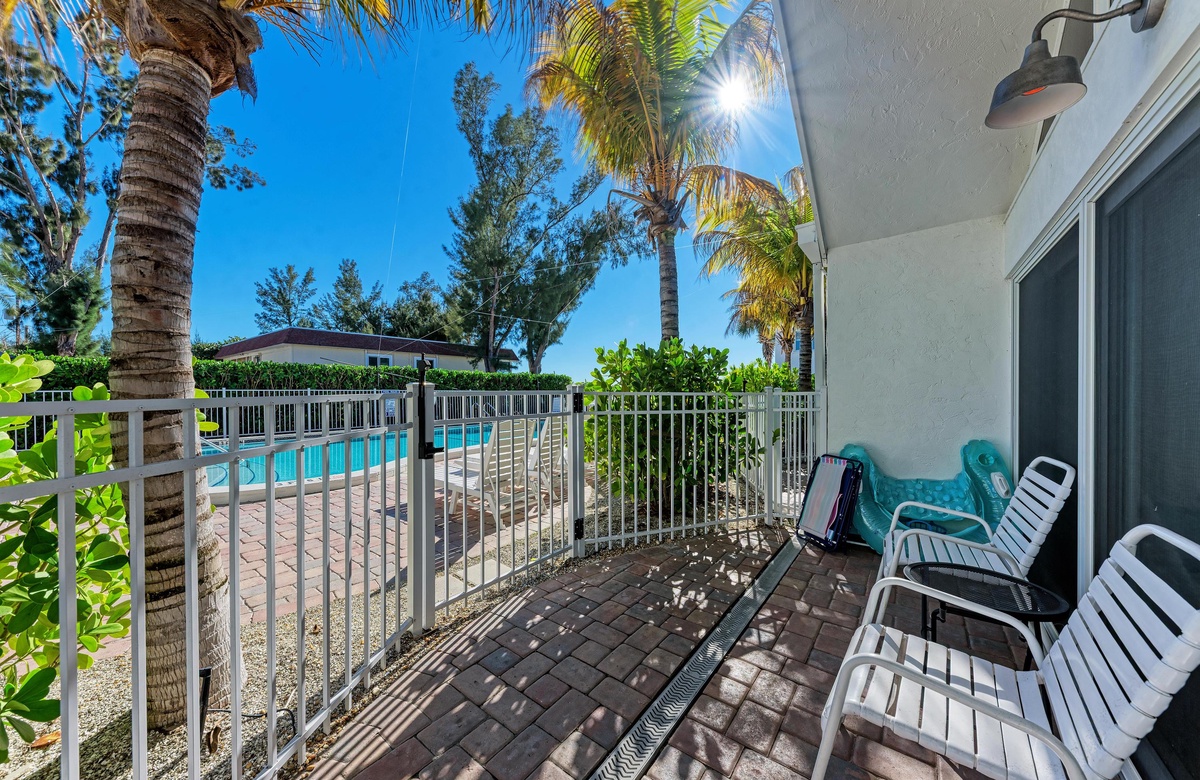 Treten Sie hinaus auf den ebenerdigen Terrassenbereich, der sich zum beheizten Gemeinschaftspool hin öffnet und saugen Sie die Sonne in den bequemen Terrassenstühlen auf. Mit dem verfügbaren WLAN bleiben Sie mit der Außenwelt in Verbindung. Es gibt einen Parkplatz für Ihr Fahrzeug. Es gibt zudem eine Waschmaschine und Trockner in der Wohnung, die sich auf der nordöstlichen Seite des Gebäudes beim Gulf Drive befindet. Sie werden sich in Anna Maria Island verlieben, wenn Sie dieses perfekte Ferienwohnung "Coconuts Beach Resport 101" anmieten!