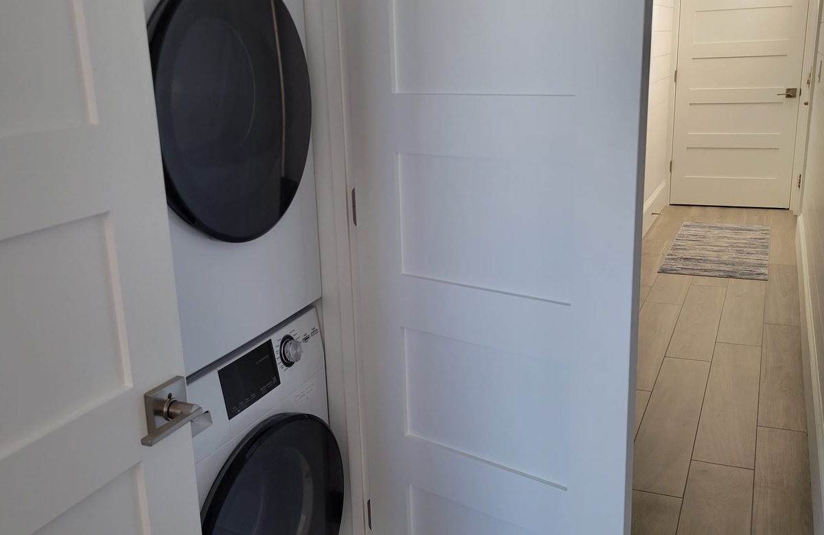 Das Bett ist mit Hotelwäsche in Premiumqualität bezogen. Das Wohnzimmer sowie Schlafzimmer verfügen beide über einen Flachbild-TV und WLAN, wenn Sie sich abends erholen wollen. Das Badezimmer mit einer begehbaren Dusche befindet sich gleich außerhalb des Schlafzimmers. Es gibt zudem eine Waschmaschine und Trockner in der Wohnung.