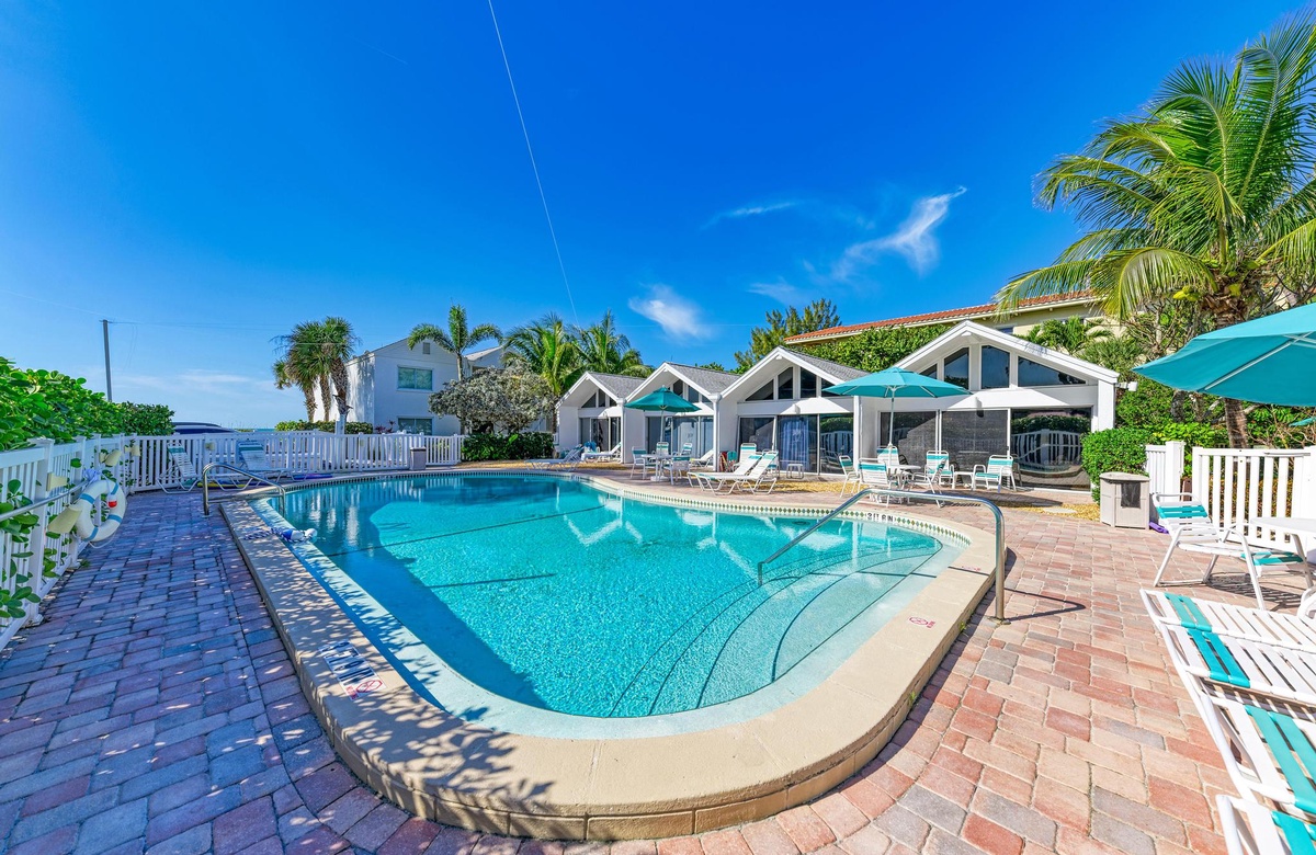 Genießen Sie ein entspanntes Zusammensein bei einem Glas Wein und einem Essen am Balkontisch. Wenn Sie zur Südseite des Apartments hinübergehen, finden Sie den beheizten Pool und einen Terrassenbereich. Und mit nur weiteren drei Schritten befinden Sie sich schon am besten Puderzucker-Sandstrand der Golfküste.