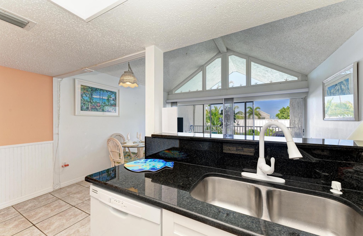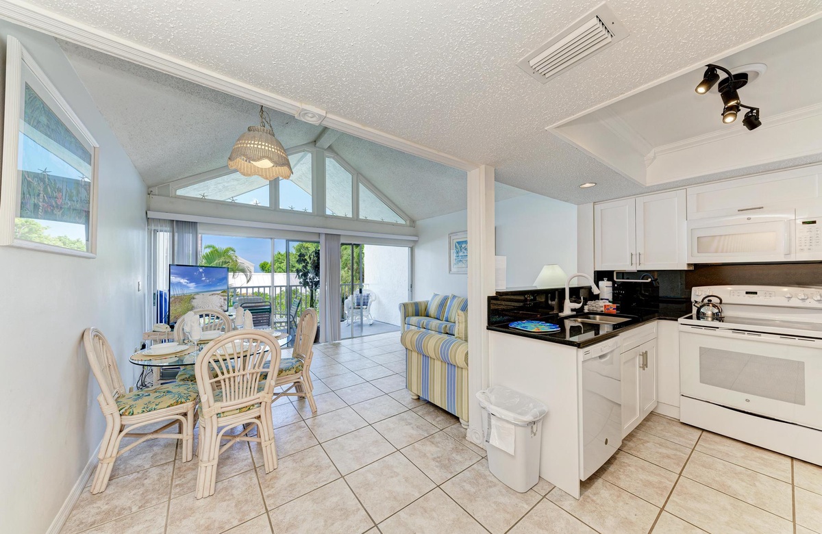 Die große Fensterfront rahmt den Strand perfekt ein, der von Küche, Wohn- und Essbereich zu sehen ist. Auf der insektengeschützten Loggia sitzen Sie ganz im Insel-Lifestyle und genießen die Meeresbrise.