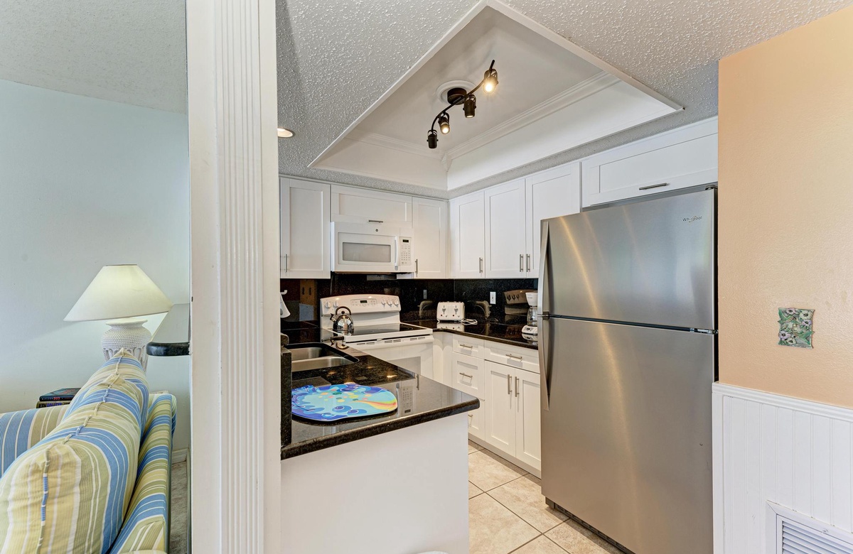 Aber Sie kommen wegen dem einzigartigen Strand! Dieser liegt nur ein paar Schritte von Ihrer Wohnung und Sie sind direkt im Sand. Die Anlage bietet einen Gemeinschaftspool und einen zugewiesenen Parkplatz. Es gibt zudem gemeinschaftlich genutzte Münzwaschmaschinen in der Anlage, die sich auf der nordöstlichen Seite des Gebäudes beim Gulf Drive befindet.