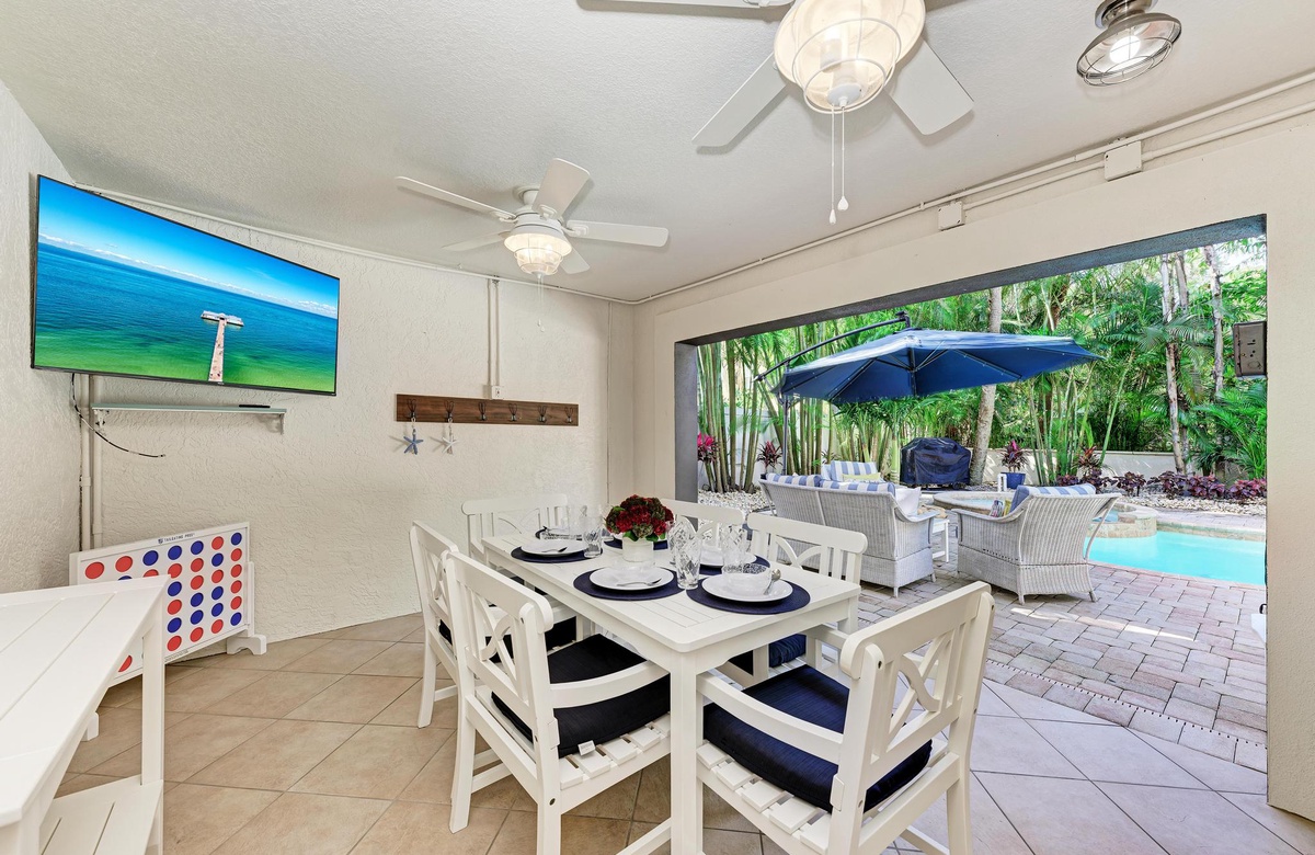 Wenn Ihr Ziel eine zurückgezogener und erholsamer Urlaub ist, dann werden Ihnen der beheizte Pool und Whirlpool sicher gefallen. Saugen Sie die Sonne vom Liegestuhl aus auf, schlürfen ein erfrischendes Getränk am Tisch direkt im Pool, lassen Sie den Stress im Whirlpool dahinschmelzen oder kuscheln Sie sich mit einem Lieblingsbuch auf den Balkon mit Blick auf den Pool. Sie können auch im überdachten Außenbereich mit Ventilator fernsehen, um die warme, leichte Brise zu genießen.