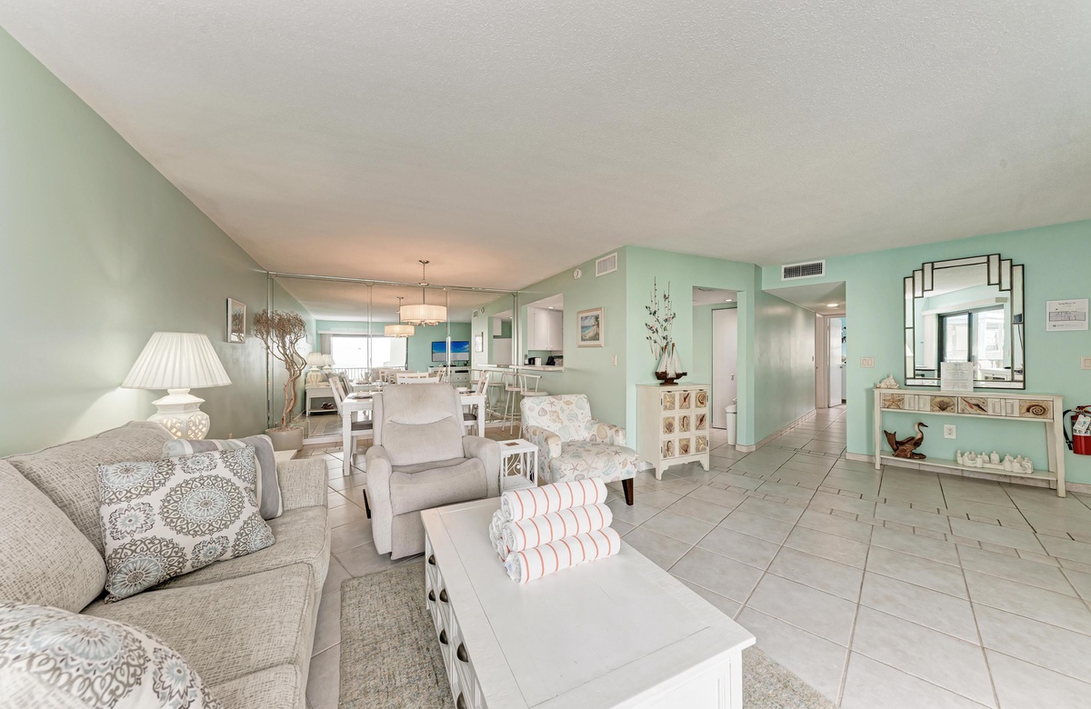 "Gulf Place 23" besitzt alles, was Sie sich von einer paradiesischen Unterbringung direkt am Strand nur wünschen können. Es ist das perfekte Apartment für bis zu 6 Gäste! Dieses 2 Schlafzimmer und 2 Bäder-Apartment verfügt über 1 Kingsize-Bett und 2 Einzelbetten mit einer Doppel-Ausziehcouch in einer schön dekorierten und beruhigenden Atmosphäre.