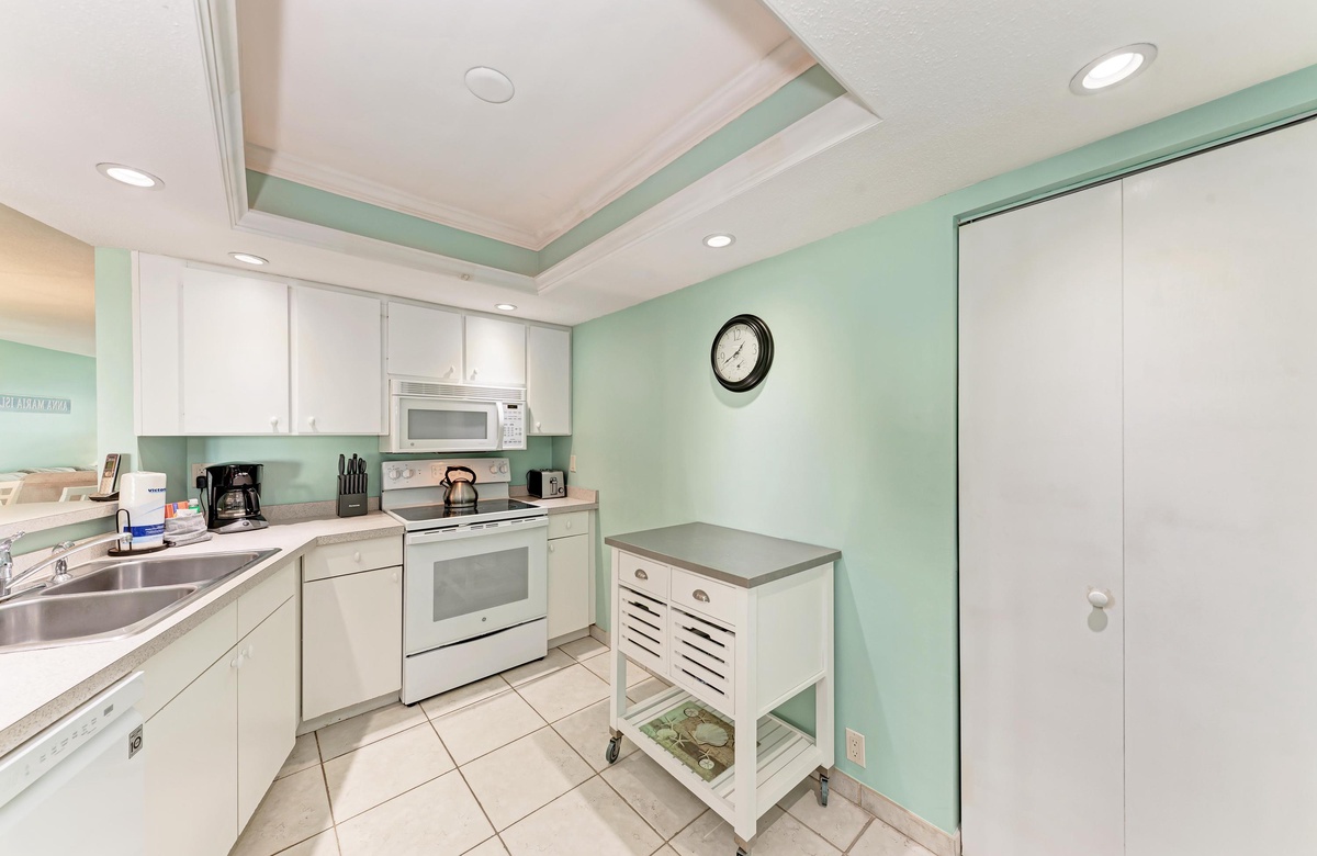 Die Küche ist mit ausreichend Platz zum Kochen für alle Ihre Gäste ausgestattet. Ein Geschirrspüler macht Ihnen das Leben leichter und der Insekten-geschützte Balkon lässt Sie ungestört das Abendessen einnehmen. Im "Gulf Place" wurde an alles gedacht. Sie finden alles, was Sie brauchen und woran Sie gewöhnt sind, inklusive einer Waschmaschine und Trockner.