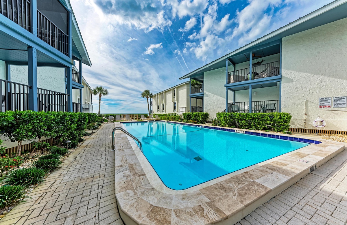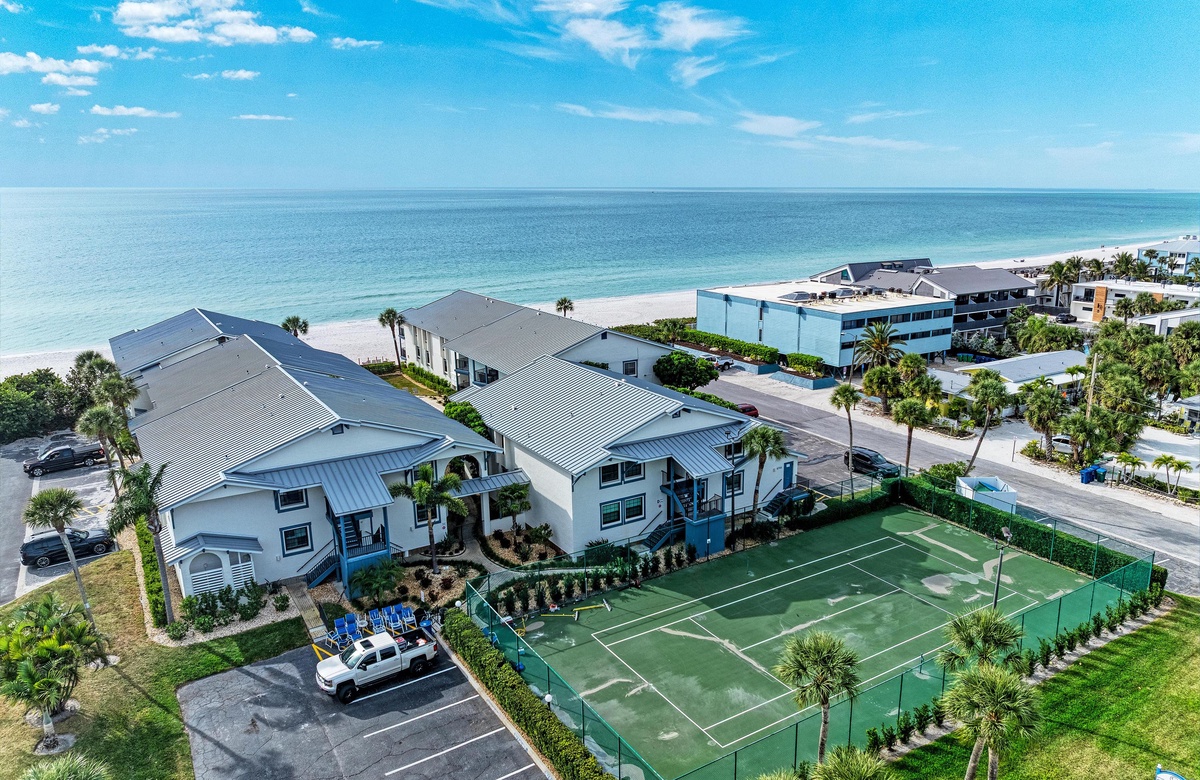 Diese Holmes Beach Ferienwohnung bietet einen beheizten Gemeinschaftspool und Tennisplätze, falls Sie sich vom Strand lösen können.