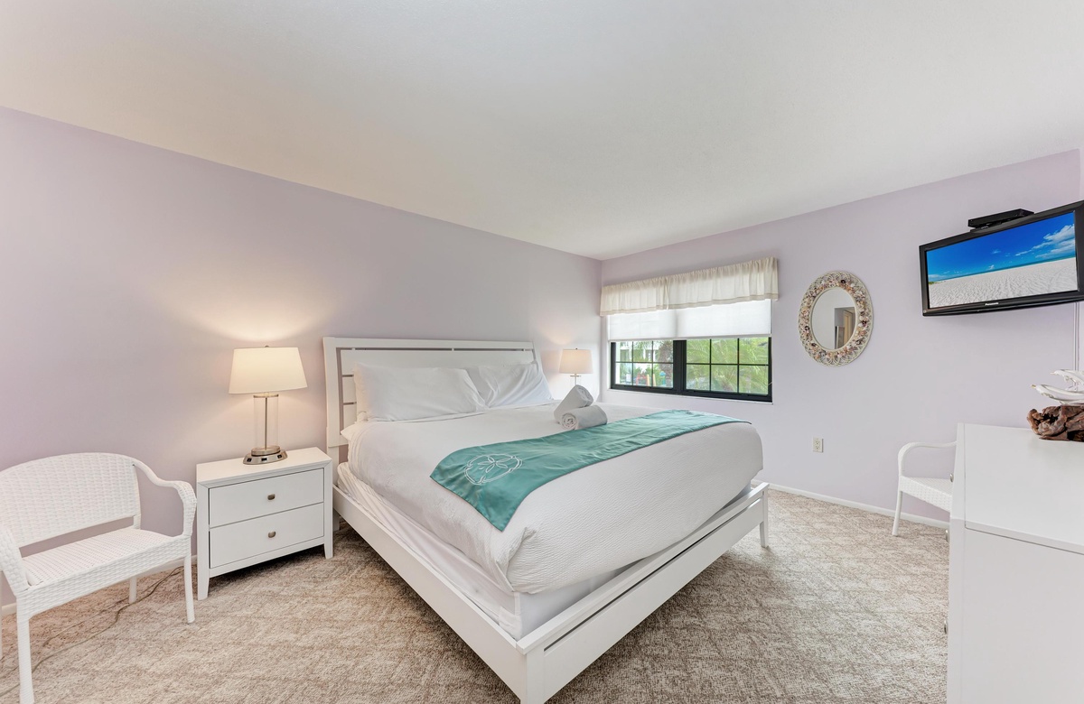 Innen im "Gulf Place" fühlen Sie sich gelöst aufgrund der kühlen, luftigen Pastellfarben und bequemen Möbeln. Kuschlige Betten und unser Premium-Wäscheservice hauchen dem wunderbaren Apartment noch den Luxus ein, den Sie nicht ausschlagen wollen. Genießen Sie den Meerblick auf einem angenehmen, mit Insektenschutz versehenen Balkon.