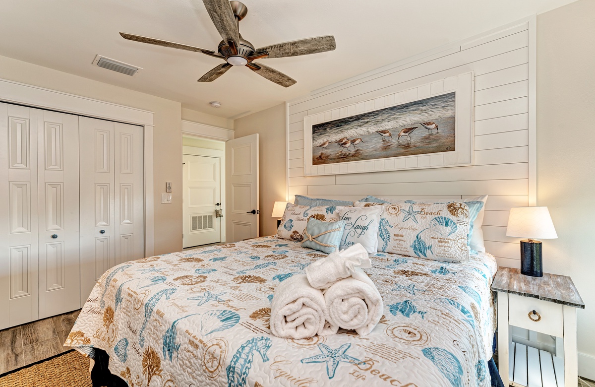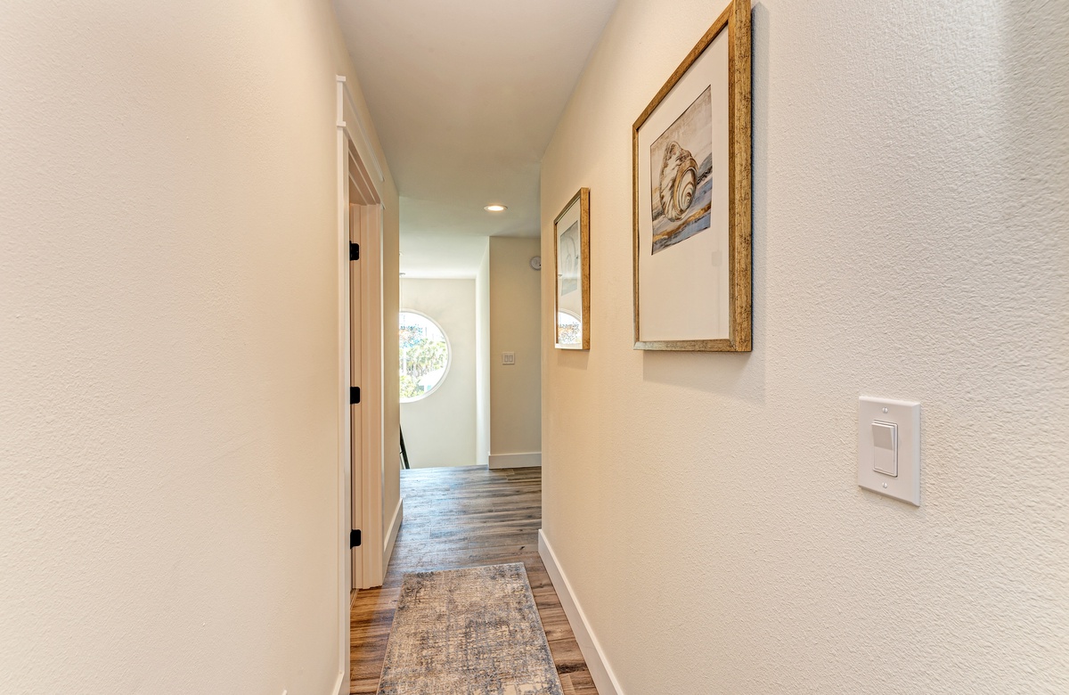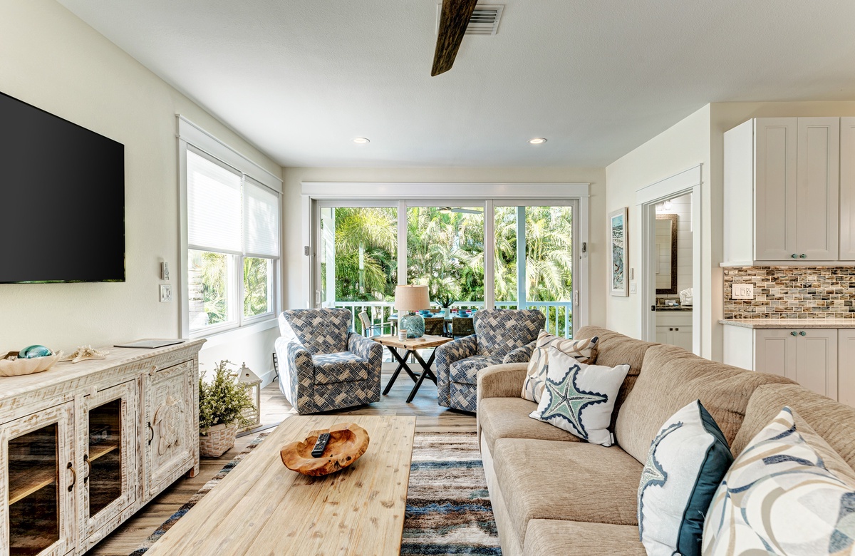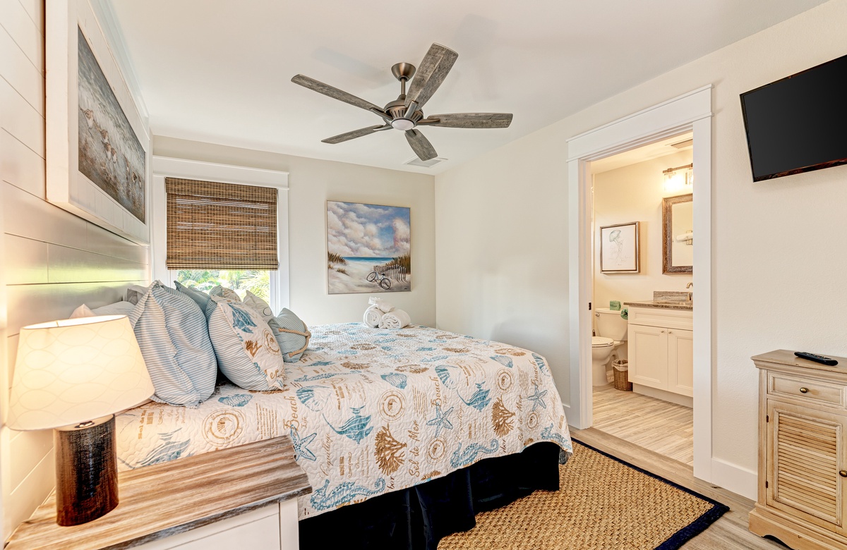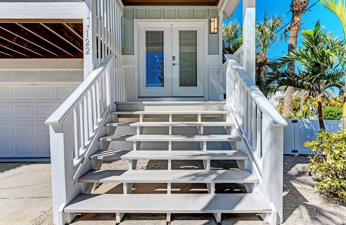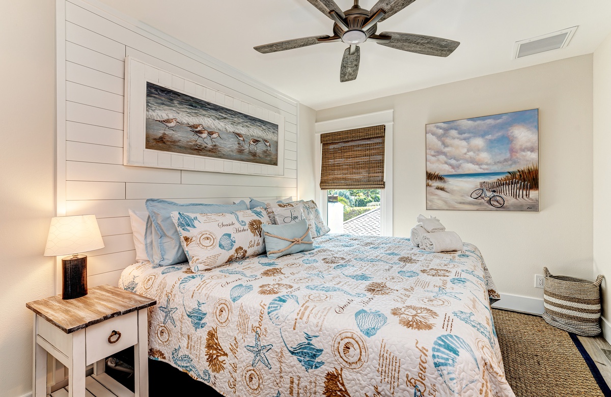 Der Hauptwohnbereich bietet einen offenen Grundriss mit Terrassen nach vorn und hinten im 1. Stock. Der Wohnbereich ist offen und beinhaltet die komplett ausgestattete Küche, das Wohnzimmer und Esszimmer. Oben beim Hauptschlafzimmer befinden sich Waschmaschine und Trockner. Drei der vier Schlafzimmer sind auf dem 2. Stock, inklusive des Hauptschlafzimmers. Das vierte Schlafzimmer ist auf der selben Ebene, wie der Wohnbereich und umfasst ein Badezimmer bei der Küche, welches für Gäste gut erreichbar ist. Dieses private Haus westlich des Gulf Drive beherbergt bequem bis zu 8 Personen mit einem Kingsize-Bett im Hauptschlafzimmer, einem Queensize-Bett im zweiten Schlafzimmer und einer zweiter Schlafzimmer-Suite mit ebenfalls einem Kingsize-Bett im 2. Stock und einem Stockbett bestehend aus oben einem großen Einzelbett und darunter einem Queensize-Bett im 4. Schlafzimmer, welches perfekt für Kinder und Erwachsene ist!
