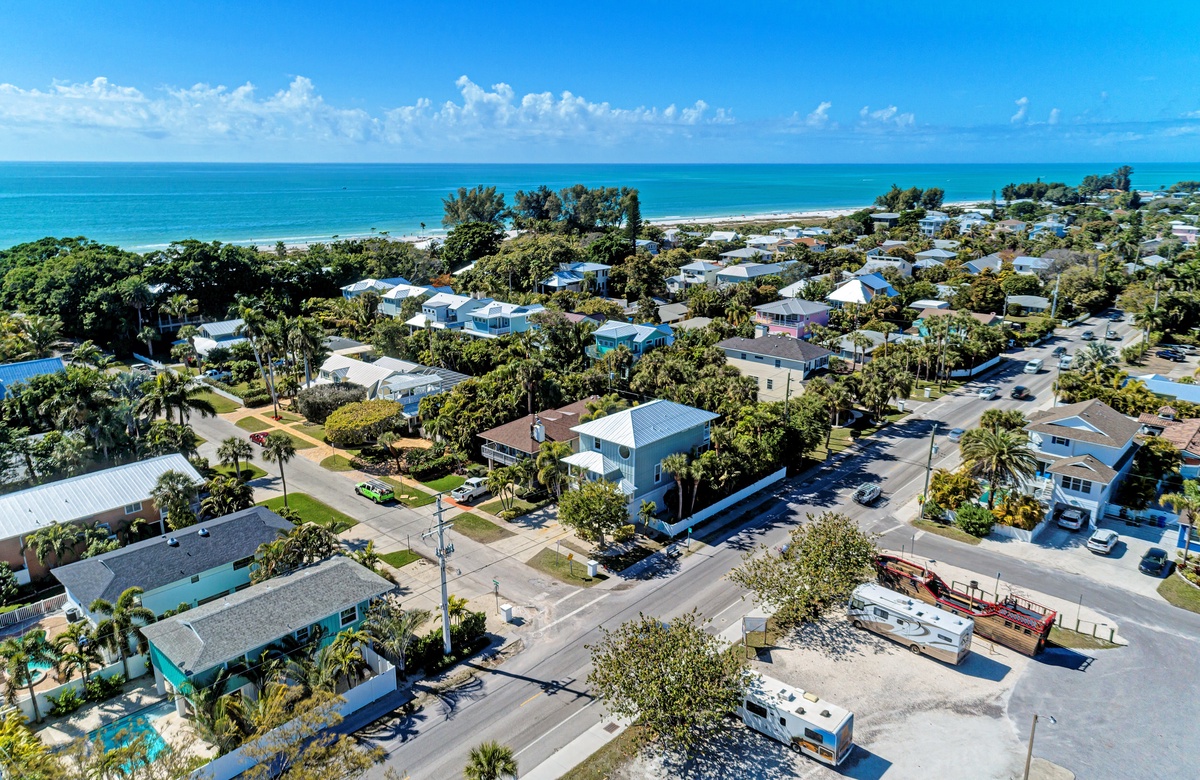 Hop, Skip and a Beach! befindet sich am Nordende von Anna Maria City. Das erhöhte Haus ist nur eine kurze Shuttle-Fahrt, mit dem Rad oder zu Fuß von einigen der besten lokalen Geschäften und Restaurants entfernt. In 15 Minuten erreichen Sie über den Strand die berühmte Sandbar, um dort einen Cocktail oder Abendessen am Strand einzunehmen.