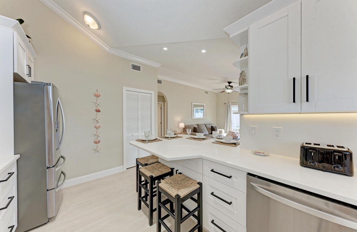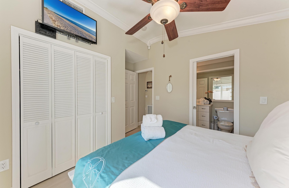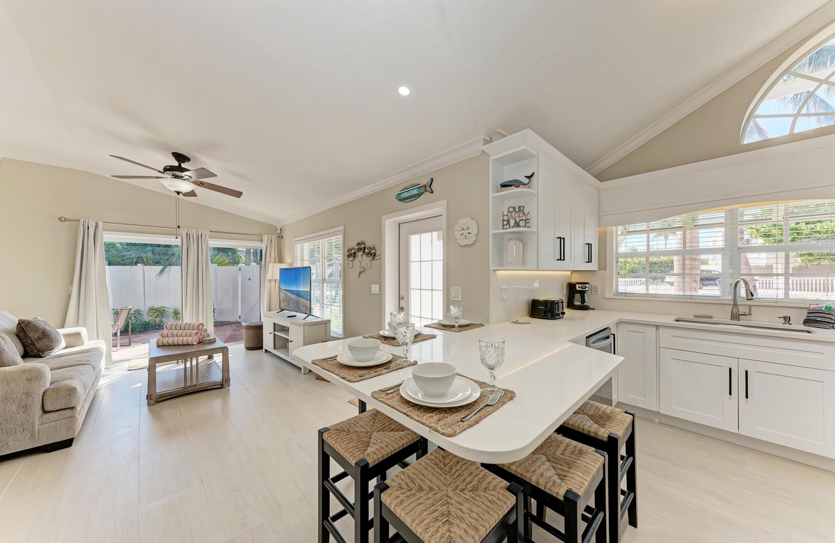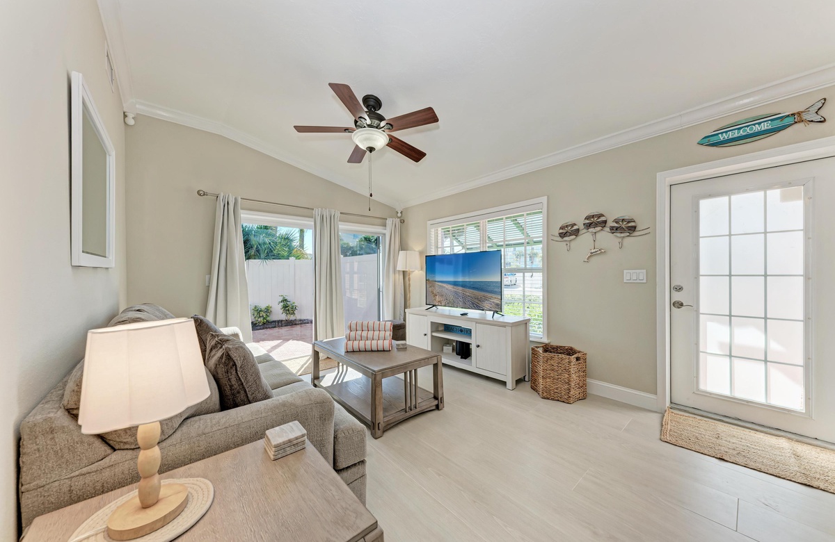 Die wunderschön ausgestatteten Erdgeschoss-Wohnungen mit 2 Schlafzimmern und 2 Bädern haben ein Kingsize-Bett und ein Queensize-Bett mit einer zusätzlichen Doppel-Ausziehcouch, um eine Familie von 6 bequem unterzubringen. Die voll ausgestattete, erneuerte Küche hat alles, was Sie für das perfekte Frühstück, Mittag-oder Abendessen benötigen, sofern Sie gern daheim essen. Der offene Wohnbereich ist perfekt, um sich seine Lieblingsserien anzusehen oder mit kostenlosen Highspeed-WLAN zu surfen. Es gibt einen privaten eingezäunten Terrassenbereich, der das Essen im Freien zum Vergnügen werden lässt und vergessen Sie nicht den Gasgrill der Anlage zu benutzen.