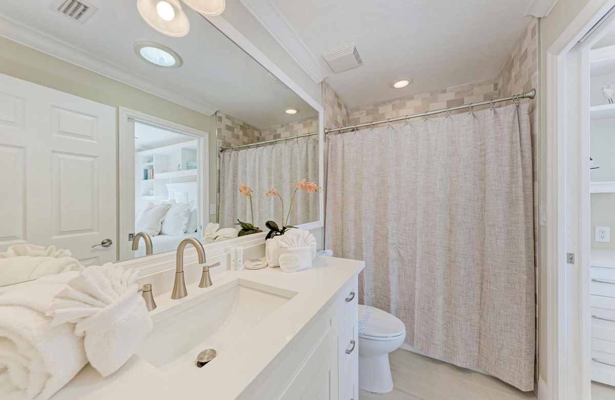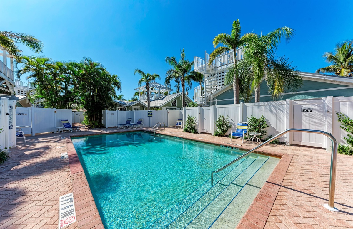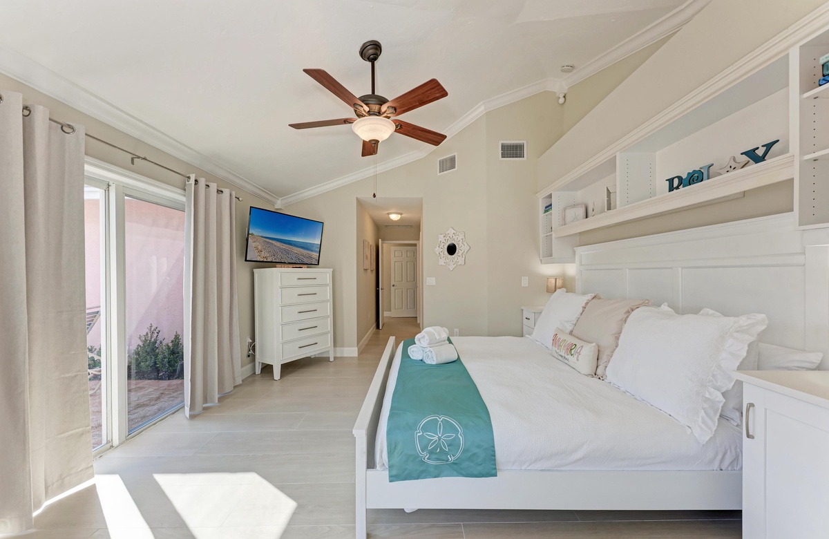 Der Tag am Strand ist nur einen kurzen Spaziergang über eine kleine Straße zum Strandzugang mit dem Puderzuckersand am Golf von Mexiko entfernt. Zusätzlich zum nahe gelegenen Strand ist der beheizte Gemeinschaftspool ein toller Ort, um sich nach einem Tag voller Erlebnissen zu erholen. Steigen Sie die Wendeltreppe hinauf, um auf der Dachterrasse den Ausblick auf das offene, endlose Wasser und die Sonnenuntergänge zu genießen.