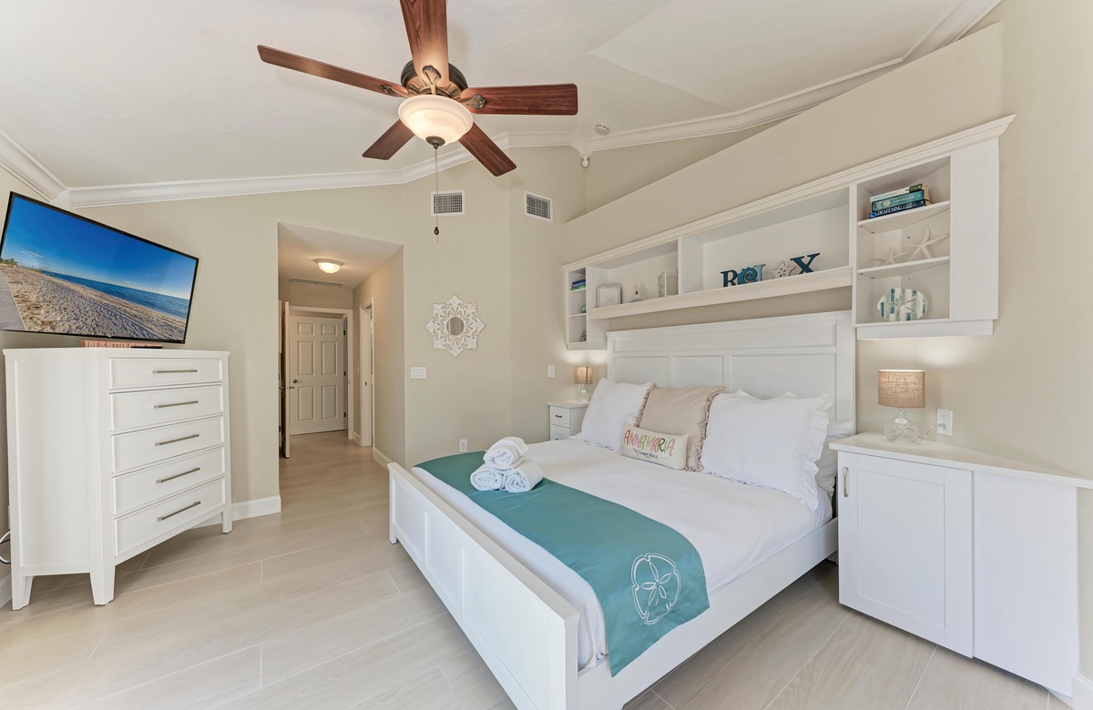 Die wunderschön ausgestatteten Erdgeschoss-Wohnungen mit 2 Schlafzimmern und 2 Bädern haben ein Kingsize-Bett und ein Queensize-Bett mit einer zusätzlichen Doppel-Ausziehcouch, um eine Familie von 6 bequem unterzubringen. Die voll ausgestattete, erneuerte Küche hat alles, was Sie für das perfekte Frühstück, Mittag-oder Abendessen benötigen, sofern Sie gern daheim essen. Der offene Wohnbereich ist perfekt, um sich seine Lieblingsserien anzusehen oder mit kostenlosen Highspeed-WLAN zu surfen. Es gibt einen privaten eingezäunten Terrassenbereich, der das Essen im Freien zum Vergnügen werden lässt und vergessen Sie nicht den Gasgrill der Anlage zu benutzen.