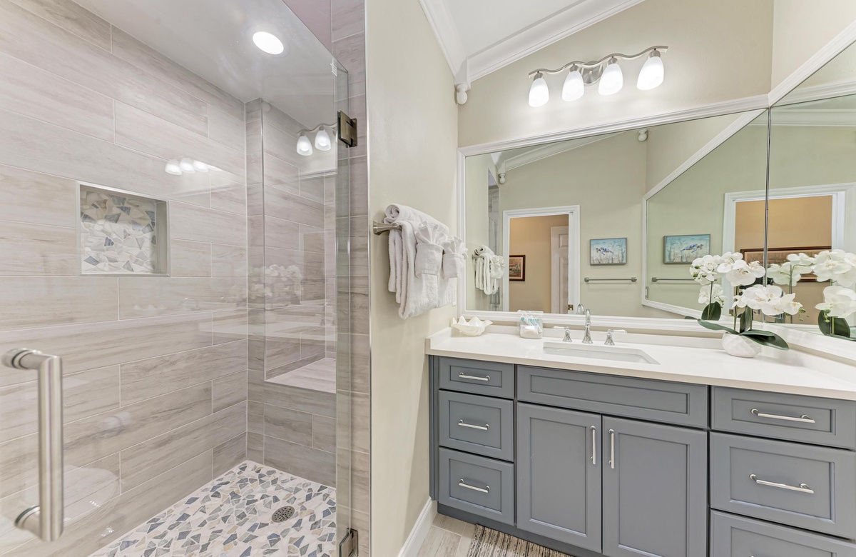Wachen Sie auf durch das tropische Vogelgezwitscher und faulenzen Sie in der Sonne mit einem guten Buch im privaten Hinterhof. Klettern Sie eine der nahegelegenen Wendeltreppen hinauf, um einen Blick auf den Ozean und regenbogenfarbigen Sonnenuntergänge zu genießen! Hüpfen Sie in den Gemeinschaftspool, um sich etwas abzukühlen und surfen anschließend mit dem kostenlosen WLAN und entspannen am Flachbild-TV. Ein voll ausgestattete Küche lässt die Vorbereitung des Essens für die Familie zum Vergnügen werden, während der Geschirrspüler den Abwasch erledigt.