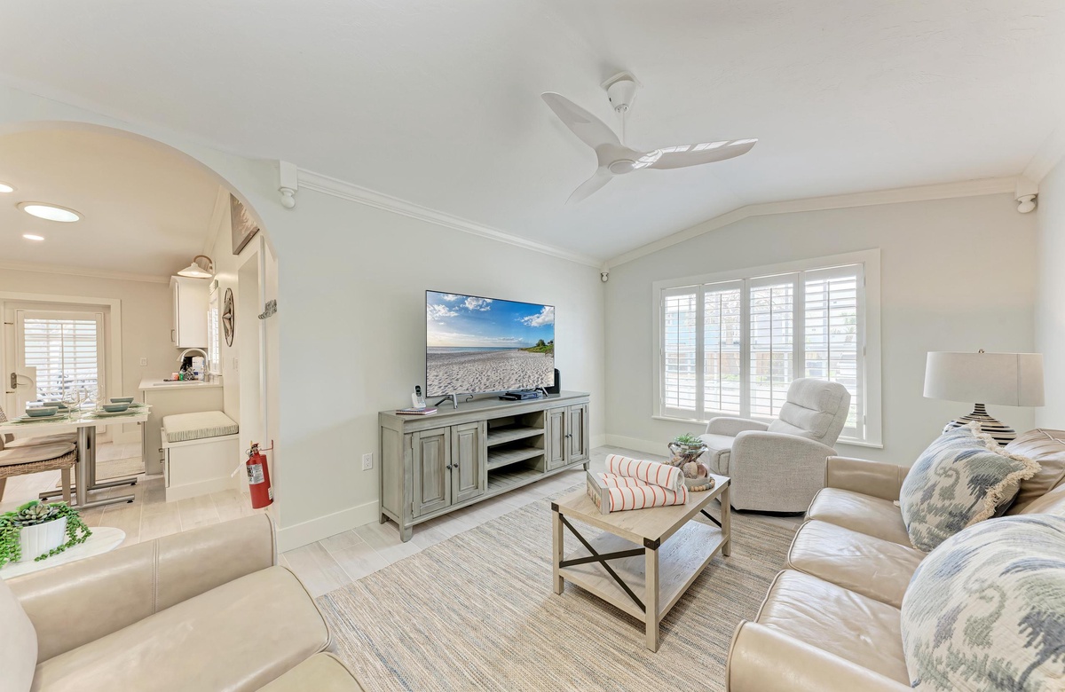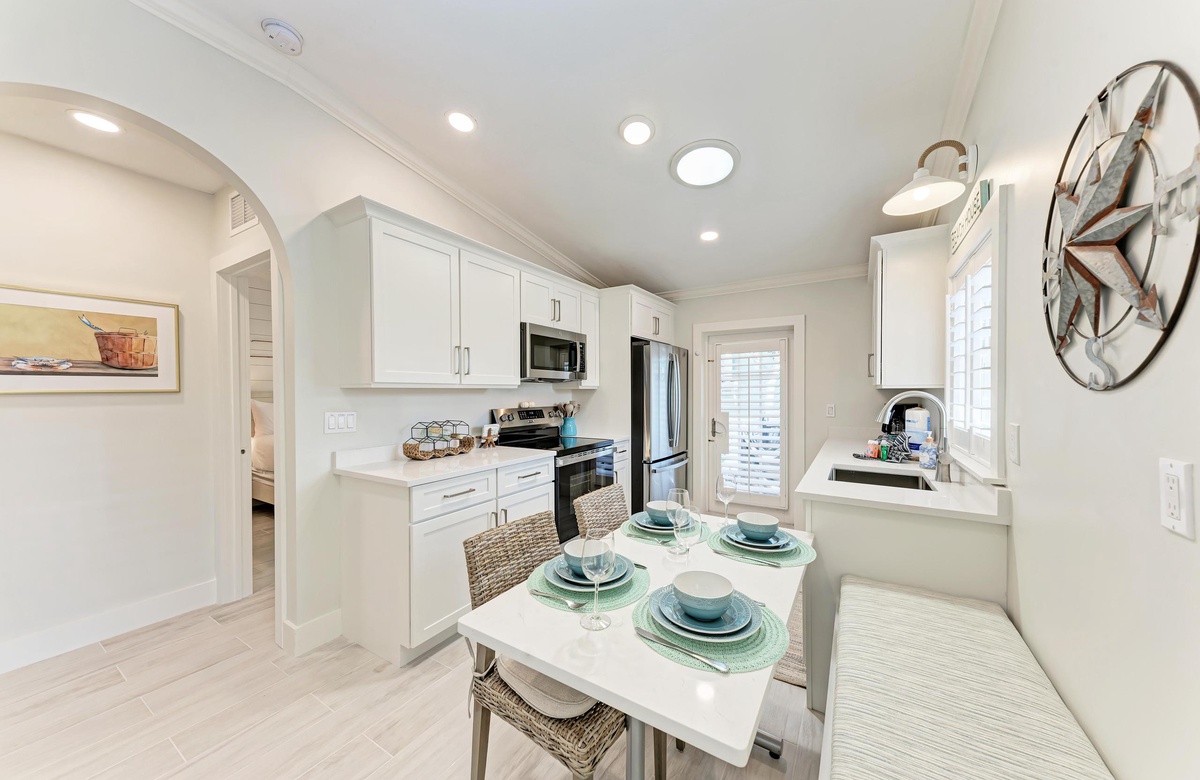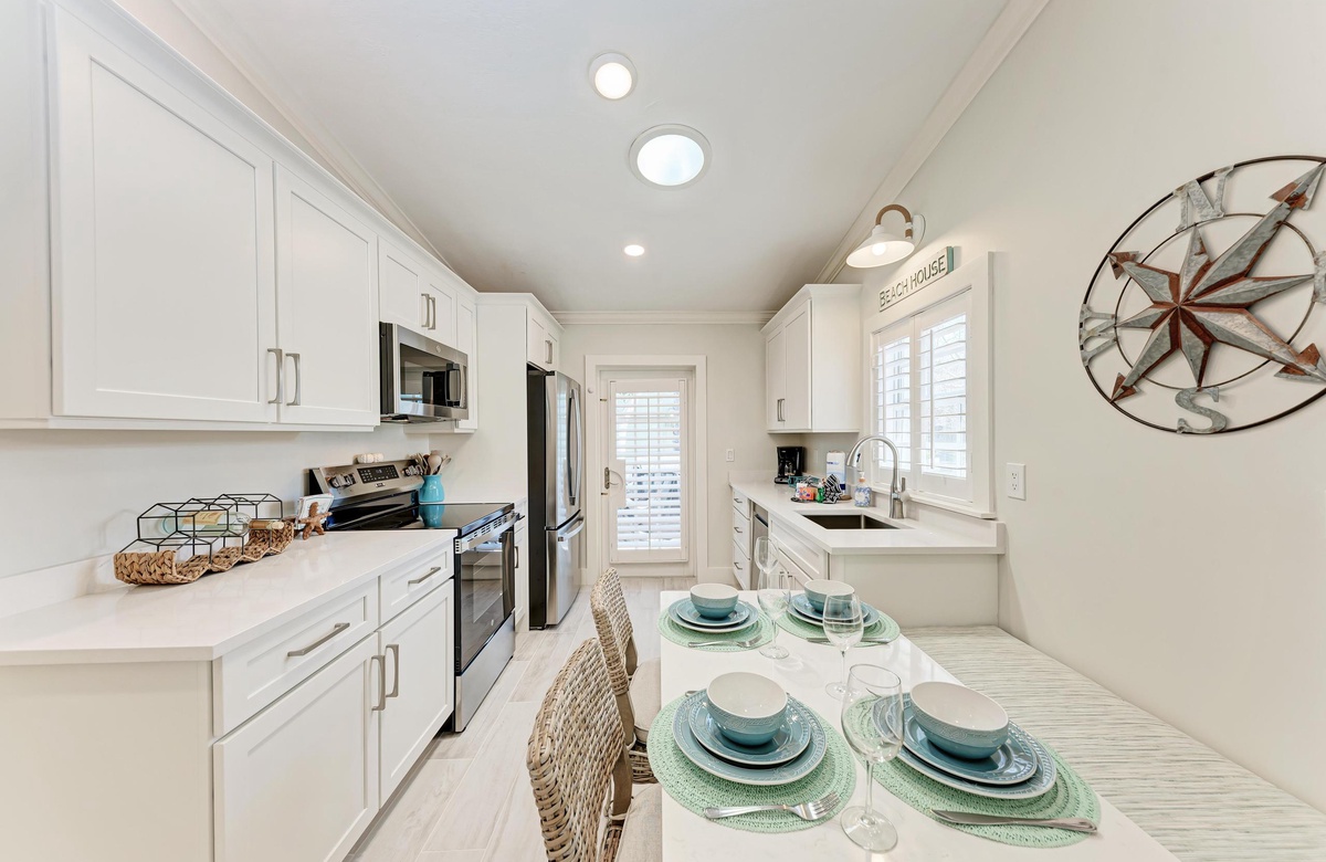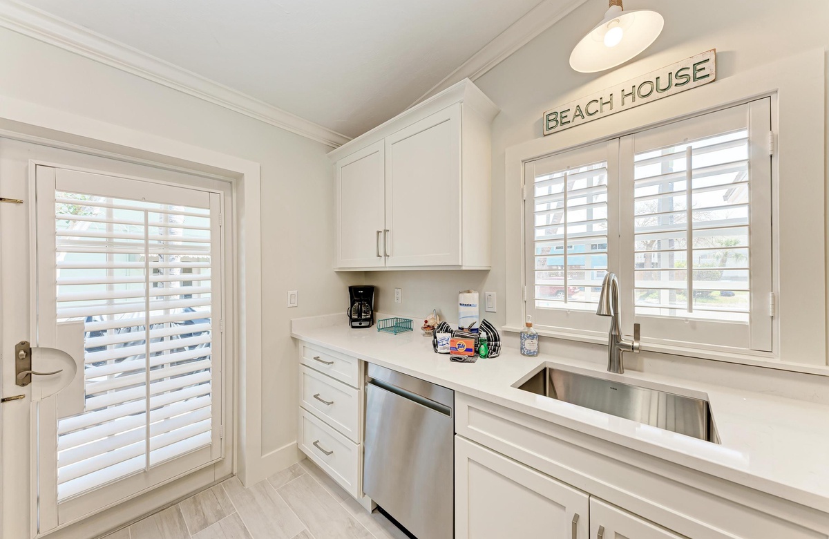 Im Inneren genießen Sie den offenen, luftigen Grundriss und eine helle Ausstattung in Strand-Atmosphäre, der Sie sofort in Urlaubsstimmung versetzt. Die voll ausgestattete Küche macht es leicht, ganze Mahlzeiten zuzubereiten. Nutzen Sie die praktische Frühstücksbar als erweiterte Ablage. Zu den weiteren Annehmlichkeiten gehören Klimaanlage, private Waschmaschine und Trockner sowie 2 Parkplätze und natürlich kostenloses WLAN.