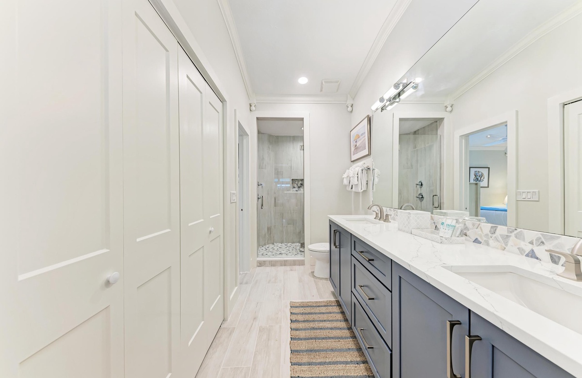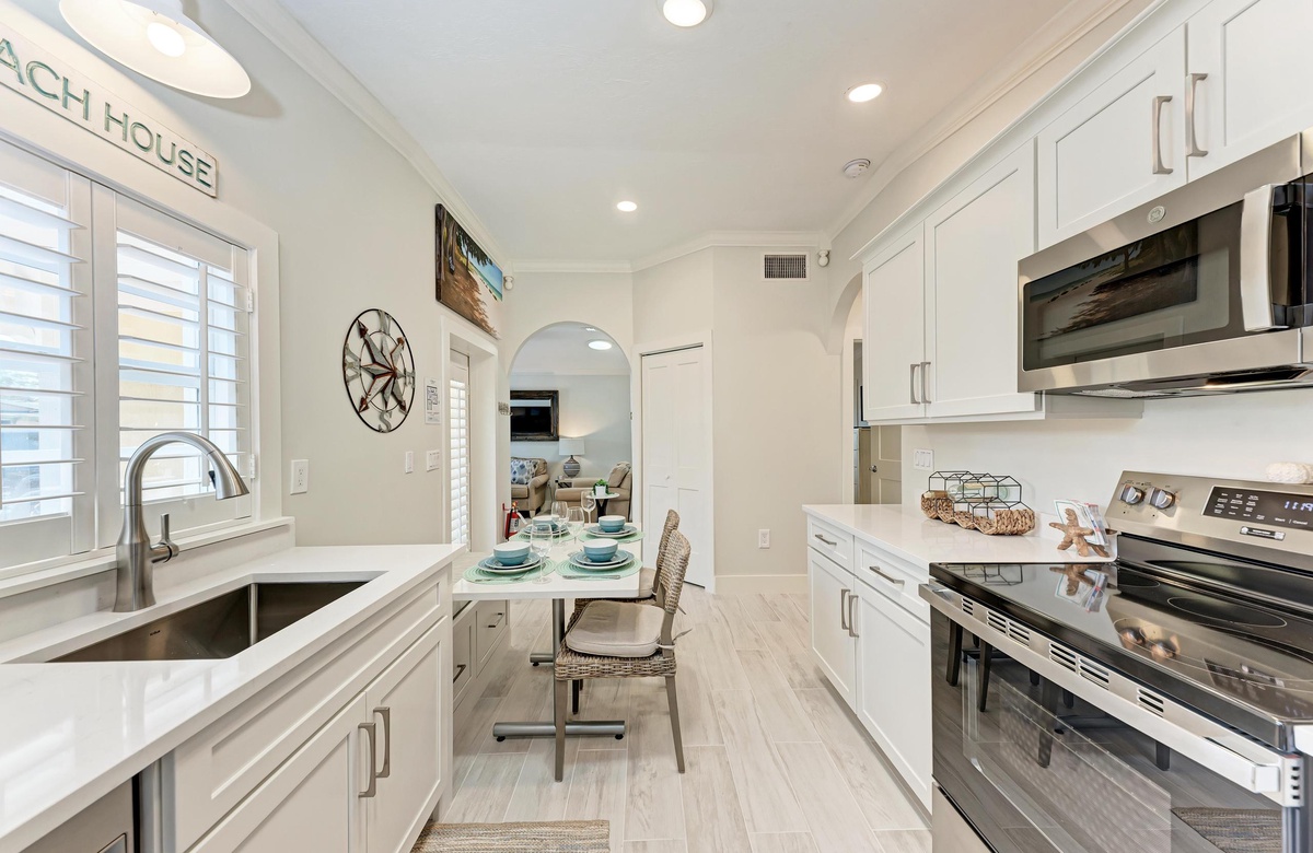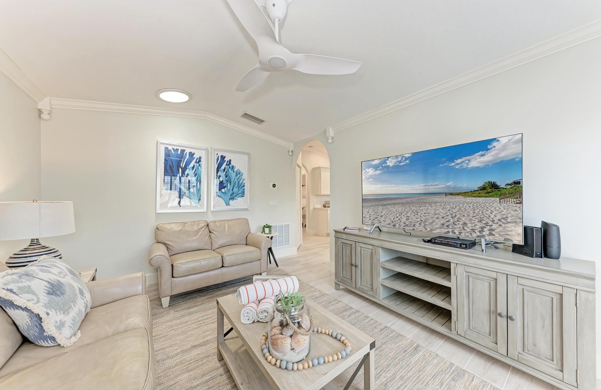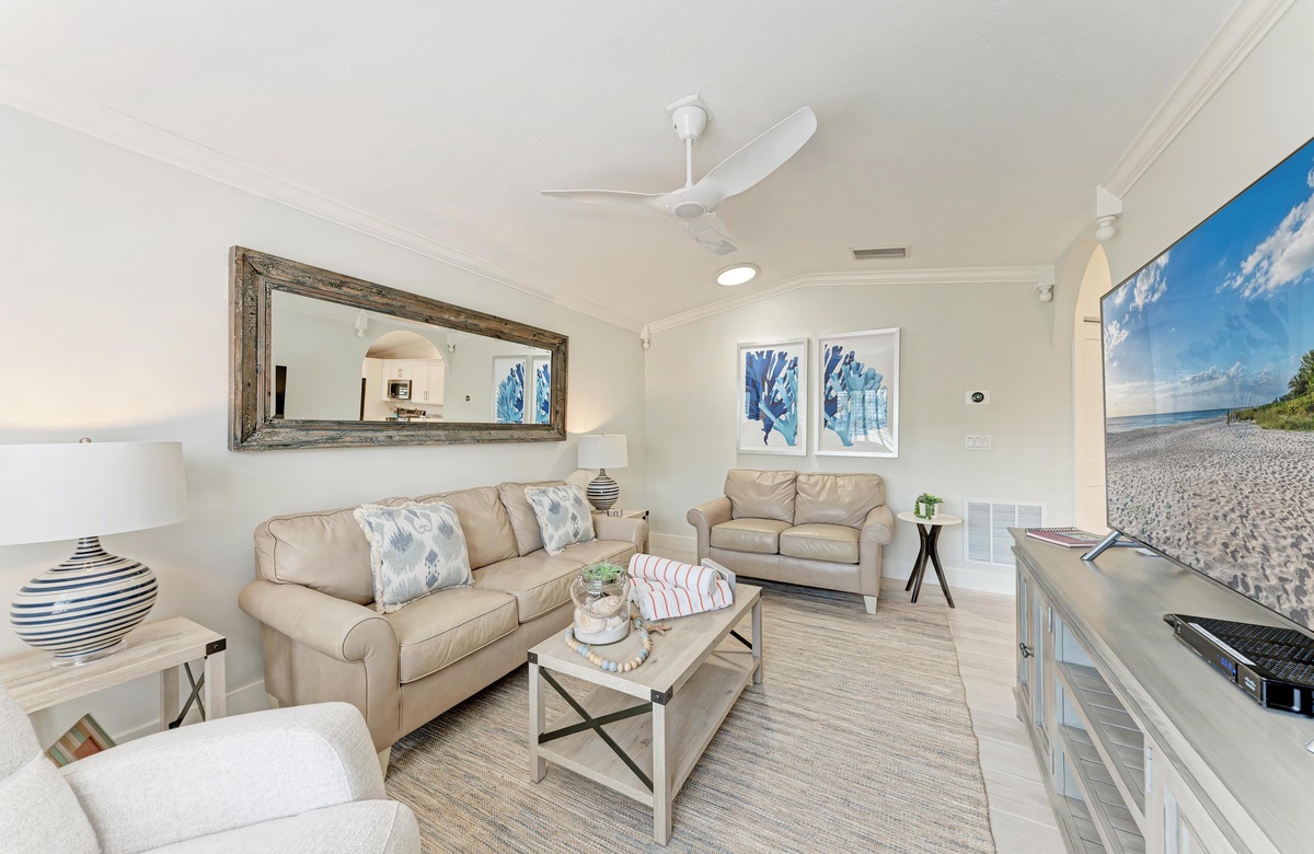 Im Inneren genießen Sie den offenen, luftigen Grundriss und eine helle Ausstattung in Strand-Atmosphäre, der Sie sofort in Urlaubsstimmung versetzt. Die voll ausgestattete Küche macht es leicht, ganze Mahlzeiten zuzubereiten. Nutzen Sie die praktische Frühstücksbar als erweiterte Ablage. Zu den weiteren Annehmlichkeiten gehören Klimaanlage, private Waschmaschine und Trockner sowie 2 Parkplätze und natürlich kostenloses WLAN.