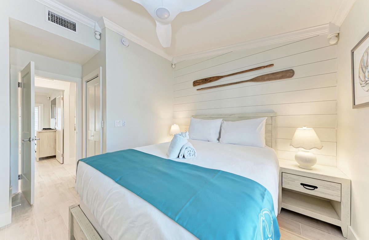 In diesem hübsch gestalteten Apartment finden leicht bis zu 4 Gäste Platz und ist damit ideal für eine kleine Familie oder ein Paar, welches mehr Raum zu schätzen weiß. Das Hauptschlafzimmer verfügt über ein luxuriöses, großes Doppelbett (King), während das zweite Schlafzimmer ein gemütliches Doppelbett (Queen) für Sie bereit hält. Perfekt, um sich von einem langen sonnigen Strandtag voller Erlebnisse zu erholen.