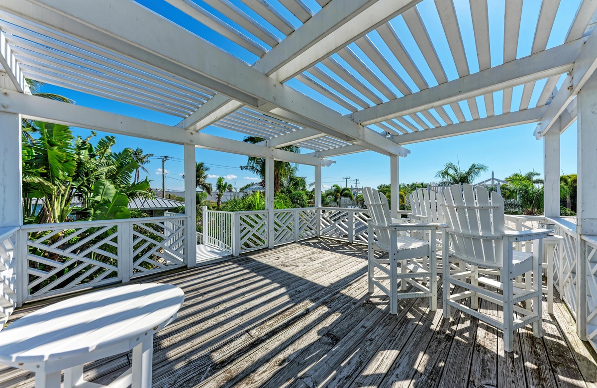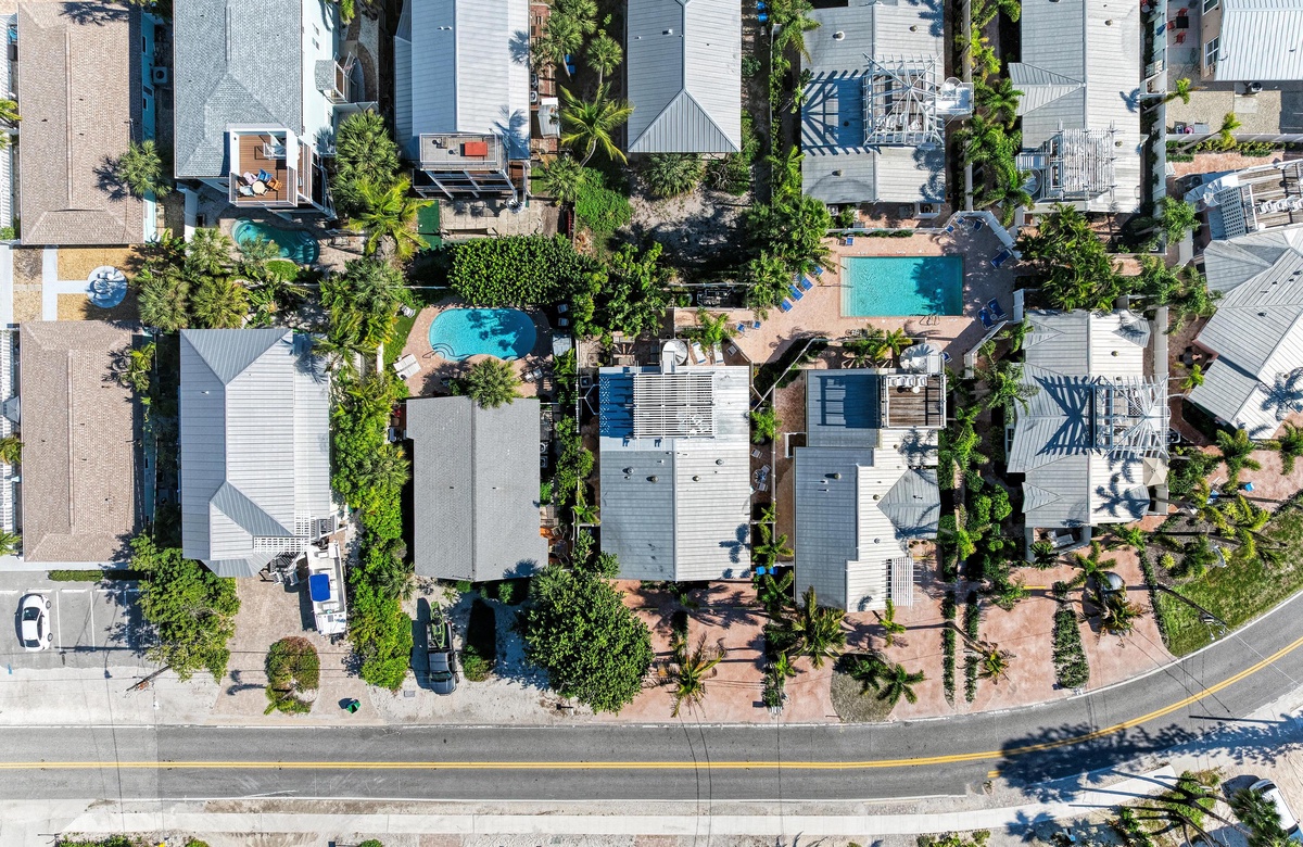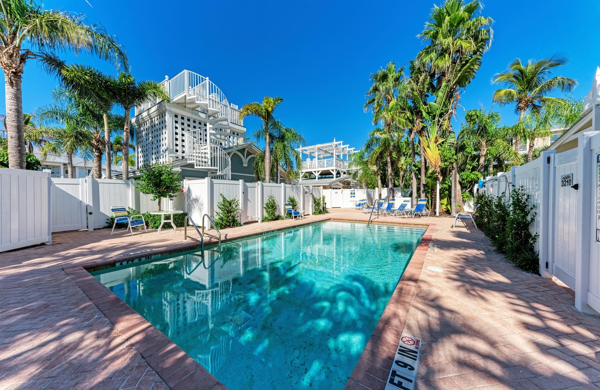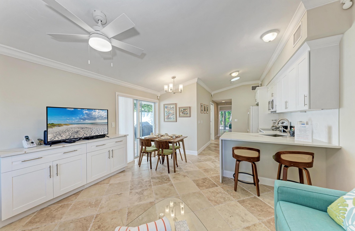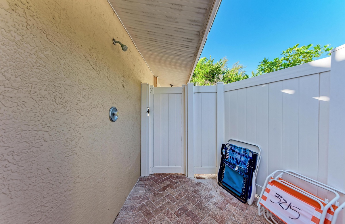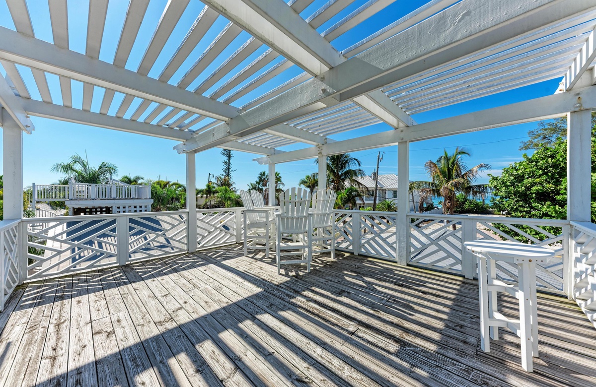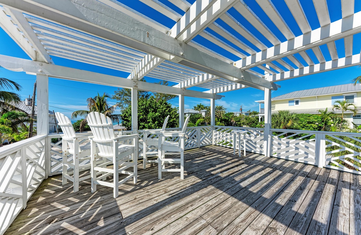 Diese Anna Maria Island Ferienwohnung bietet ein Schlafzimmer mit Kingsize-Bett von dem aus Sie die private Terrasse mit Liegestühlen erreichen. Hier können Sie wunderbar entspannen, während Sie in ein gutes Buch abtauchen, das Sie sich aus dem Bücherregal im Apartment ausgesucht haben. Das Grundstück verfügt über einen beheizten Gemeinschaftspool, der sich gleich hinter Ihrem Tor befindet. Zudem gibt es auf jedem Dach ein kleine Dachterrasse. Erklimmen Sie die Wendeltreppe und verlieren Sie sich dort in dem ausgedehnten Wasserblick und traumhaften Sonnenuntergängen. Jede erdenkliche Ausstattung macht Ihren Aufenthalt zum Vergnügen, von der begehbaren Dusche bis hin zur Waschmaschine & Trockner. Von der komplett ausgestatteten Küche aus, können Sie die Schiebetüren öffnen und Ihr Frühstück oder einen Grillabend draußen auf Ihrer privaten Terrasse einnehmen.