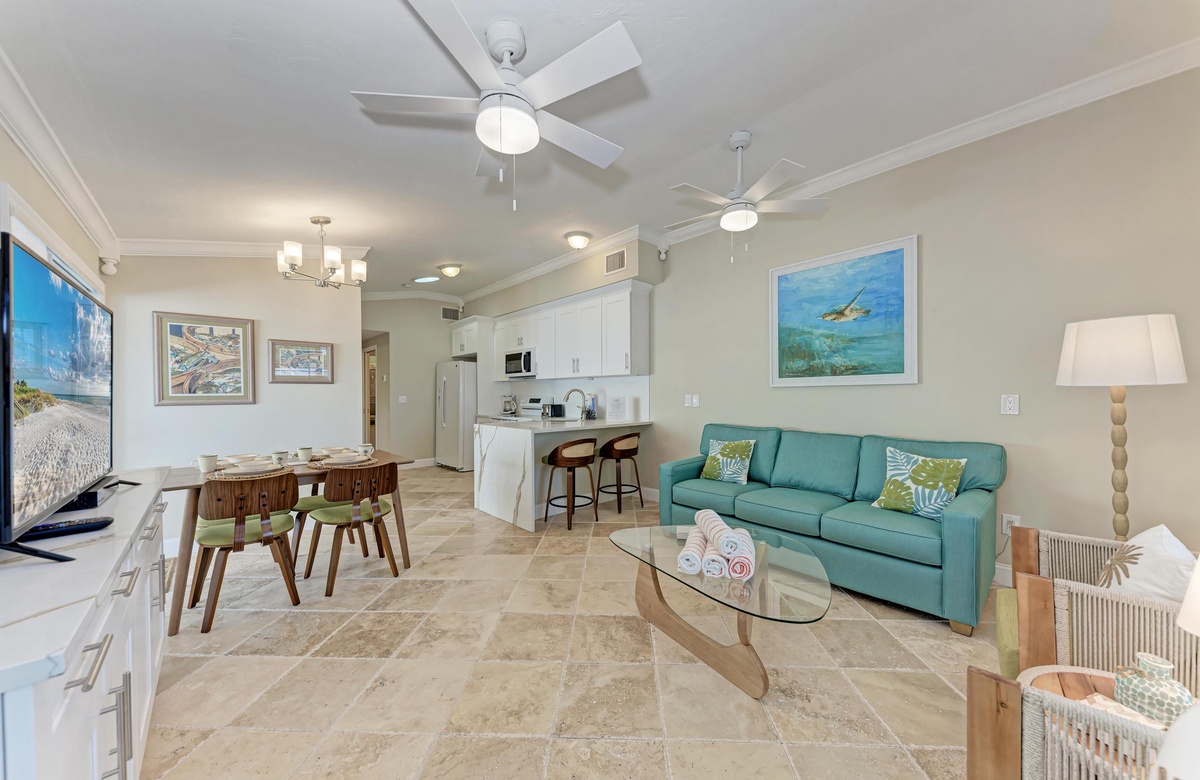 3215 Gulf Drive im Palm Isle Village Resort in Holmes Beach, FL - In einer von Anna Maria Islands besten Apartmentanlagen gelegen, finden Sie diese hinreißende Wohnung mit 1 Schlafzimmer, 1 Bad plus Gäste-WC. Schnappen Sie sich Ihr Handtuch, gehen Sie nur hinaus aus der Türe und Sie sind wenige Schritte vom glitzernden Wasser des Golf von Mexikos entfernt. Jede Wohnung wurde professionell dekoriert und verfügt über Fenster, die den spektakulären Blick auf üppige tropische Vegetation freigeben.