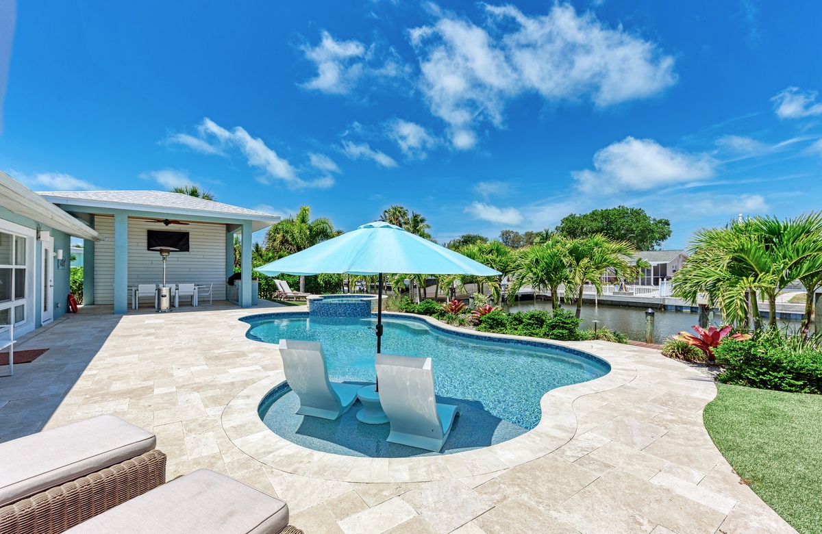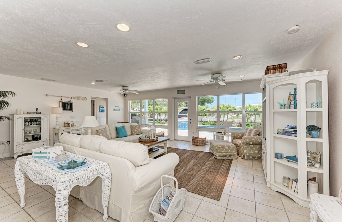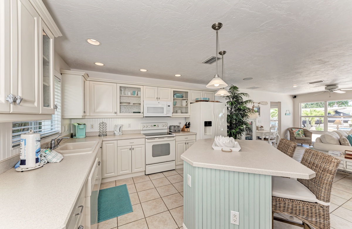 Wenn Sie das Haus mit seinem offenen Grundriss betreten, schweift Ihr Blick hinaus über den privaten beheizten Pool, dem Kanal, Anleger und sogar Blick auf das offene Wasser. Diese Ferienvilla bietet 3 Schlafzimmer und 3 Bäder sowie Smart-TVs in jedem Schlafzimmer, im Wohnbereich und sogar auf der Terrasse im Außenbereich. Die Küche ist renoviert und hat modernisierte Geräte, damit der Koch in der Familie gerne etwas Leckeres zubereitet.