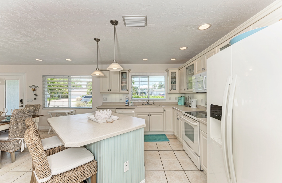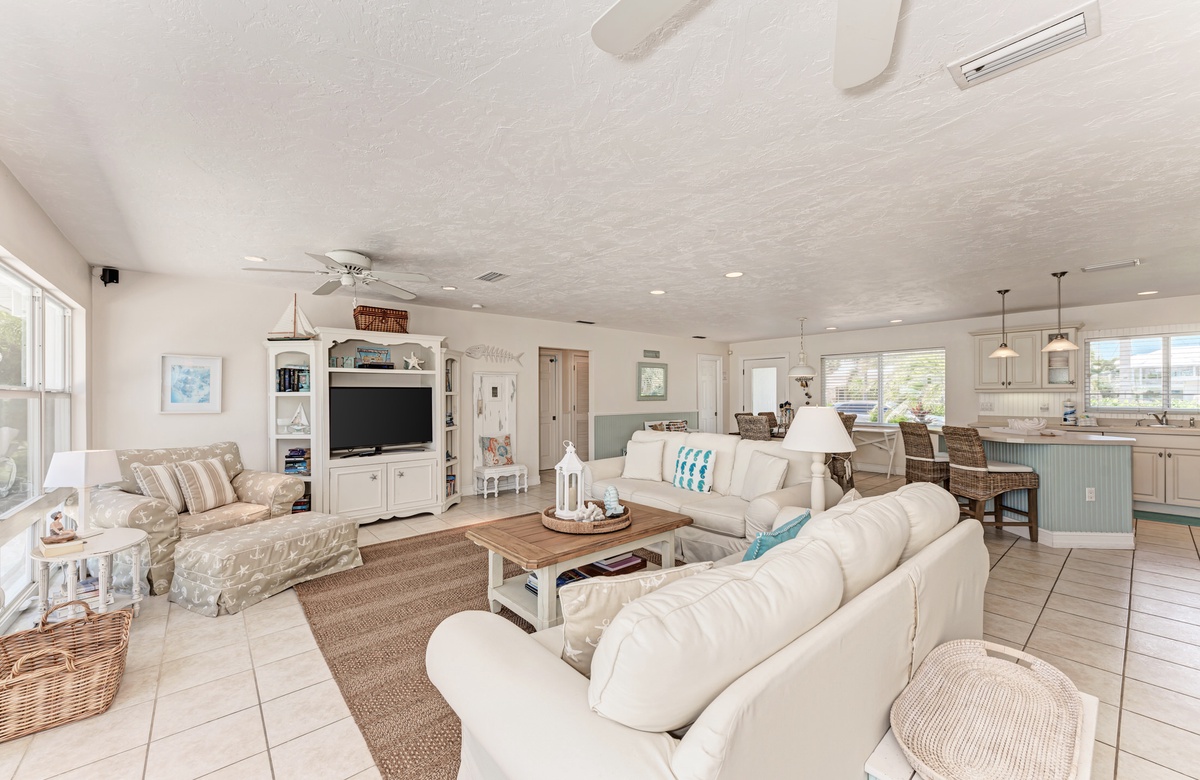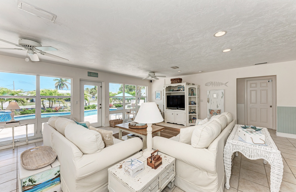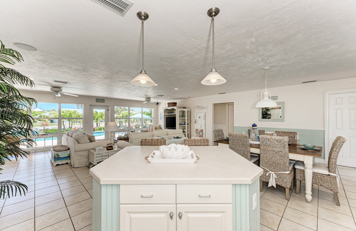 Wenn Sie das Haus mit seinem offenen Grundriss betreten, schweift Ihr Blick hinaus über den privaten beheizten Pool, dem Kanal, Anleger und sogar Blick auf das offene Wasser. Diese Ferienvilla bietet 3 Schlafzimmer und 3 Bäder sowie Smart-TVs in jedem Schlafzimmer, im Wohnbereich und sogar auf der Terrasse im Außenbereich. Die Küche ist renoviert und hat modernisierte Geräte, damit der Koch in der Familie gerne etwas Leckeres zubereitet.