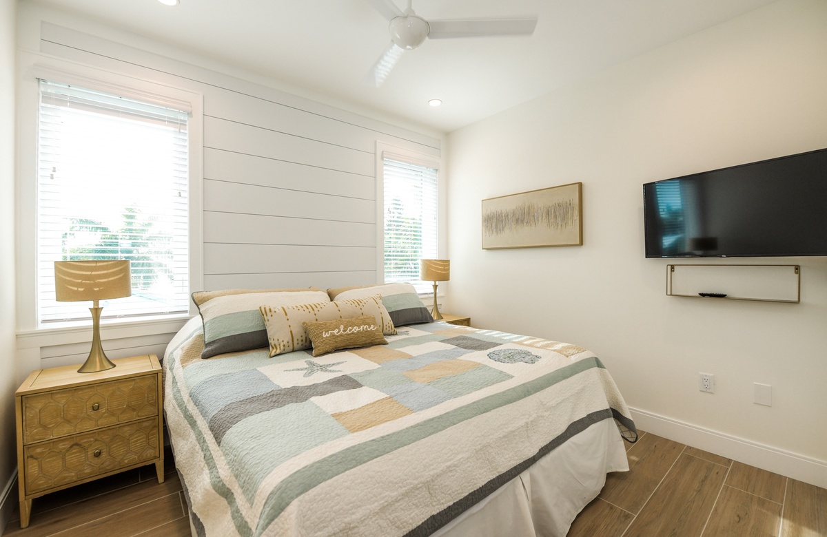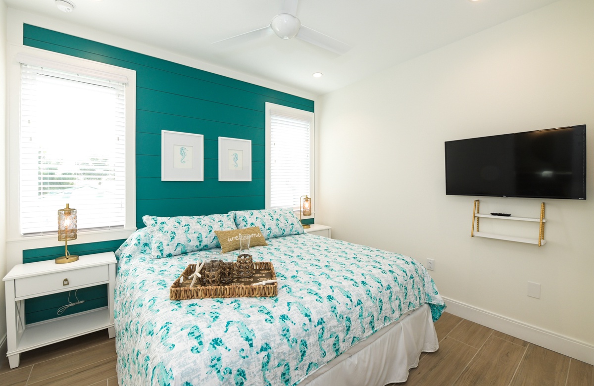 Falls Sie sich von diesem Traumhaus trennen können, erkunden Sie die Insel und entdecken den Golf von Mexiko, der sich nur 5 Minuten entfernt befindet und mit seinem erlesenen Sand und wunderschönem Wasser lockt. Nur eine kurze Autofahrt oder mit dem Insel-Shuttle Richtung Süden finden Sie die historische Bridge Street. Hier ist insbesondere am Abend etwas los mit live und lokaler Musik und einigen tollen Restaurants an der Bucht. Schicke einzigartige Läden gibt es auch an der Pine Avenue im Norden der Insel, wo sie ein paar coole Souvenirs von lokalen Shops und Boutiquen für Daheimgebliebene finden werden. Ganz im Norden der Insel liegt der bekannte Bean Point, der das Ende der Insel markiert und definitiv einen Besuch wert ist.