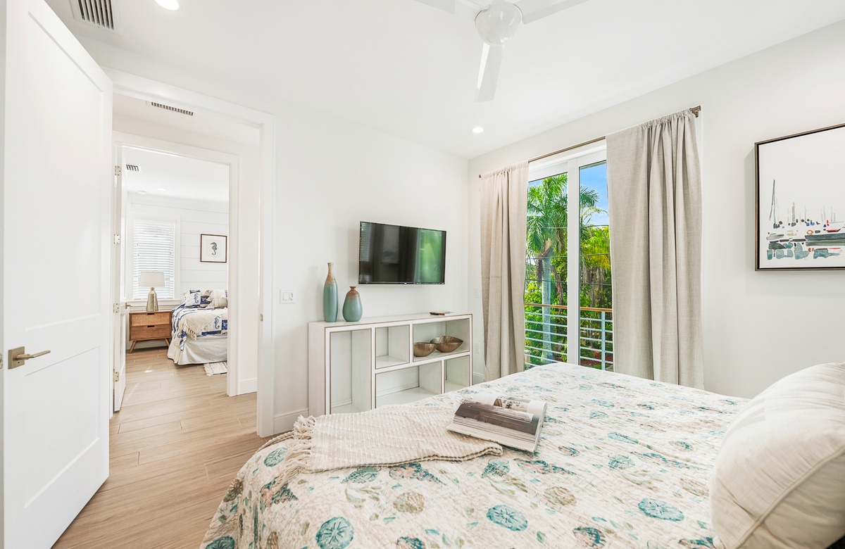 • Schlafzimmer 2: Kingsize-Bett, en-suite Bad mit begehbarer Dusche, Balkonzugang
