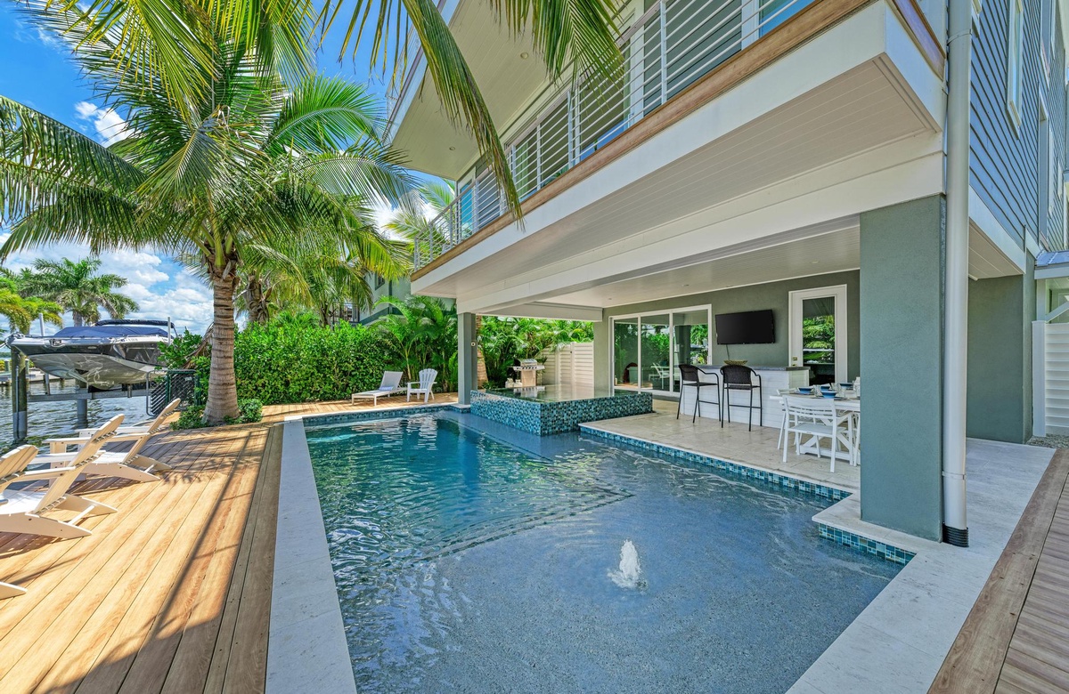 Pirate’s Cove ist doppelt einzigartig: in Design und Lage! Beides macht dieses Haus zur absolut perfekten Anna Maria Island Unterkunft. Die Villa liegt direkt am Kanal und verfügt über einen traumhaften Pool und Sportgelegenheiten in fantastischer mehrstöckiger Bauweise, um Ihnen und Ihrer Familie ausreichend Platz und Abstand zu ermöglichen. Mit 7 Schlafzimmern und 7 Bädern sowie einem zusätzlichen Gäste-WC auf der Wohnetage, findet jeder sein eigenes Stück vom Paradies.