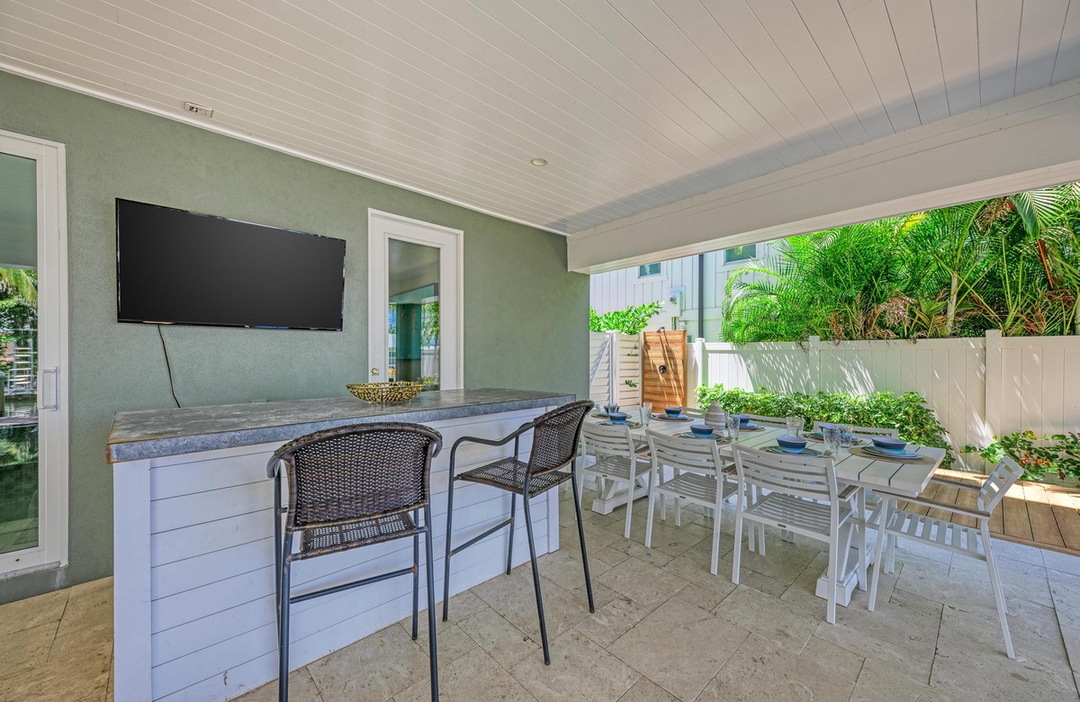 Was wäre eine Ferienvilla ohne coolen Extras? Pirate's Cove hat diese in Hülle und Fülle. Schwimmen Sie im privaten Pool oder loungen Sie in der Inselsonne. Grillen Sie ein paar amerikanische Spezialitäten oder vielleicht sogar einen frisch gefangenen Fisch! Egal wie Sie Ihren Urlaub auf Anna Maria Island verbringen wollen, Pirate's Cove gibt Ihnen einen ruhigen und entspannten Rückzugsort in Bradenton Beach auf Anna Maria Island.