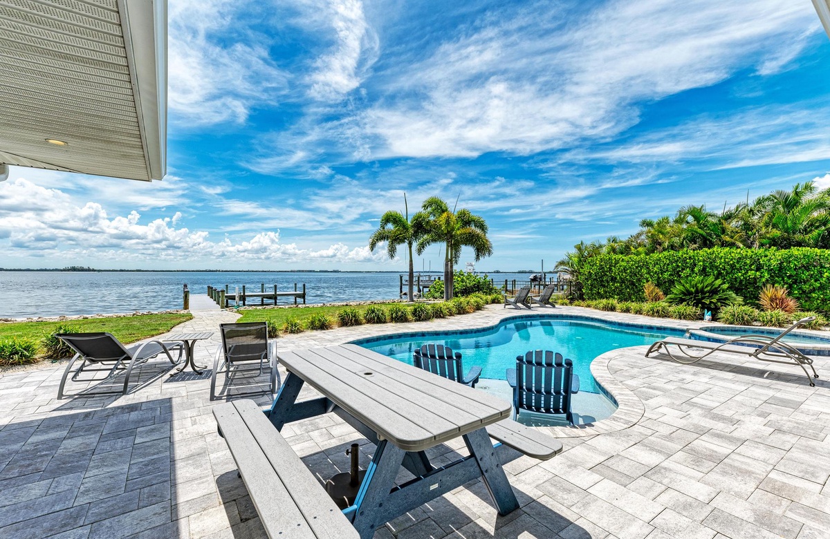 Beginnen Sie jeden Tag mit einem Blick in den wunderschön gestalteten Garten. Ob Sie sich im privaten, beheizten Pool abkühlen oder im Spa entspannen, der Blick über die Bucht macht jeden Moment zu etwas Besonderem. Die private Bootsanlegestelle lädt dazu ein, sich ein Boot zu mieten und auf das glitzernde Wasser hinauszufahren oder einfach den Ausblick vom Ufer aus zu genießen.