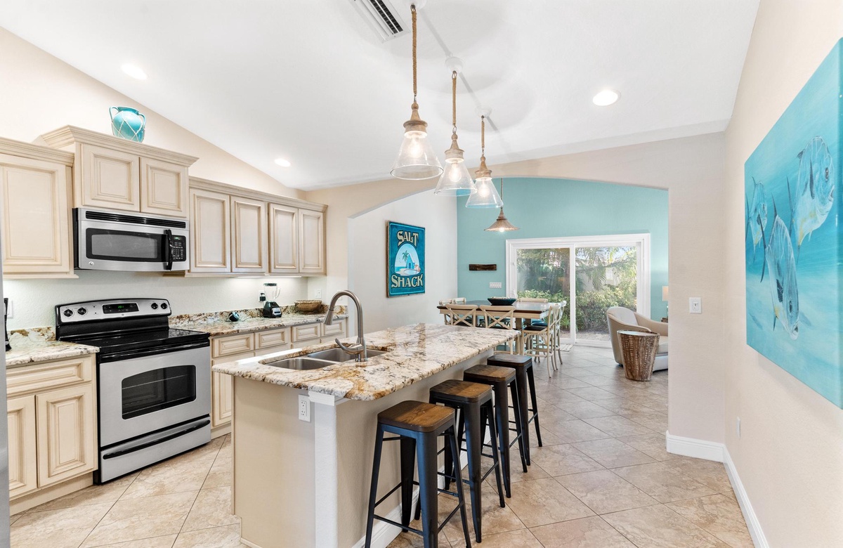 Nur 150 Schritte bis zum Strand vom "Salt Shack" auf 3705 Gulf Dr., Unit A in dem Städtchen Holmes Beach, FL am schönen Anna Maria Island. Diese gehobene, sehr gut ausgestattete Doppelhaus-Villa mit 3 Schlafzimmern und 2 Bädern plus privatem beheiztem Pool ist perfekt für Ihren nächsten Urlaub.
