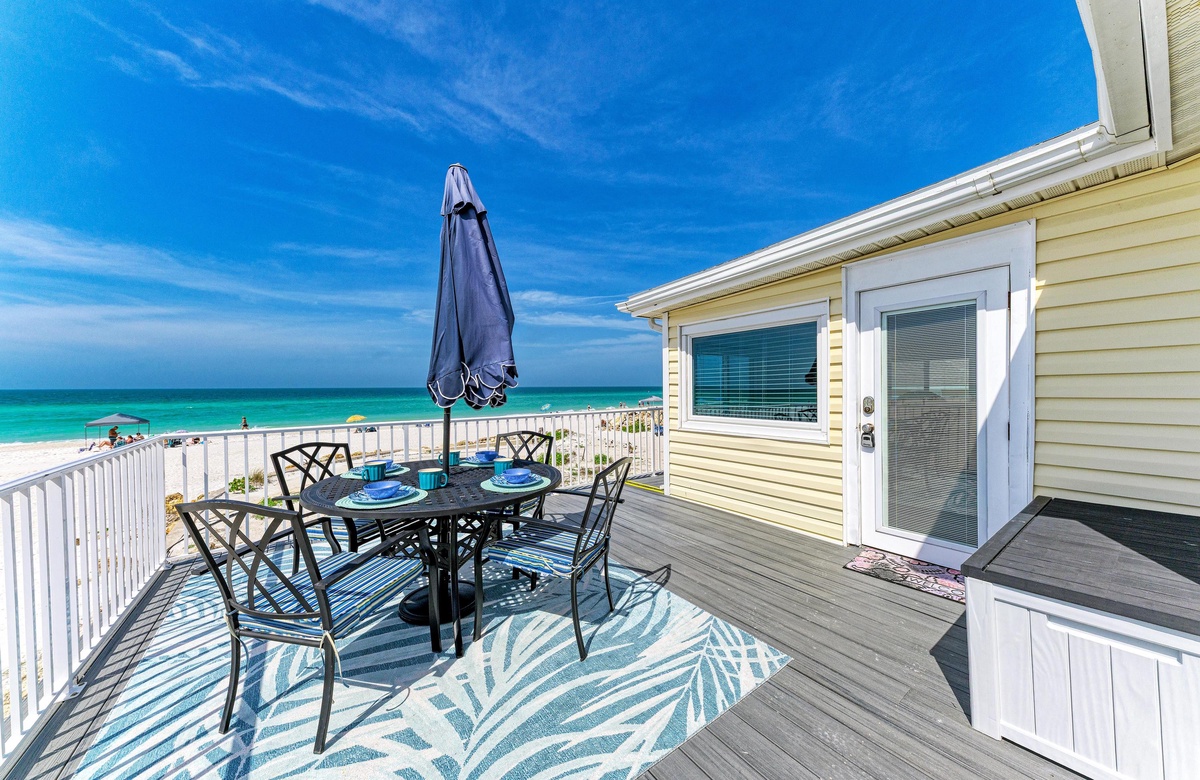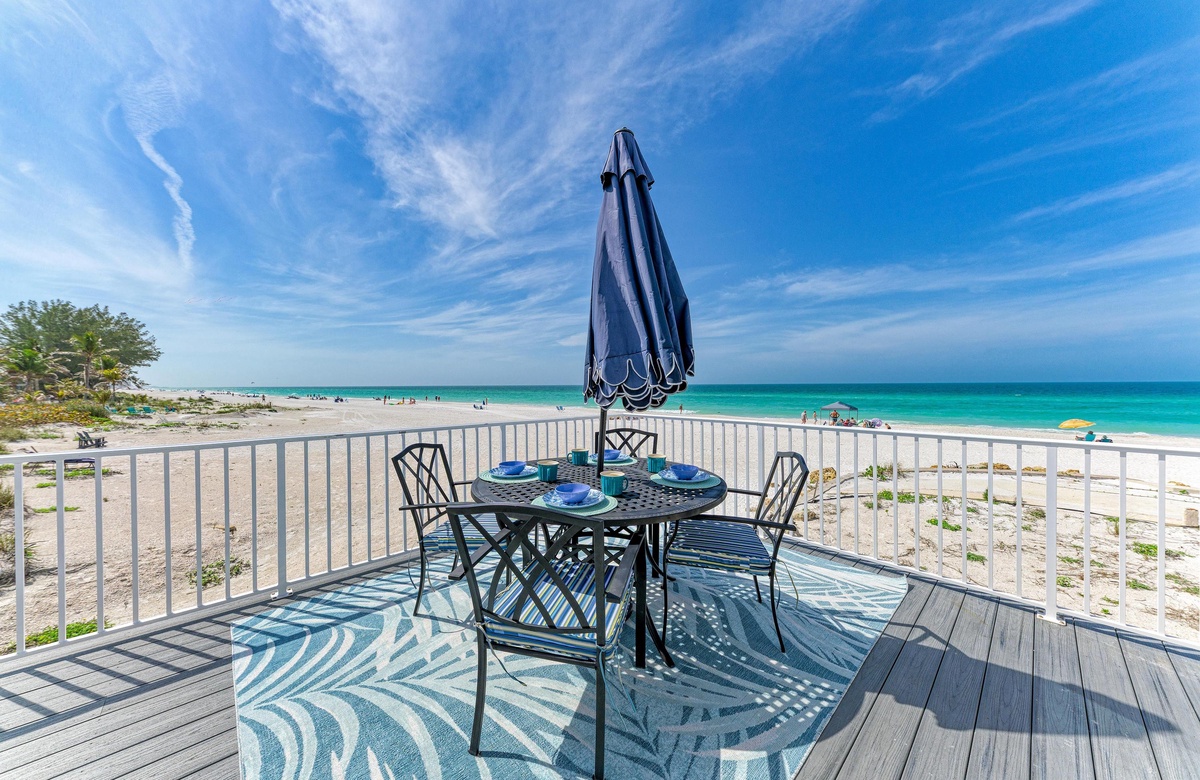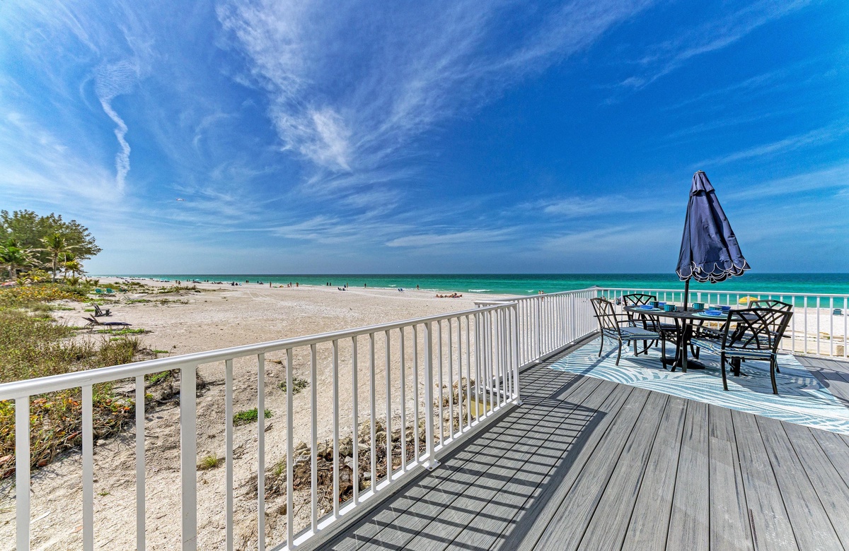 Erleben Sie die Schönheit von Anna Maria Island in diesem erhöht gelegenen Refugium direkt am Strand, das einen atemberaubenden Panoramablick und unübertroffenen Zugang zu den berühmten, zuckerweißen Sandstränden der Insel bietet. Dieses lichtdurchflutete Ferienhaus ist für bis zu sechs Gäste ausgelegt und bietet die perfekte Mischung aus Komfort und Bequemlichkeit mit einer voll ausgestatteten Küche, einem einladenden Balkon und dem Strand nur wenige Schritte entfernt.