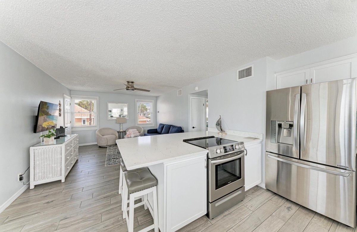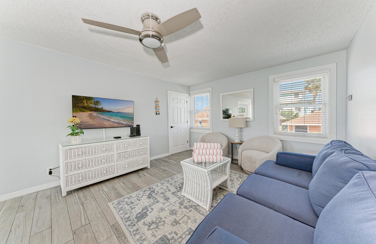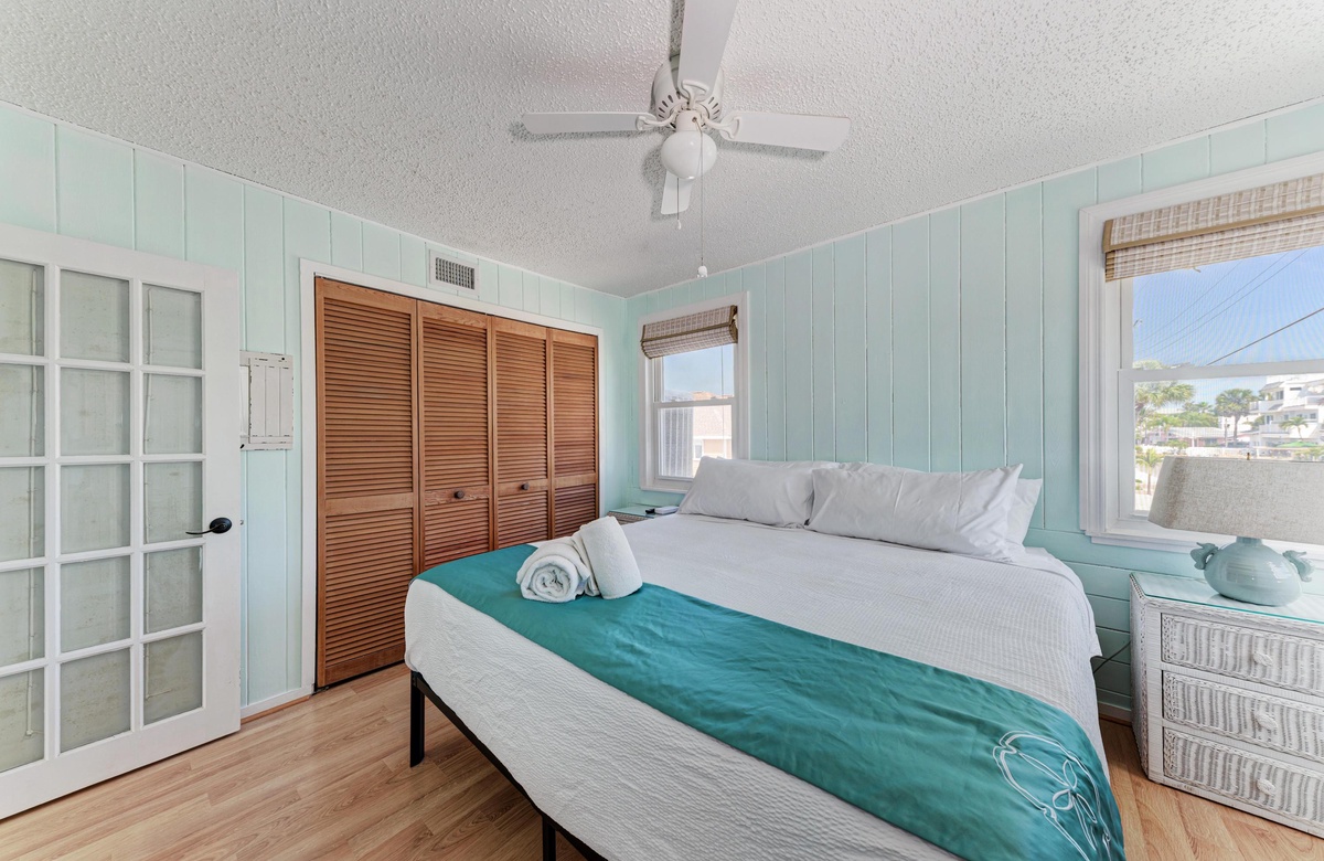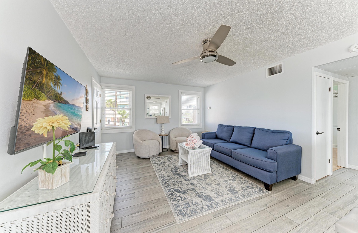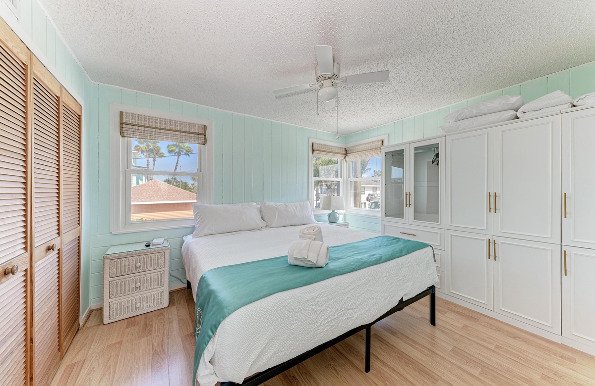 Der Innenbereich besticht durch eine farbenfrohe Einrichtung im Küstenstil und einladende Wohnbereiche, die sich perfekt für Familien oder kleine Gruppen eignen. Bleiben Sie dank kostenlosem WLAN in Verbindung, genießen Sie Filmabende mit zwei Flachbildfernsehern und einem DVD-Player oder bereiten Sie Ihre Lieblingsgerichte in der super ausgestatteten Küche zu. Draußen können Sie den Gasgrill anwerfen und ein gemütliches Barbecue auf der möblierten Terrasse genießen, während die warme Brise vom Golf über Sie hinweg streicht. Mit unglaublicher Aussicht, direktem Strandzugang und dem Besten, was Anna Maria Island zu bieten hat, direkt vor der Haustür, heißt Sie dieses Refugium an der Küste herzlich willkommen.
