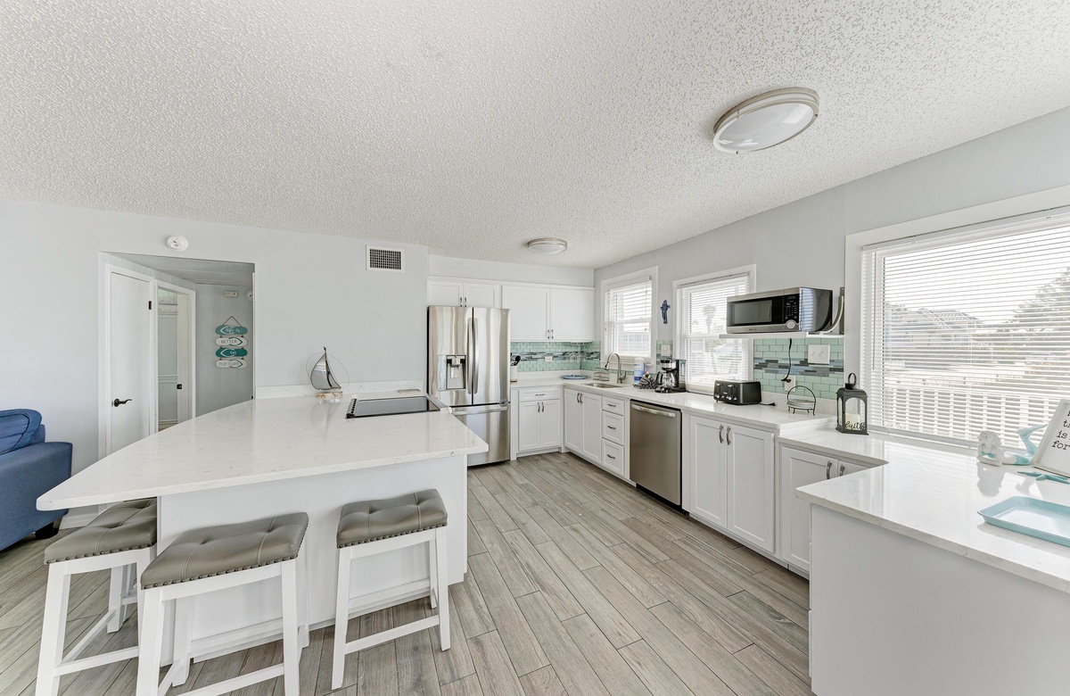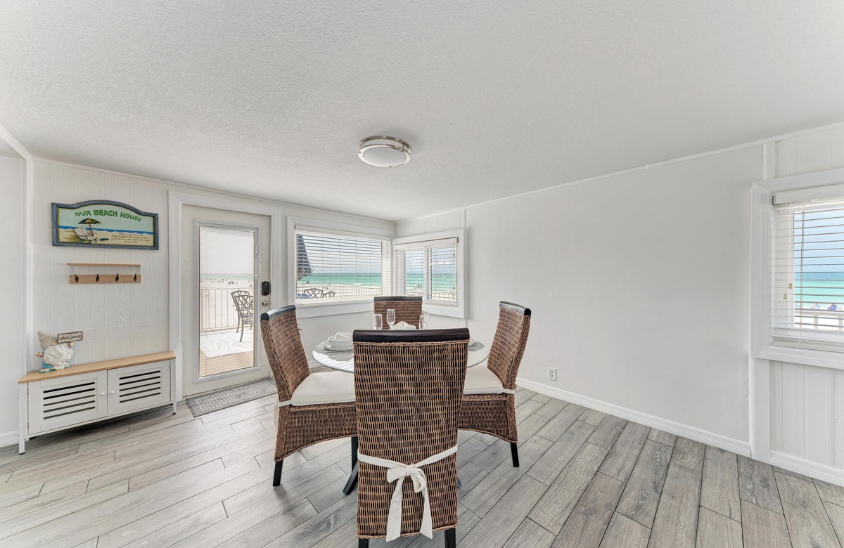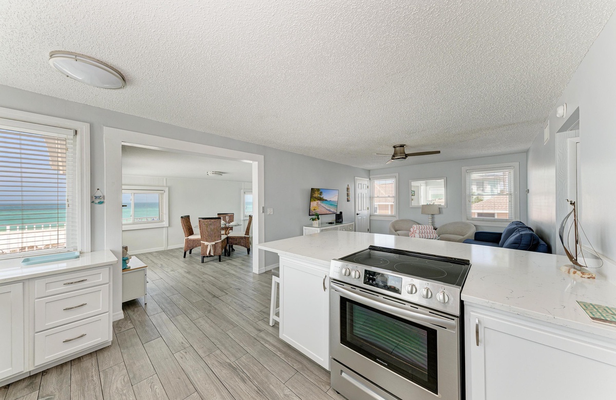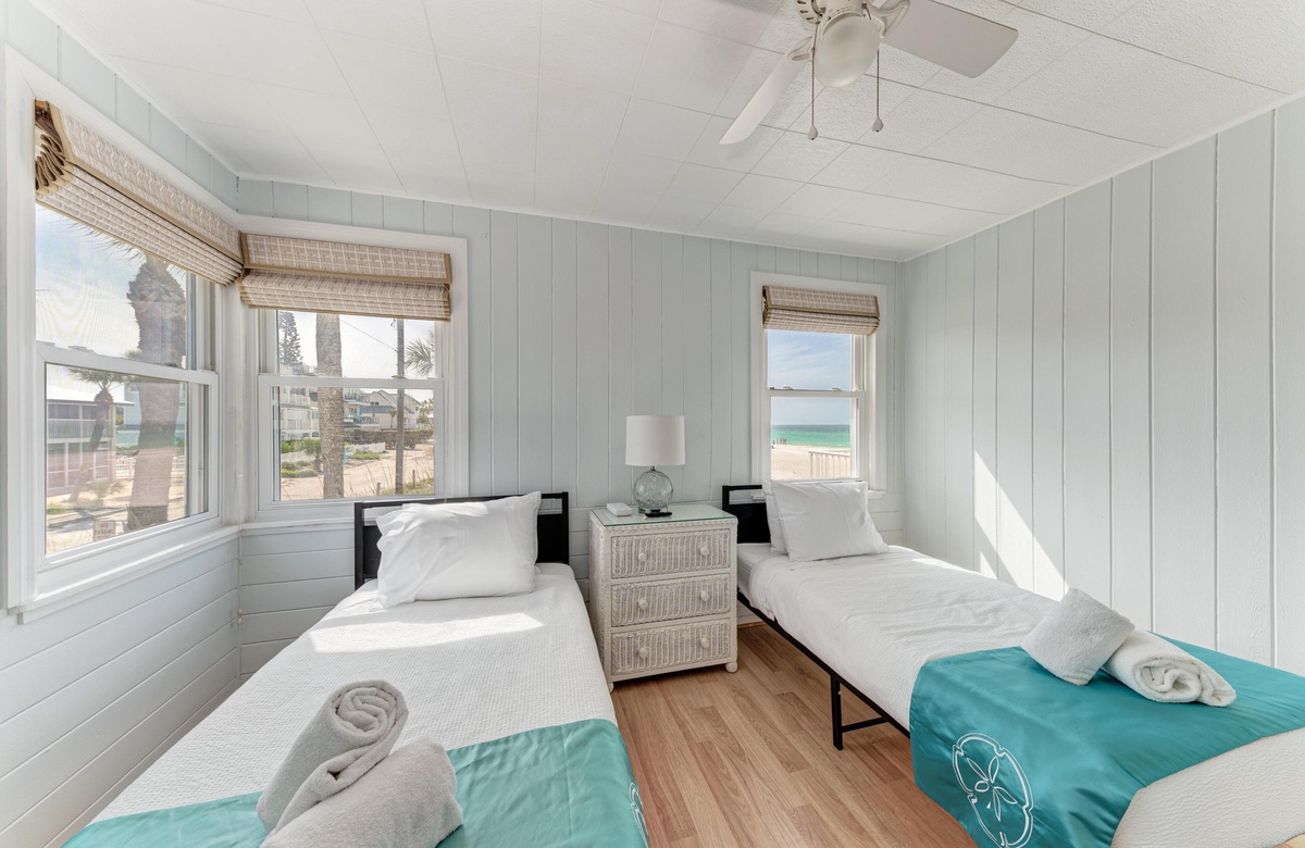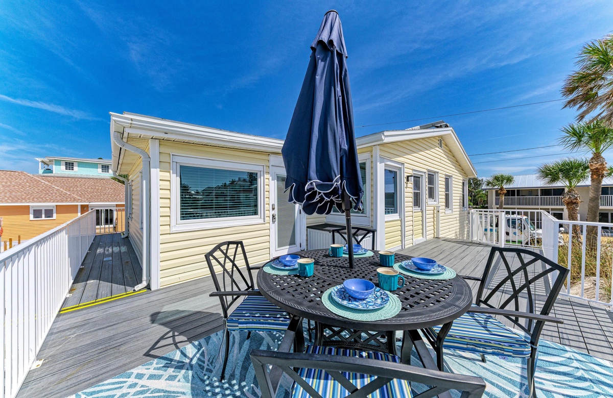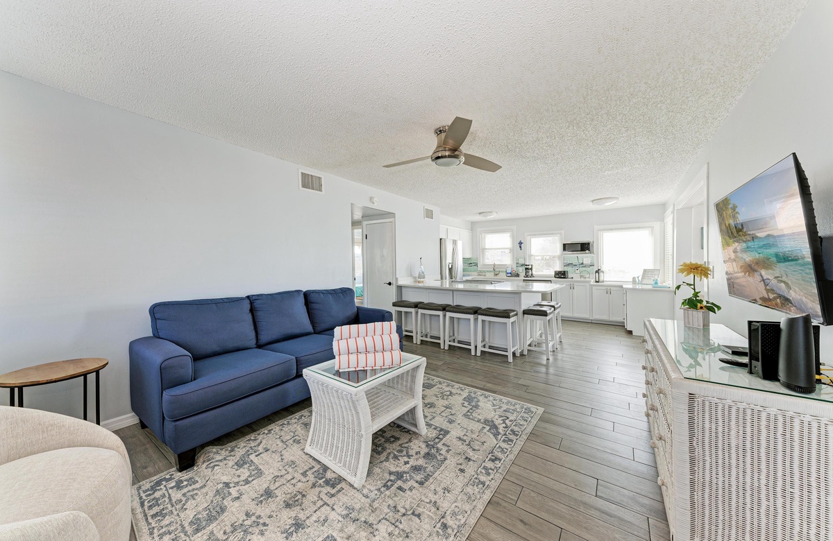 Der Innenbereich besticht durch eine farbenfrohe Einrichtung im Küstenstil und einladende Wohnbereiche, die sich perfekt für Familien oder kleine Gruppen eignen. Bleiben Sie dank kostenlosem WLAN in Verbindung, genießen Sie Filmabende mit zwei Flachbildfernsehern und einem DVD-Player oder bereiten Sie Ihre Lieblingsgerichte in der super ausgestatteten Küche zu. Draußen können Sie den Gasgrill anwerfen und ein gemütliches Barbecue auf der möblierten Terrasse genießen, während die warme Brise vom Golf über Sie hinweg streicht. Mit unglaublicher Aussicht, direktem Strandzugang und dem Besten, was Anna Maria Island zu bieten hat, direkt vor der Haustür, heißt Sie dieses Refugium an der Küste herzlich willkommen.