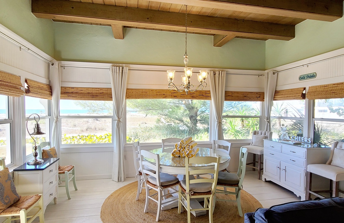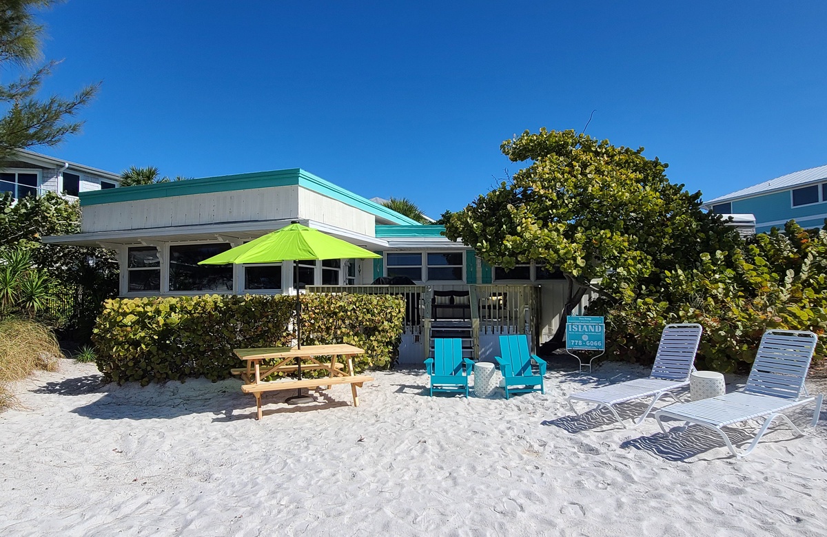 Dieses vollkommen renovierte Vintage Strandhäuschen im Cottage-Stil liegt direkt am wunderschönen weißen Sandstrand auf Anna Maria Island am Bean Point (https://www.islandreal.com/bean-point-vacation-rentals). Wie Sie sehen können, richtet sich das Haus gen Westen und damit zu einem der best bewerteten Strände der Welt gemäß verschiedenen Reisemagazinen. Dieses erdgeschössige Cottage (keine langen Treppen!) hat aus jedem Zimmer wunderbare Blicke auf die Sonnenuntergänge!