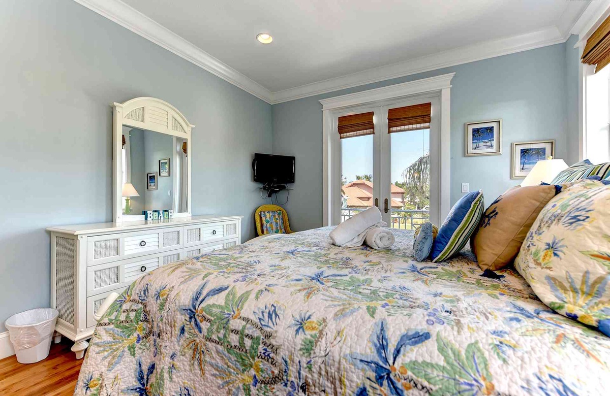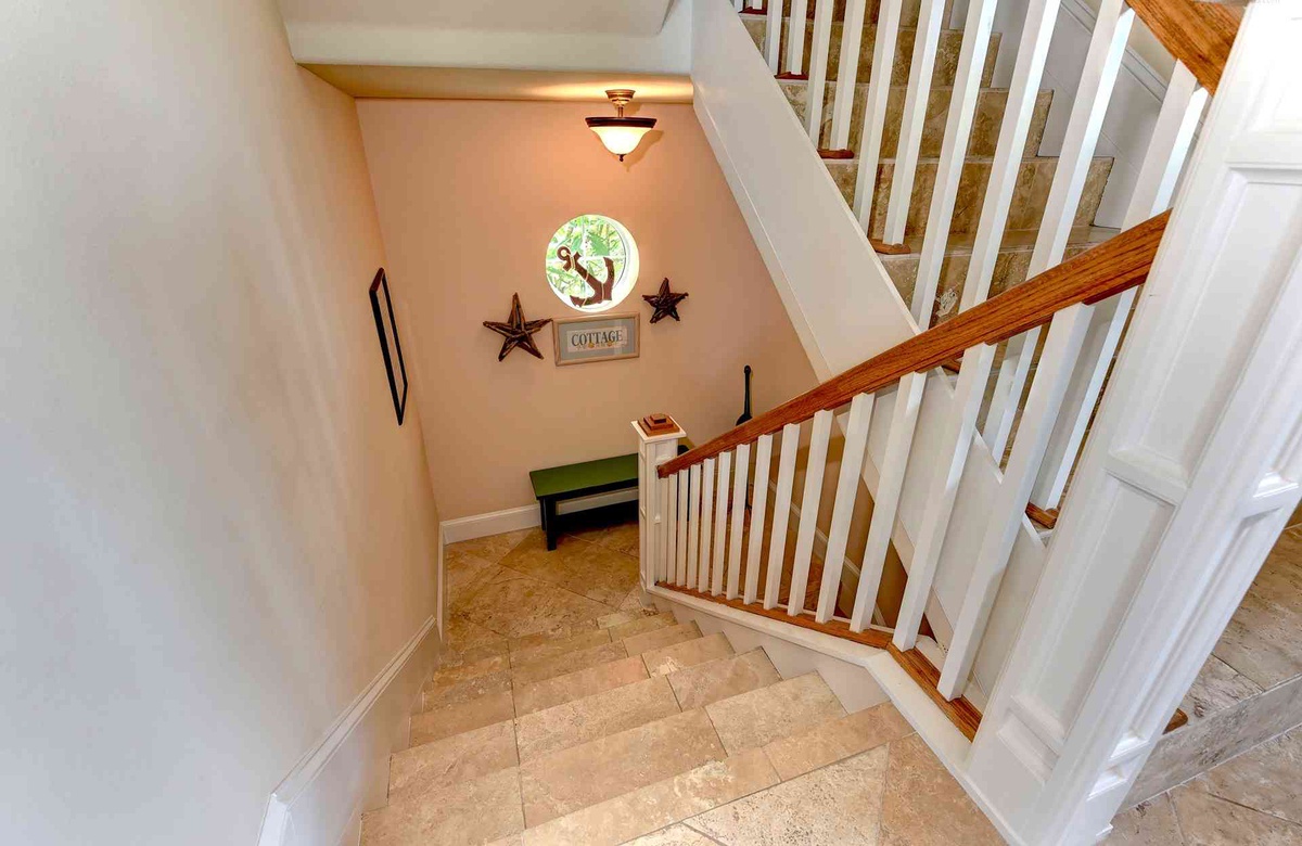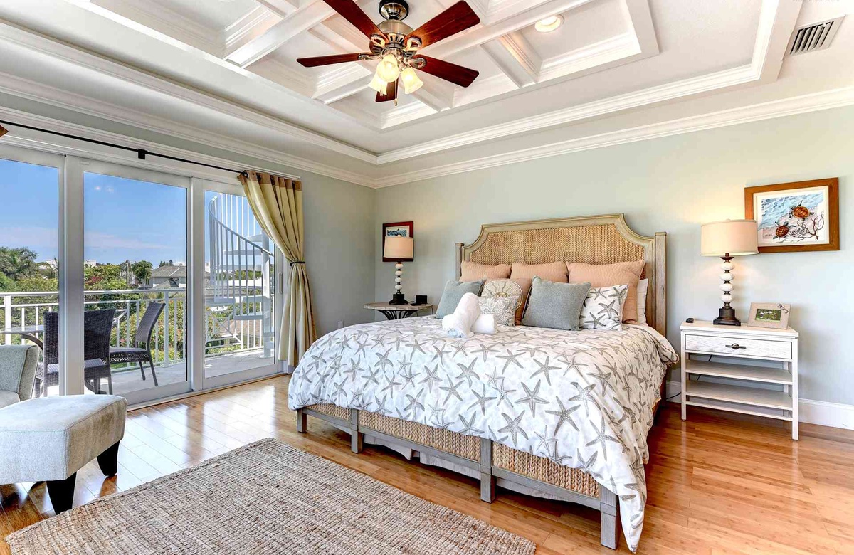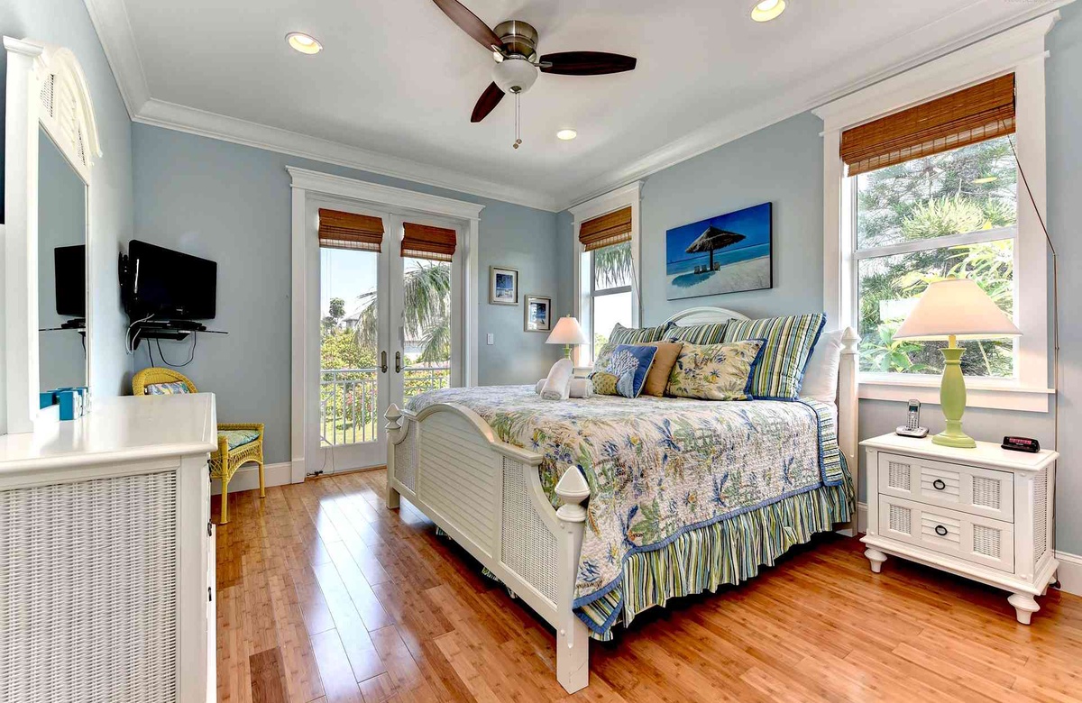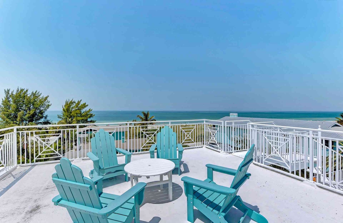 Dieses Anna Maria Island Ferienhaus bietet mehrere tolle, offene Balkone und eine Wendeltreppe, die Sie vom Hauptschlafzimmer und dem Balkon hinaus auf das Dach führt. Auf der Dachterrasse werden Sie es lieben die Sonnenuntergänge und Blicke auf den Golf und die Puderzucker weiße Küstenlinie des Strandes zu bewundern.